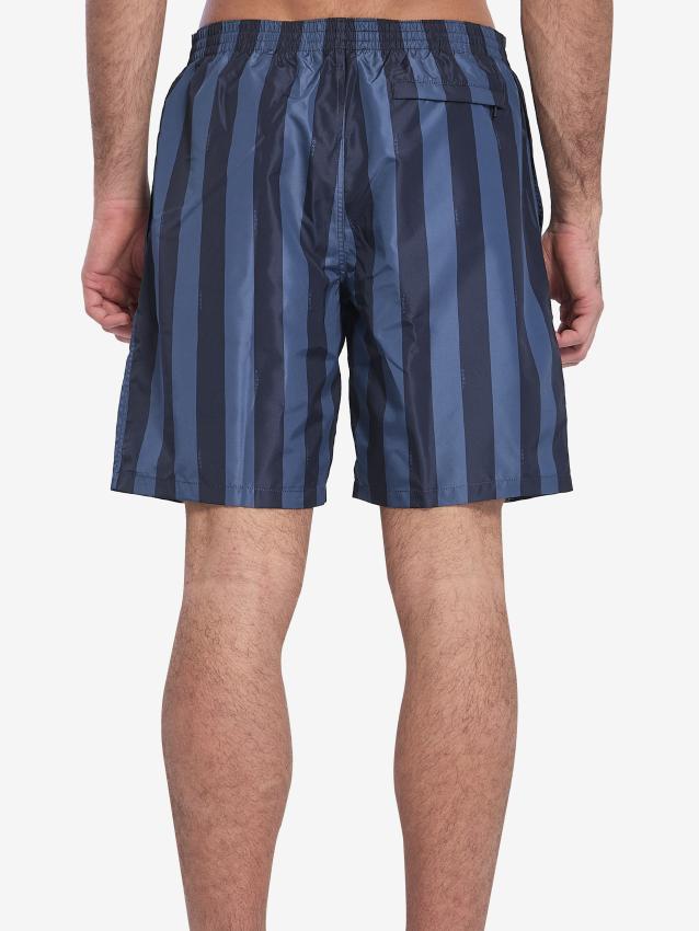Swim shorts in nylon with Pequin stripes in shades of blue. They feature an elasticated waistband with a drawstring, two side pockets, an embroidered