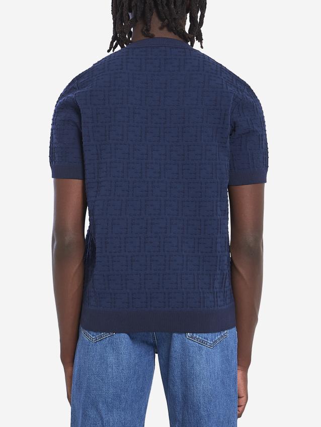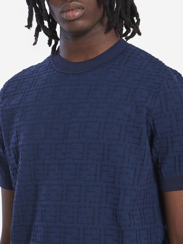 Selleria short-sleeve crew-neck pullover in dark blue cotton with tone-on-tone FF Selleria stitching all over. Ribbed edges.The model is 188cm tall