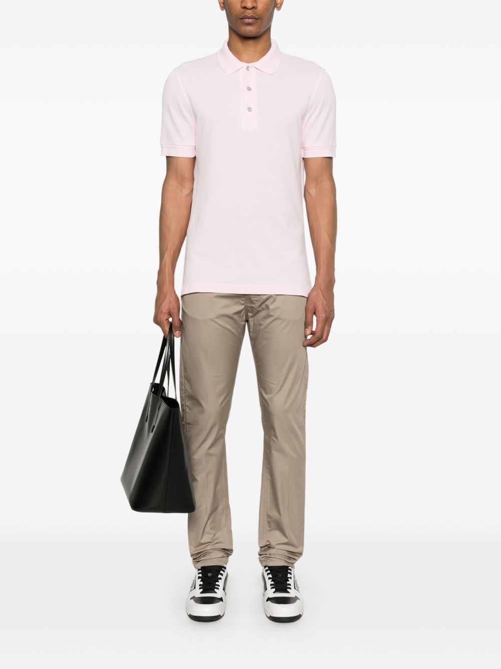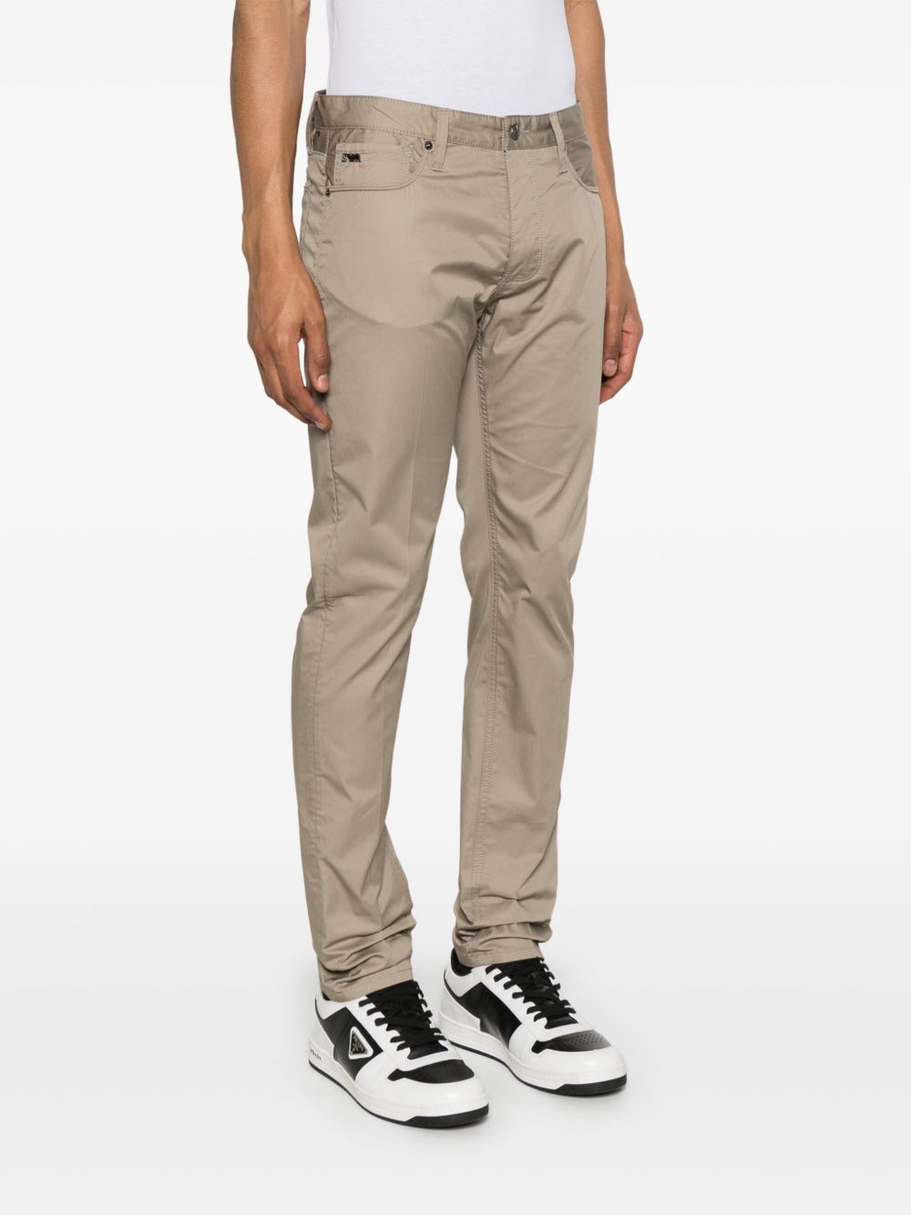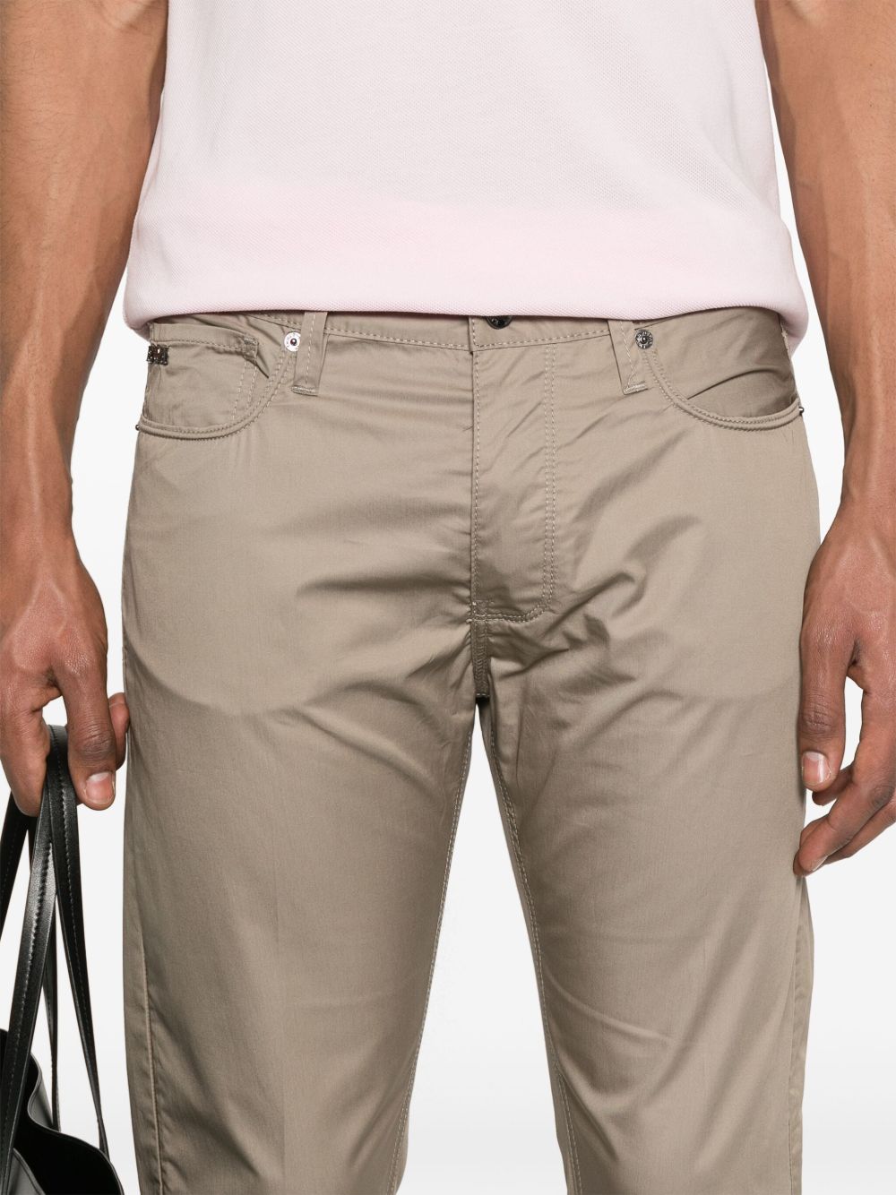 taupe concealed fly and button fastening classic five pockets logo patch to the rear