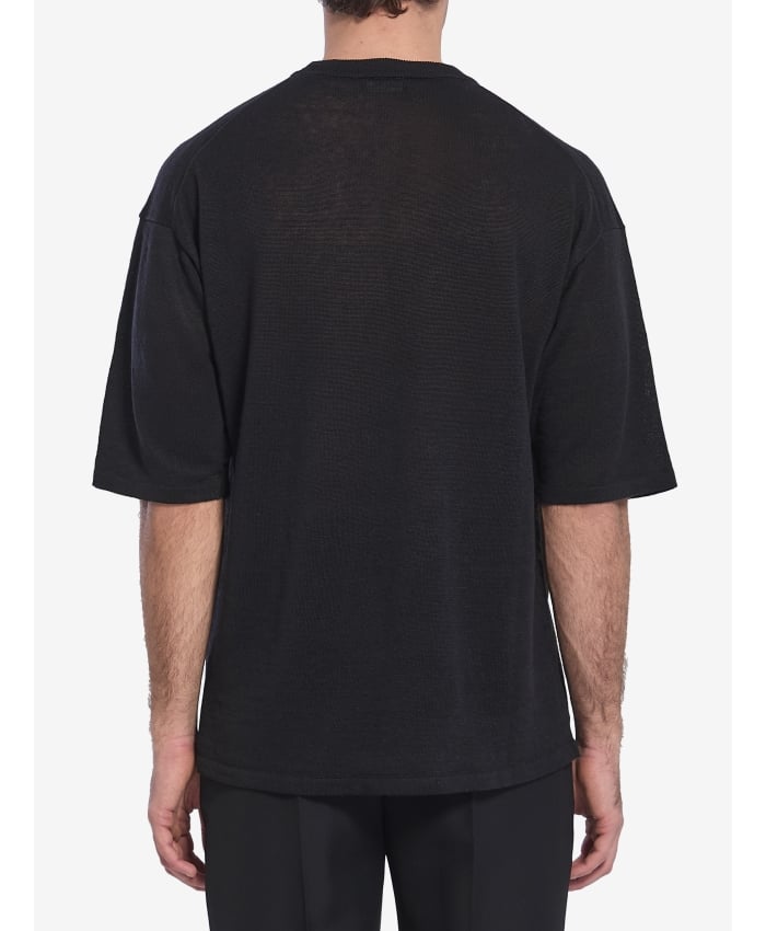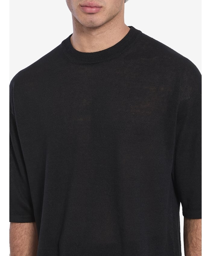 Short-sleeved crew-neck t-shirt in black linen knit. It features a ribbed crew neck.The model is 189 cm tall and wears a size 50 IT.