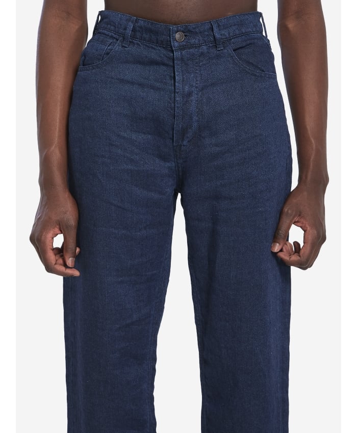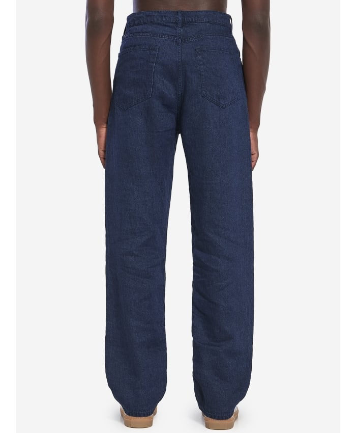 Hartley jeans in soft dark indigo linen denim. They feature a buttons closure, belt loops, five pockets, and straight legs.The model is 188cm tall