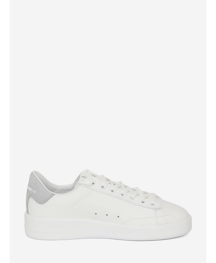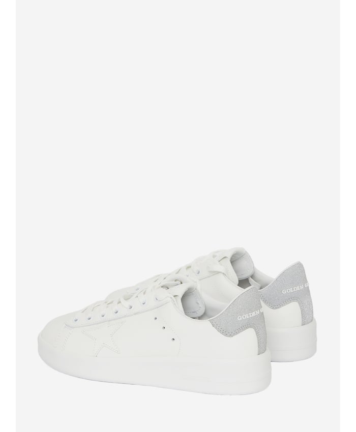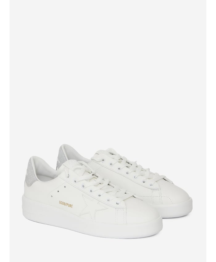 Pure New sneakers in white leather with silver-tone glitter heel. They feature round toe, lace-up closure, side leather star, embossed GGDB logo on