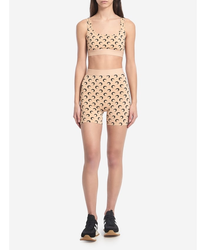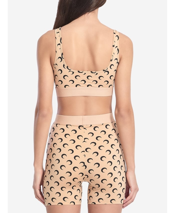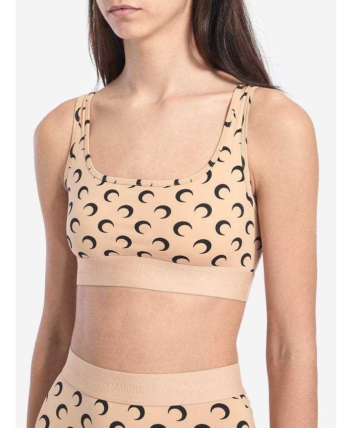 Sports bra in nude and black jersey with all-over Moon print. Elasticated band with Marine Serre logo. Fitted fit. Protective pouch included.The