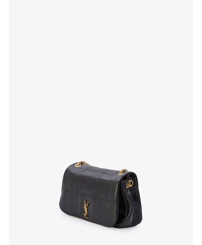 Jamie 4.3 small bag in soft black quilted lambskin with bronze-colored metal YSL monogram on the front. It features leather and chain shoulder strap,