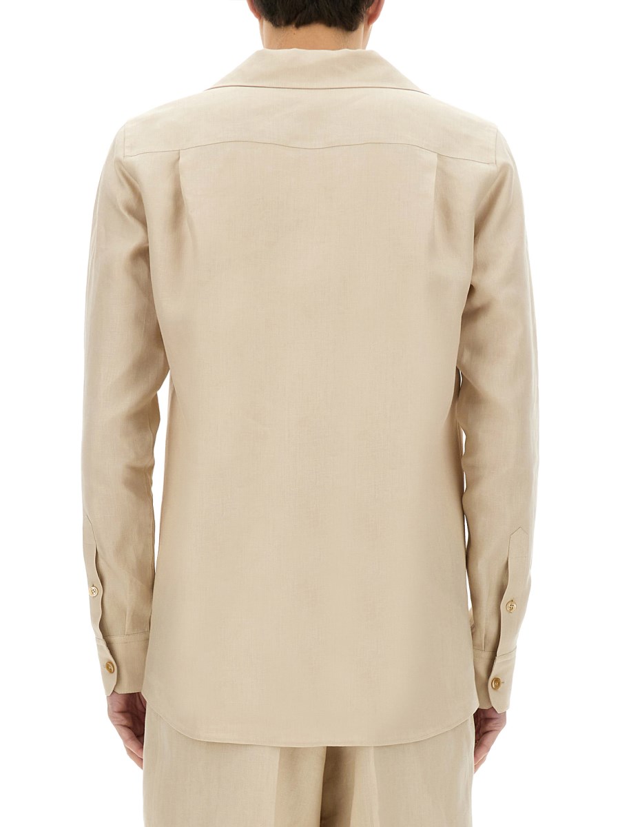 > 롱 슬리브 린넨 캔버스 브이넥 셔츠