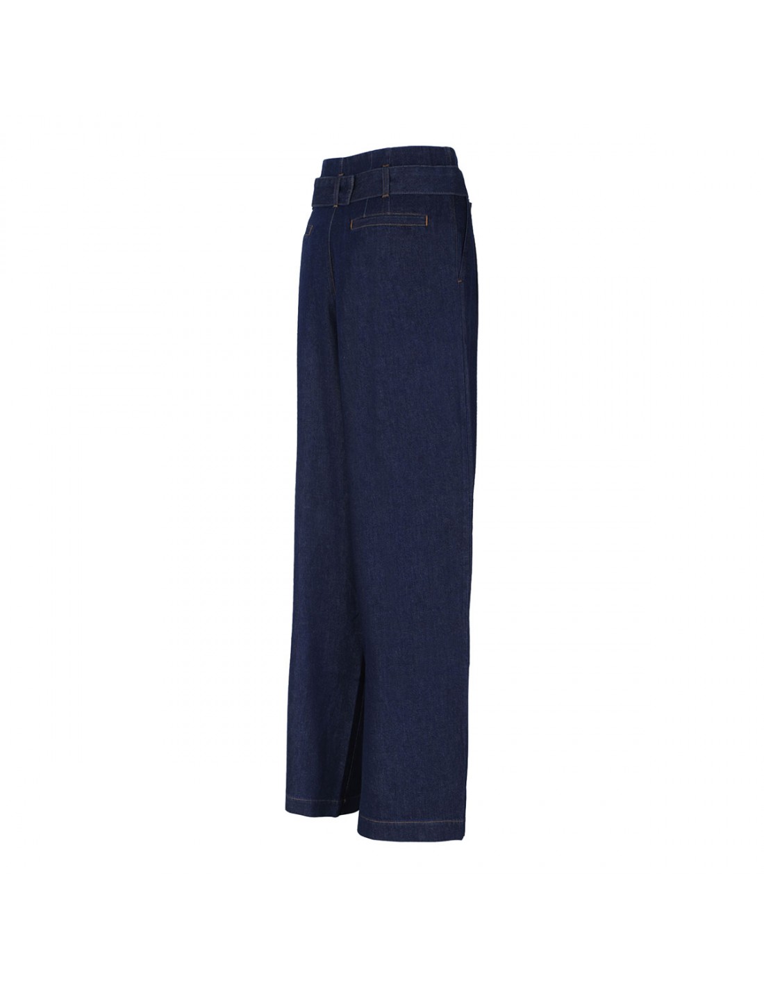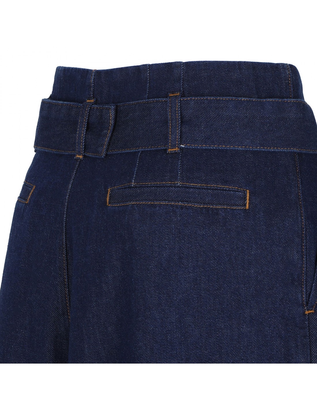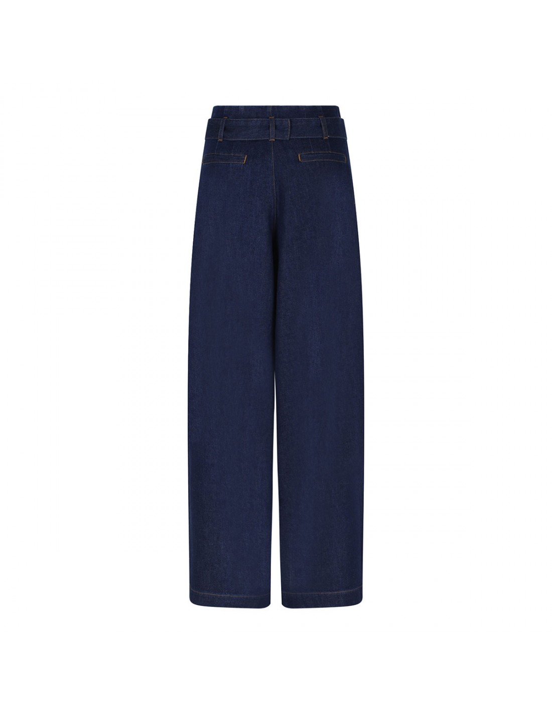Dark blue denim The Paper Bag pants from Frame featuring wide-leg, high waist, full-length, detachable belt with buckle, zip fly with hook-and-bar closure, side-seam pockets, pleated waist.