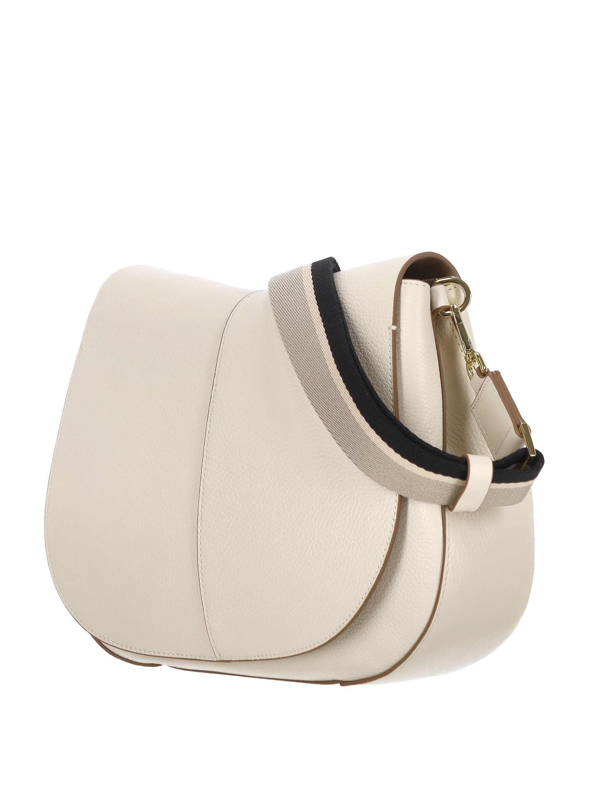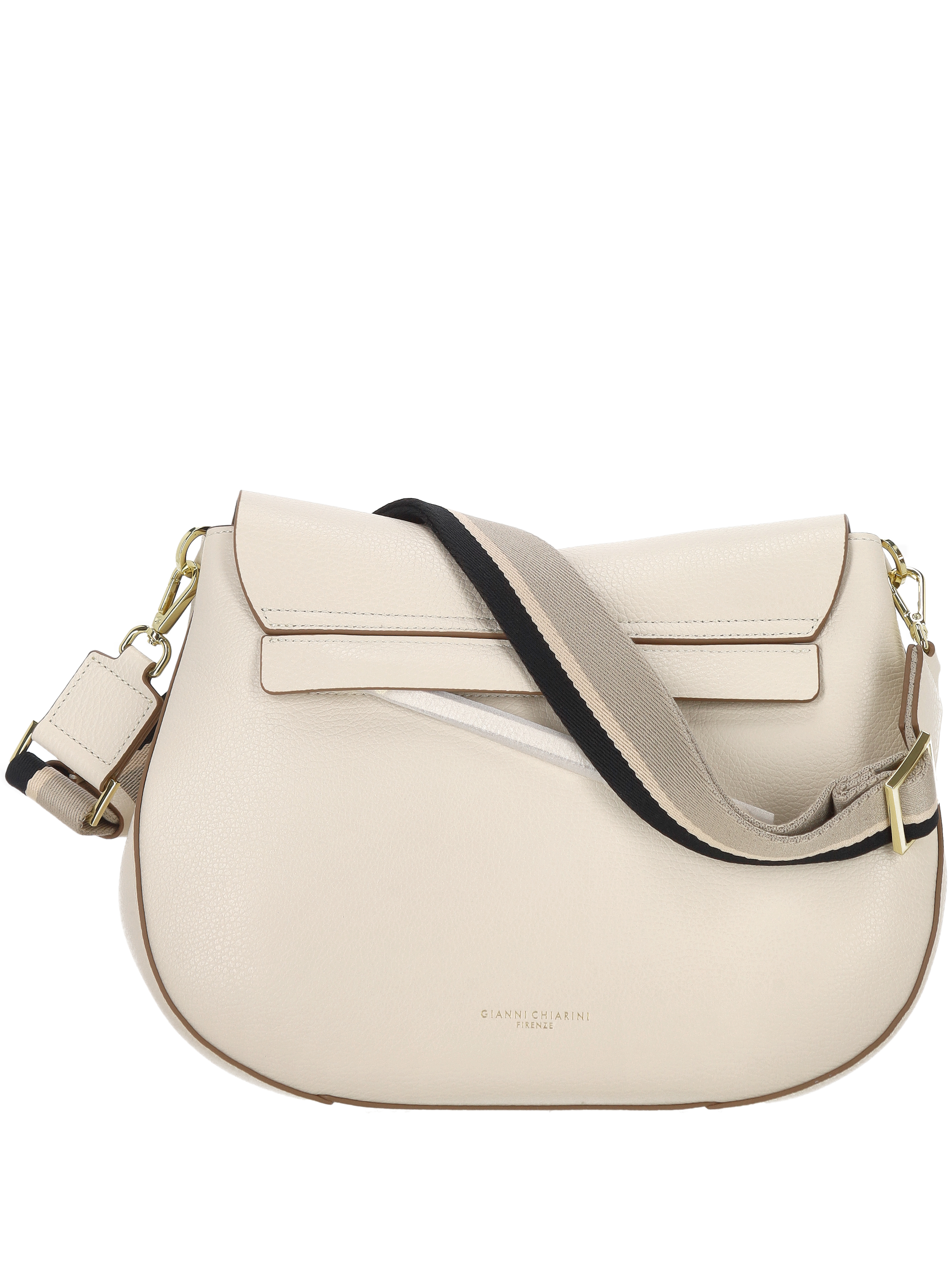 white foldover top with magnetic fastening single detachable top handle adjustable detachable shoulder strap This piece comes complete with a protective dust bag