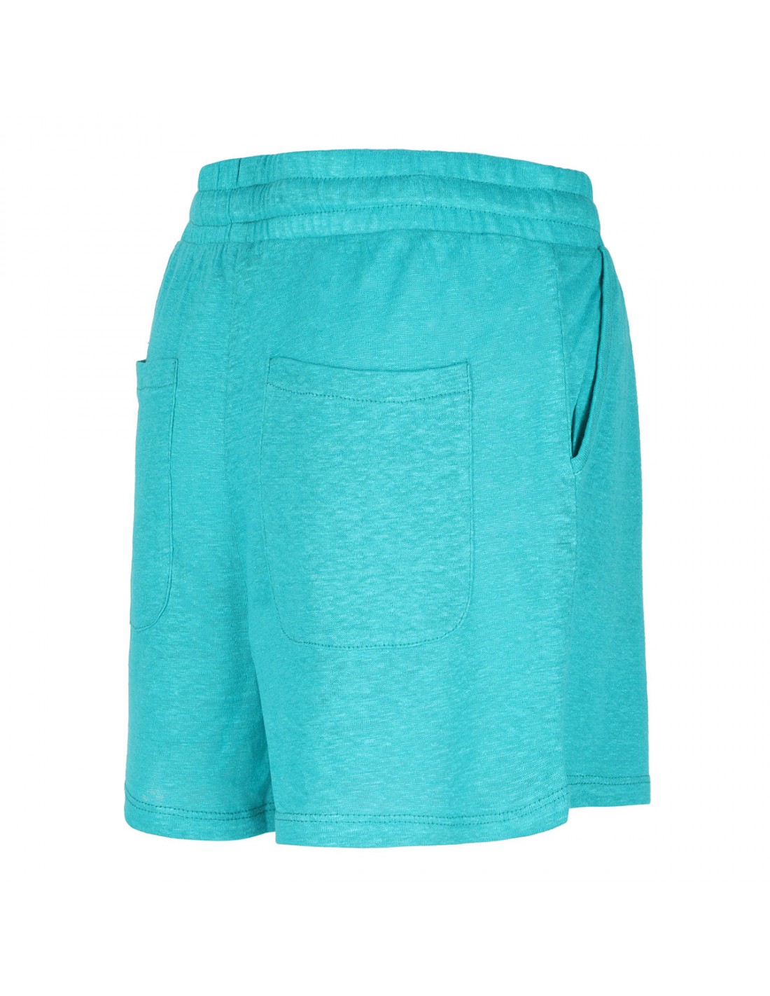Deep lagoon blue linen Anthony shorts from Le Noir featuring elasticated waistband with drawstring, side pockets and back patch pockets.
