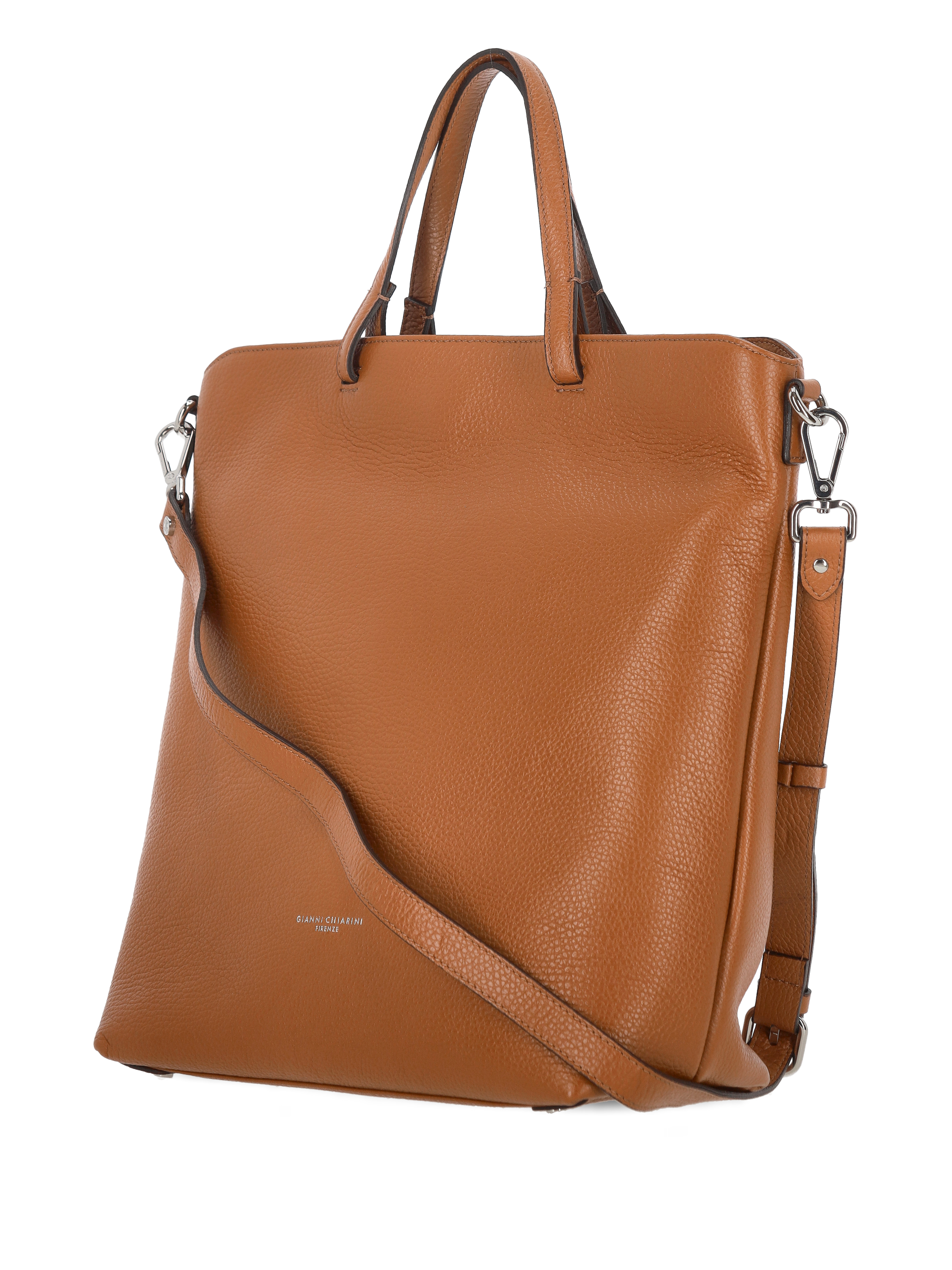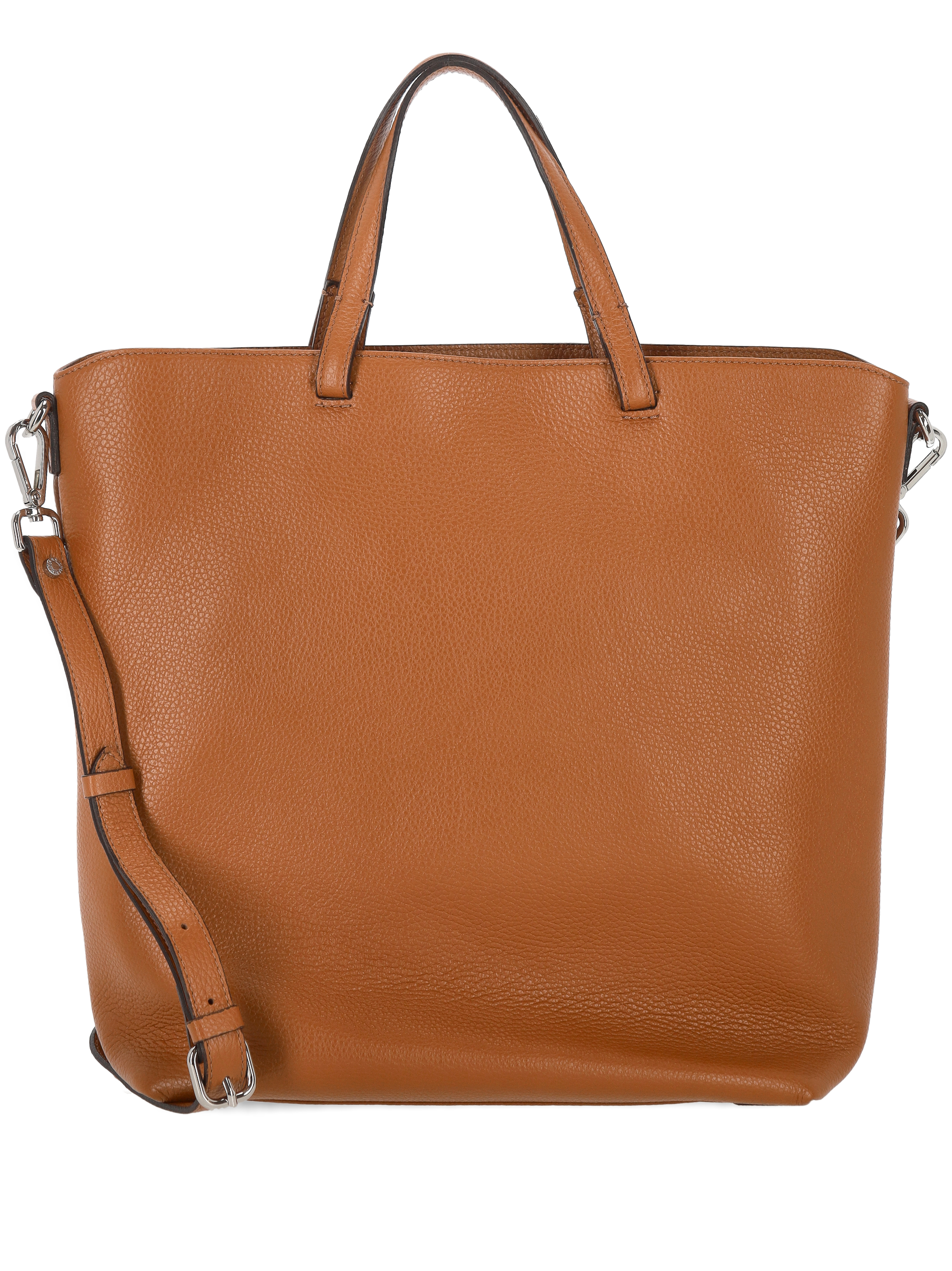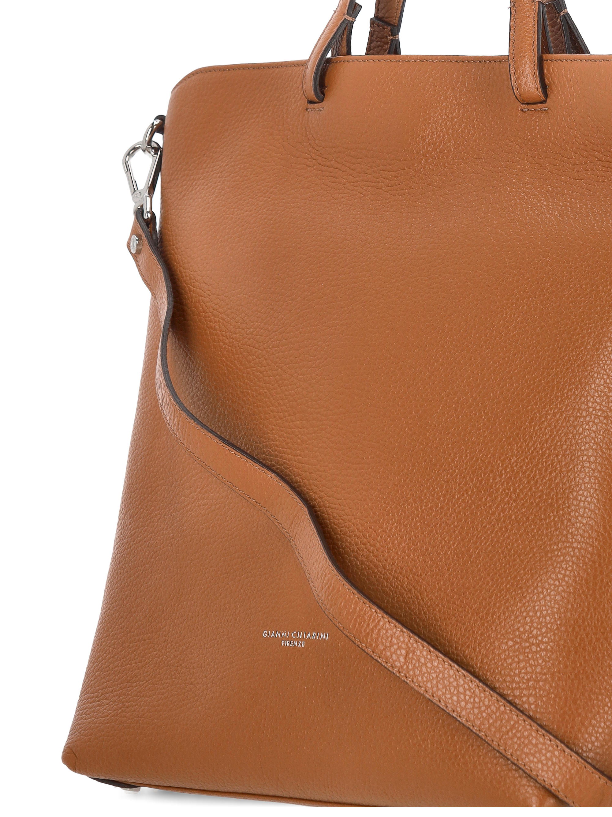 caramel brown clasp fastening two flat top handles adjustable detachable shoulder strap This piece comes complete with a protective dust bag