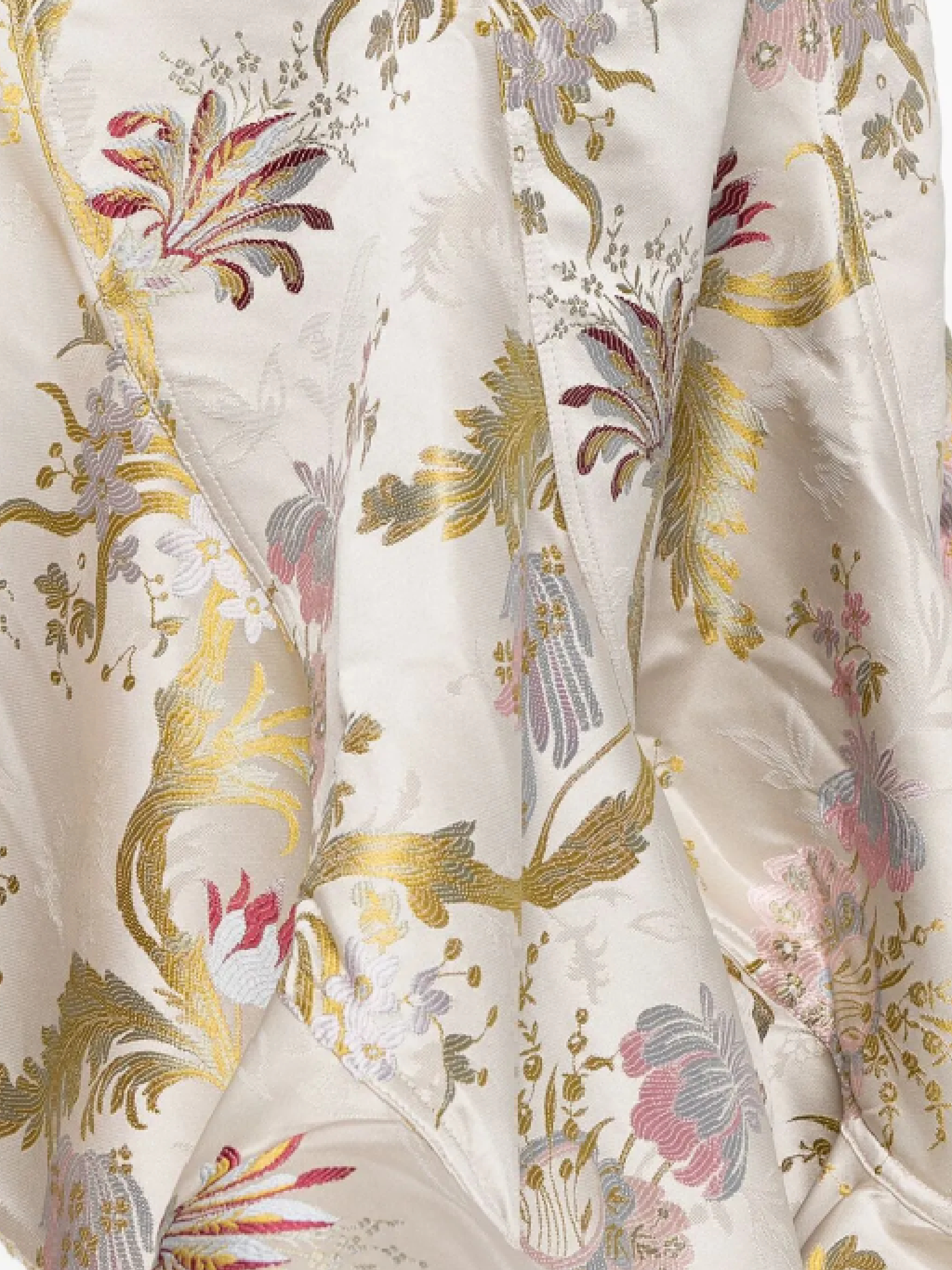 Ash grey rear zip fastening classic five pockets belt loops allover floral embroidery