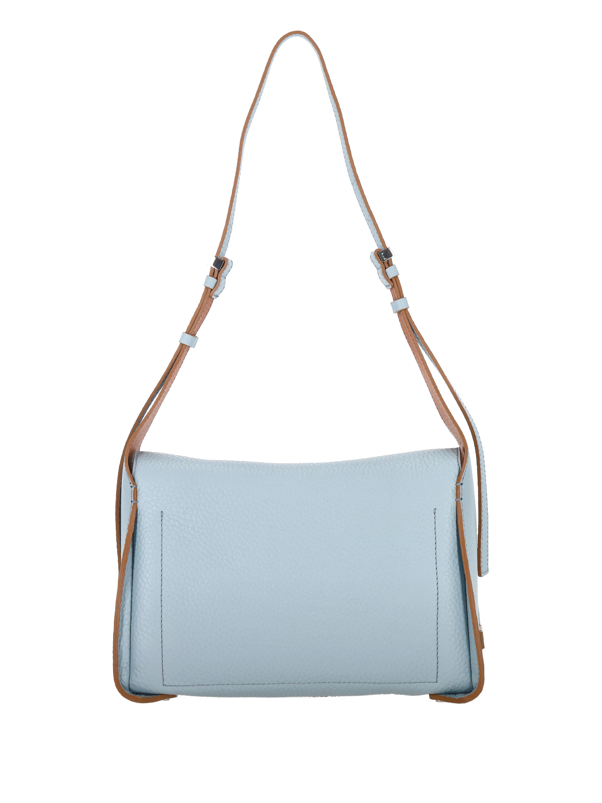 powder blue foldover top with magnetic fastening adjustable shoulder strap internal slip pocket This piece comes complete with a protective dust bag