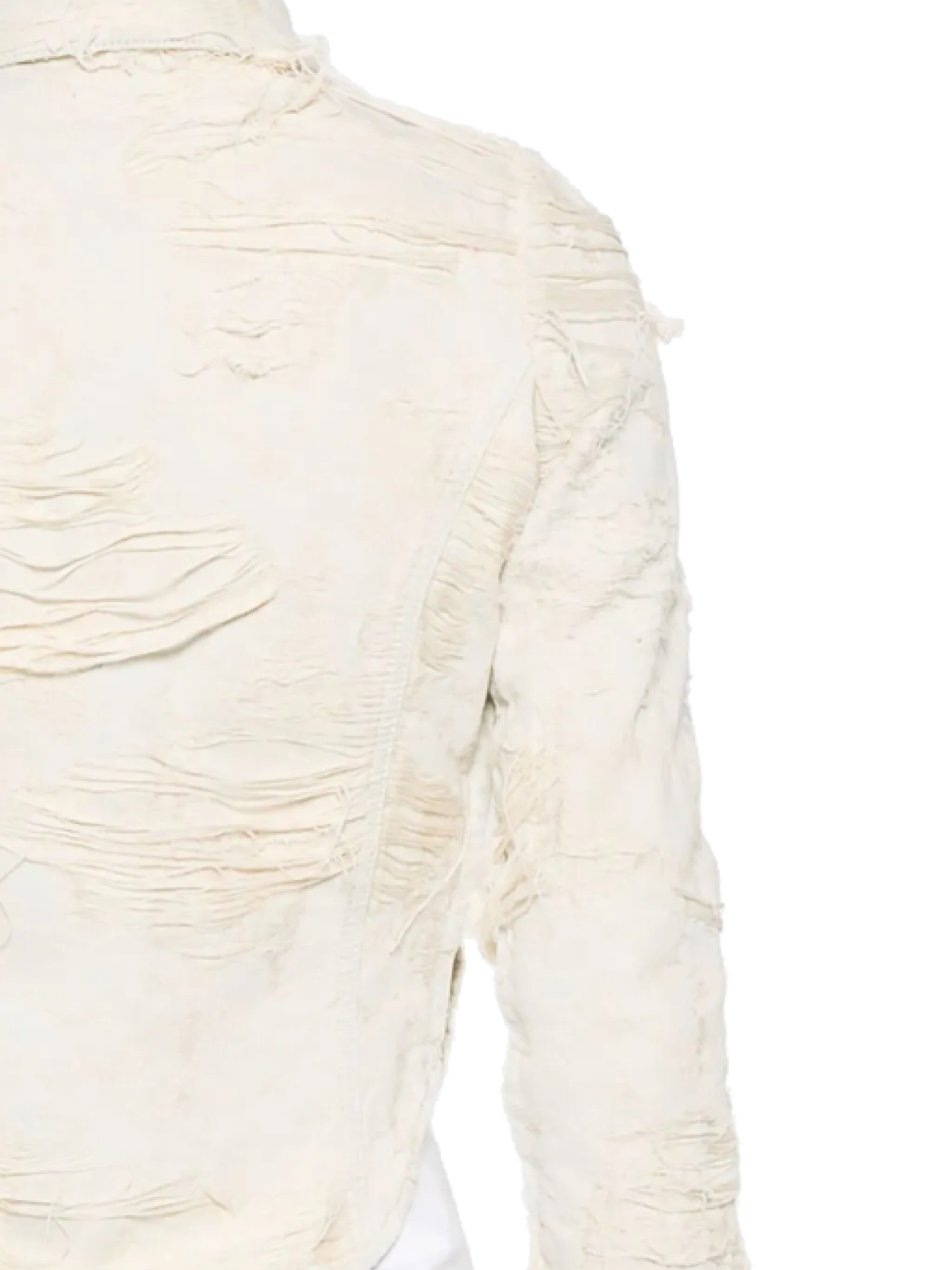 almond beige concealed front pressstud fastening distressed effect long sleeves curved hem