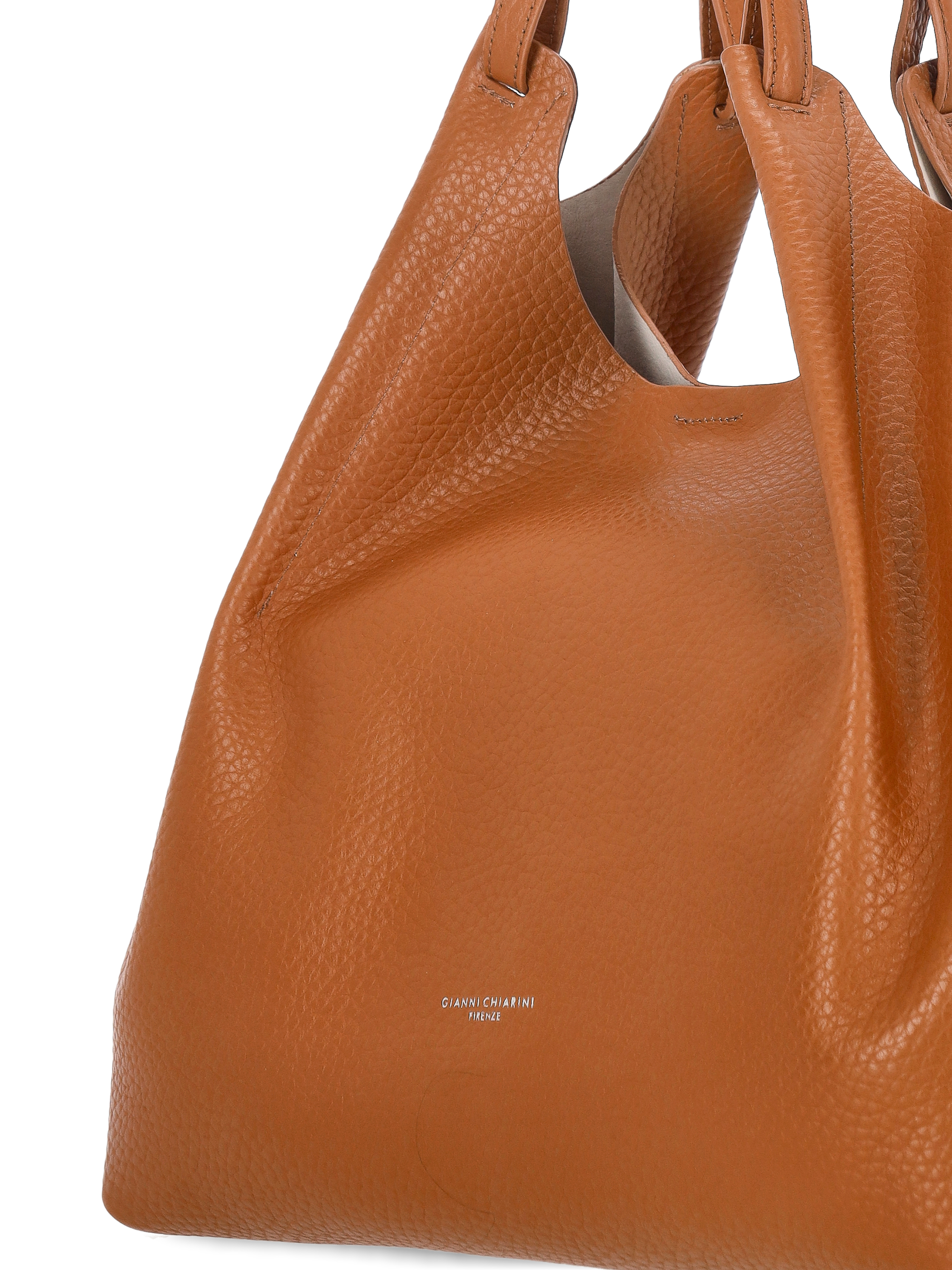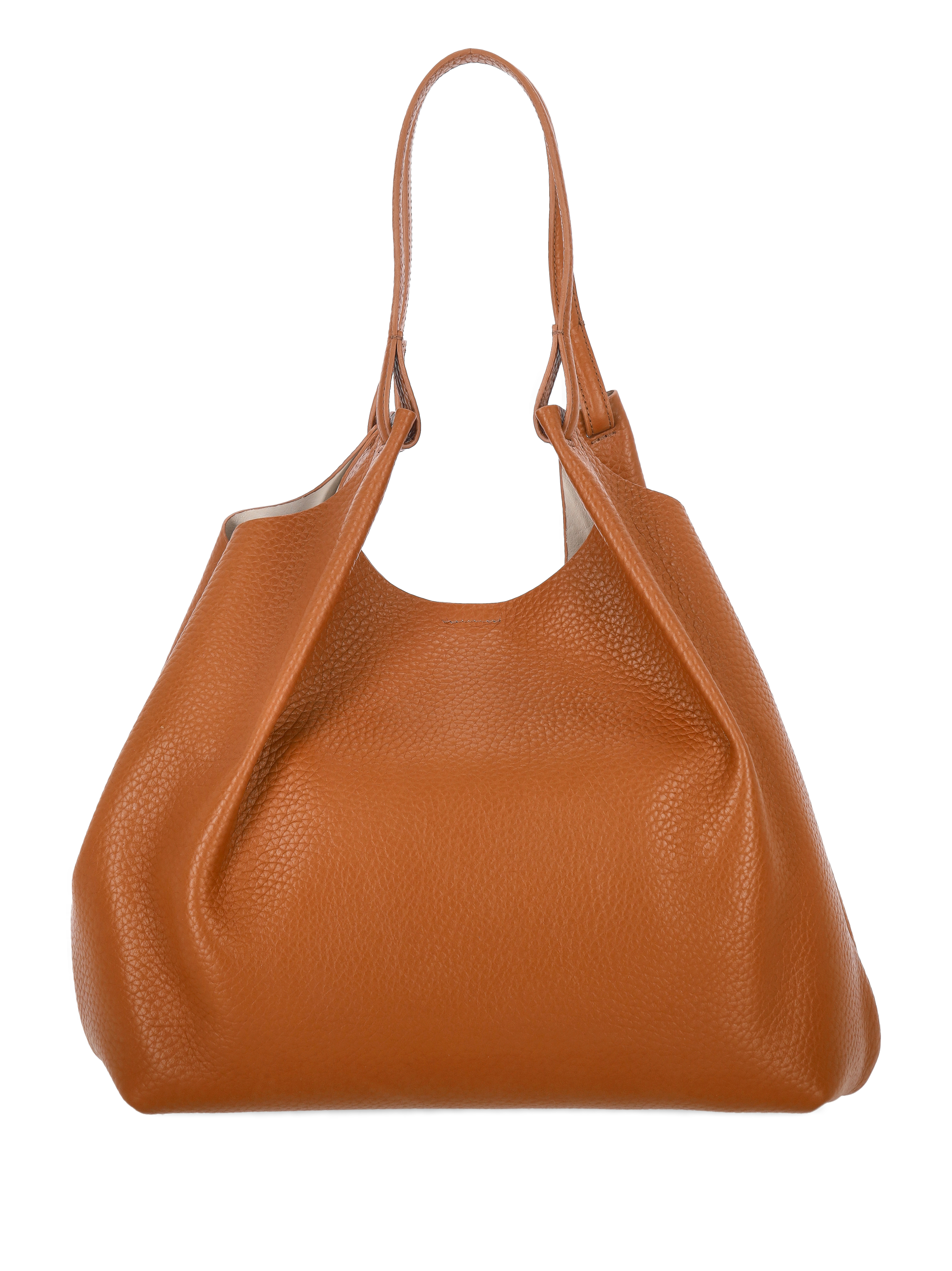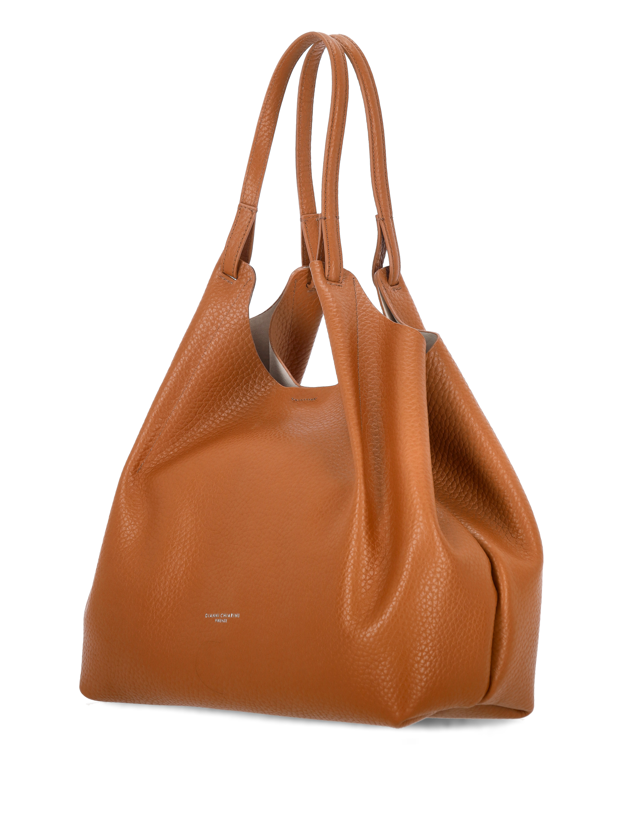 cognac brown concealed magnetic fastening two top handles removable pouch This piece comes complete with a protective dust bag