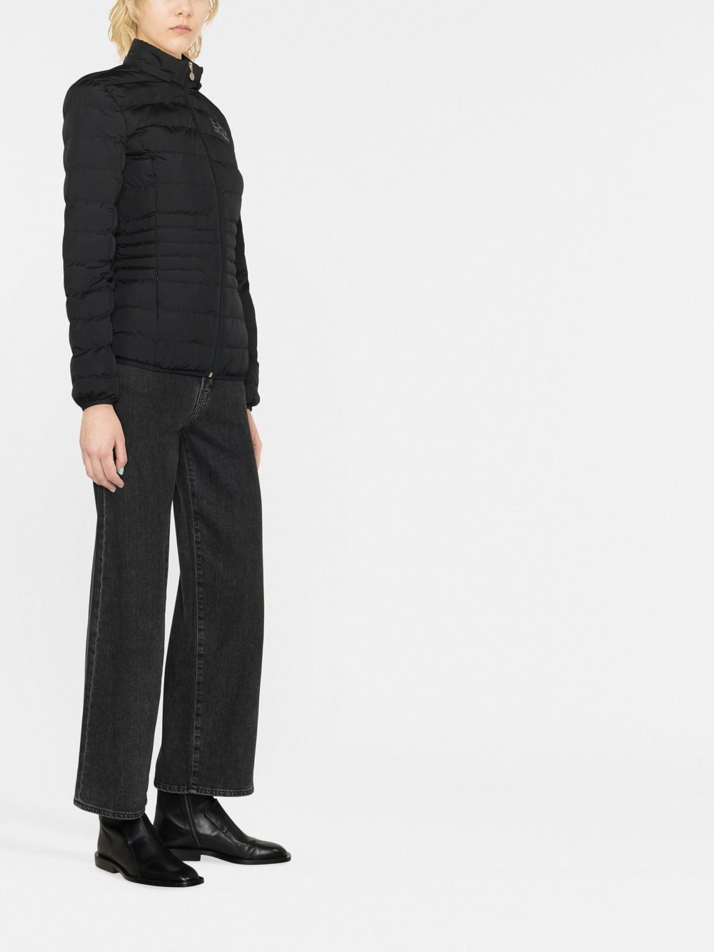 black logo print at the chest quilted finish padded design two side zip-fastening pockets front zip fastening classic hood long sleeves elasticated cuffs