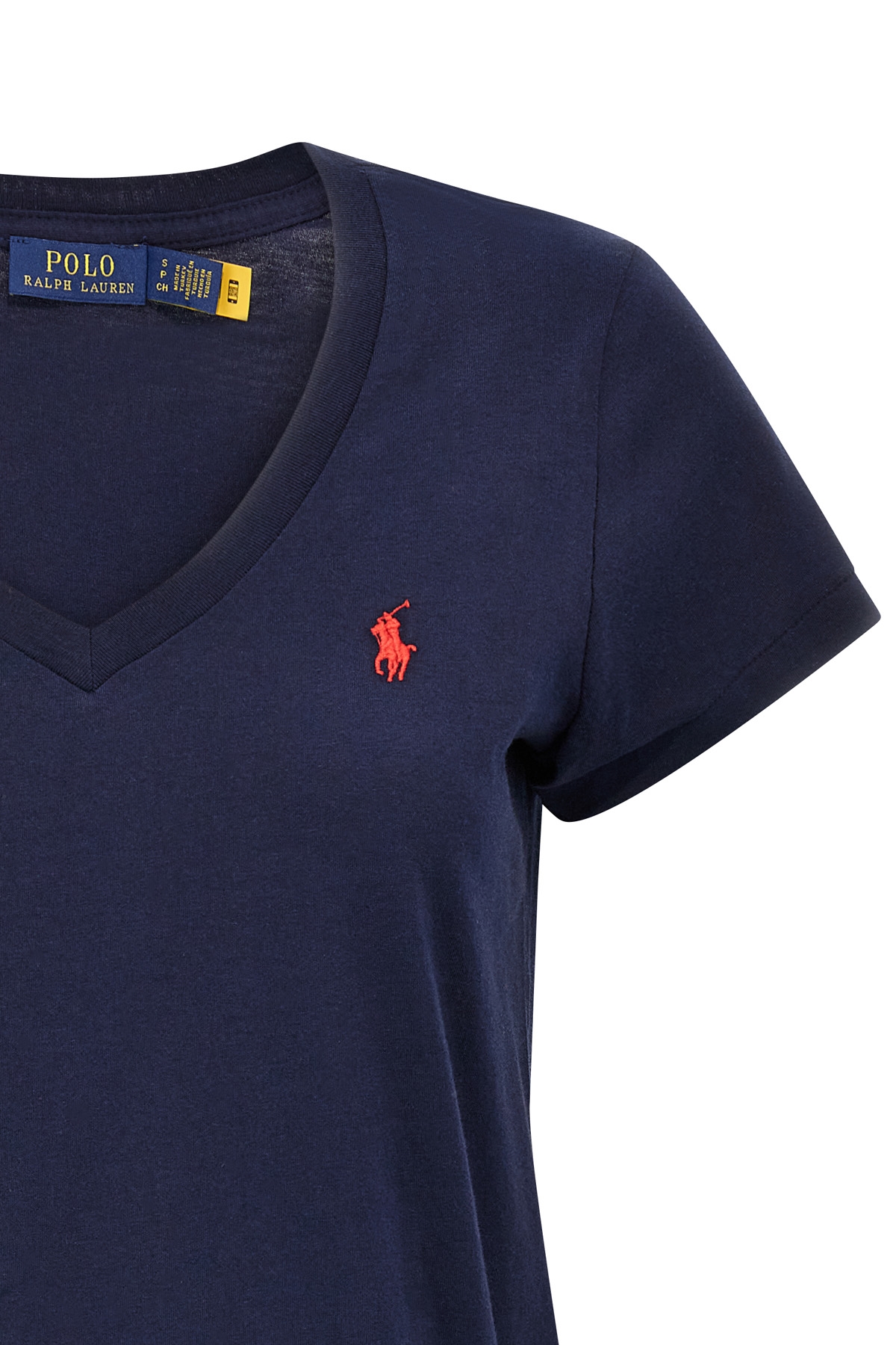 Cotton T-shirt with front logo embroidery, V-neck, short sleeves.