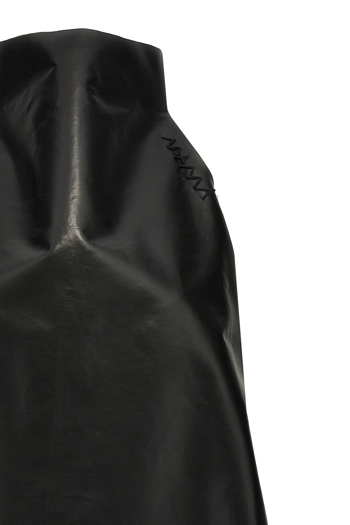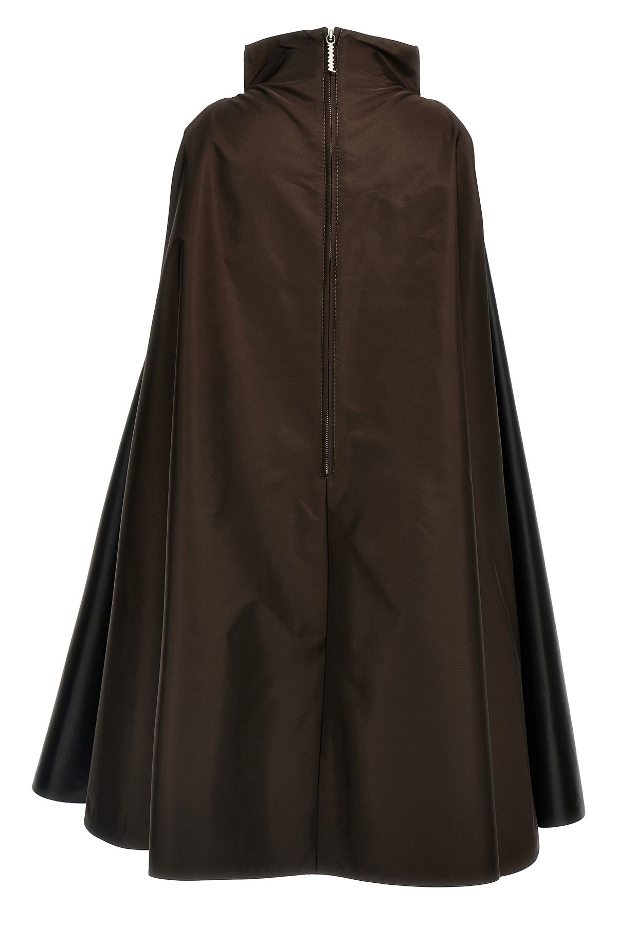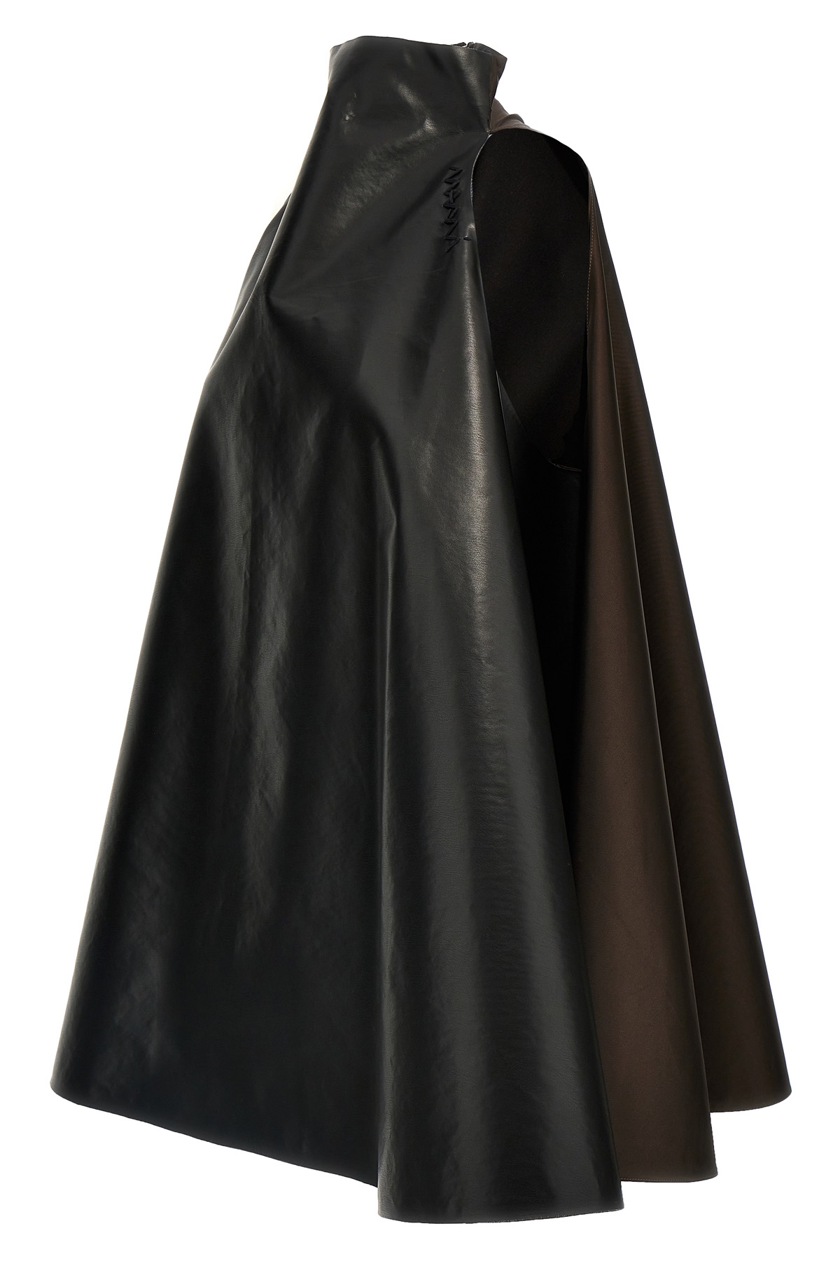 Two-tone trapeze dress in black coated nylon and brown nylon, sleeveless, high neck, logo embroidery. SUSTAINABLE: This product is made with recycled ECONYL® nylon.