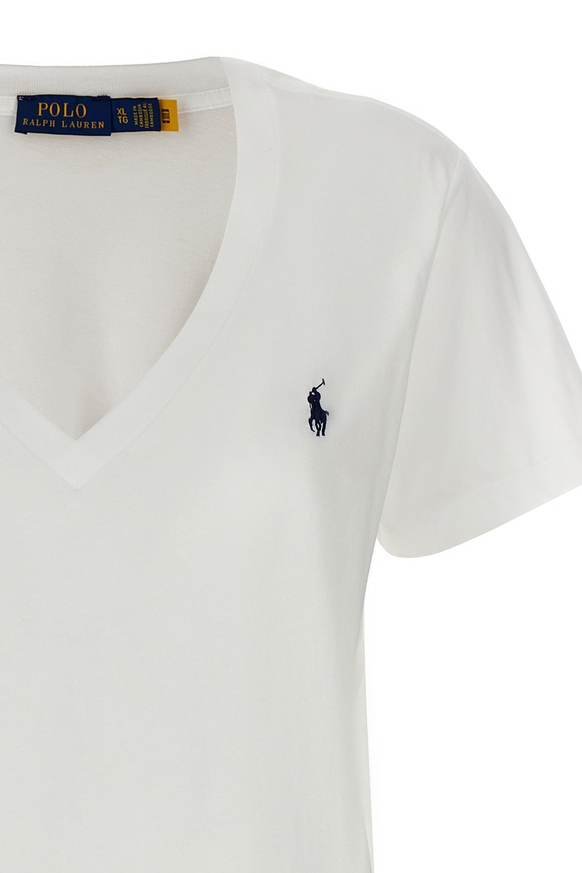 Cotton T-shirt with front logo embroidery, V-neck, short sleeves.
