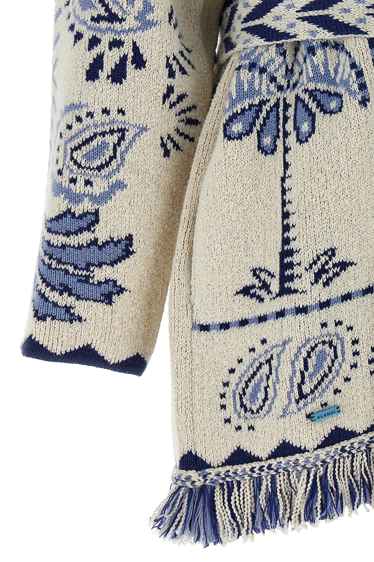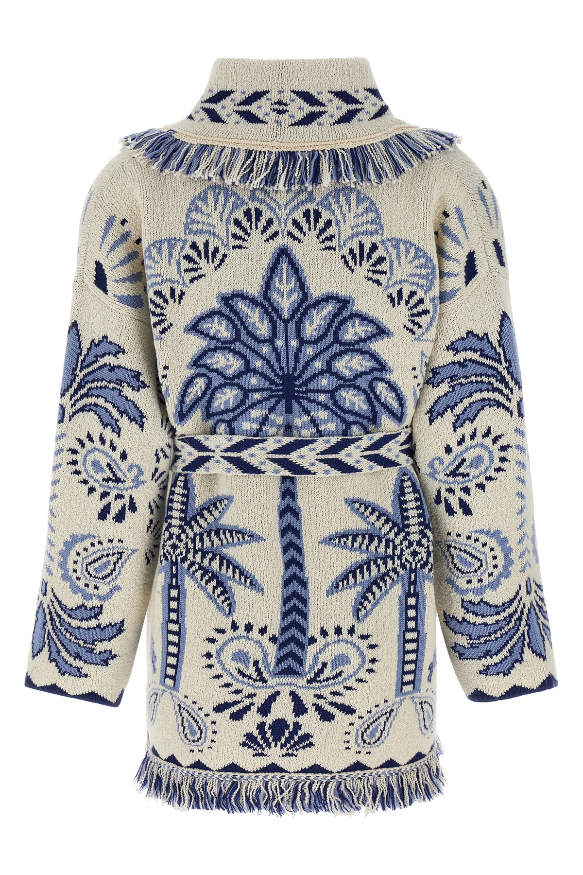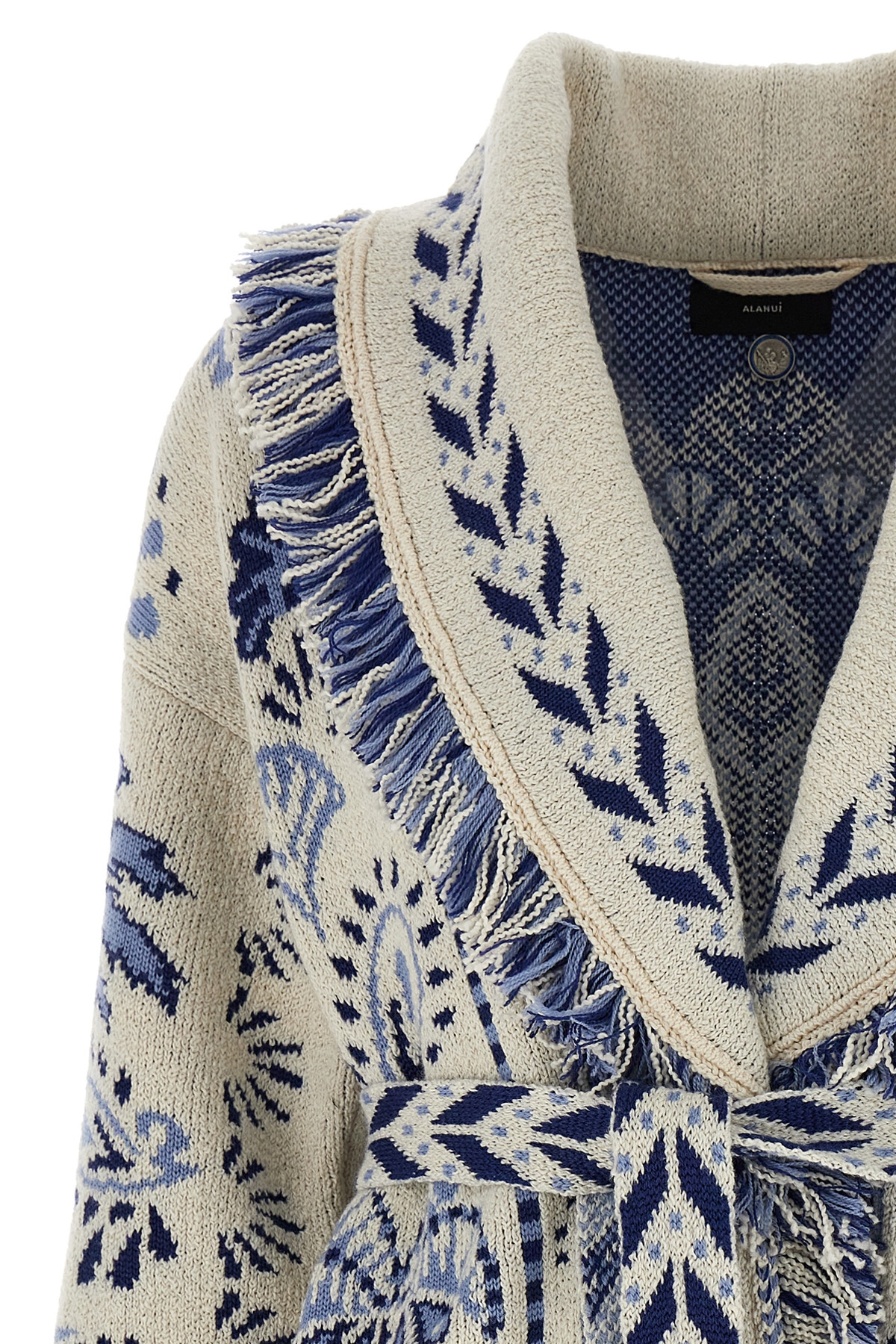'Wild Wonder' wool blend cardigan with V-neck, belt closure at the waist, fringed edges, side pockets, long sleeves.