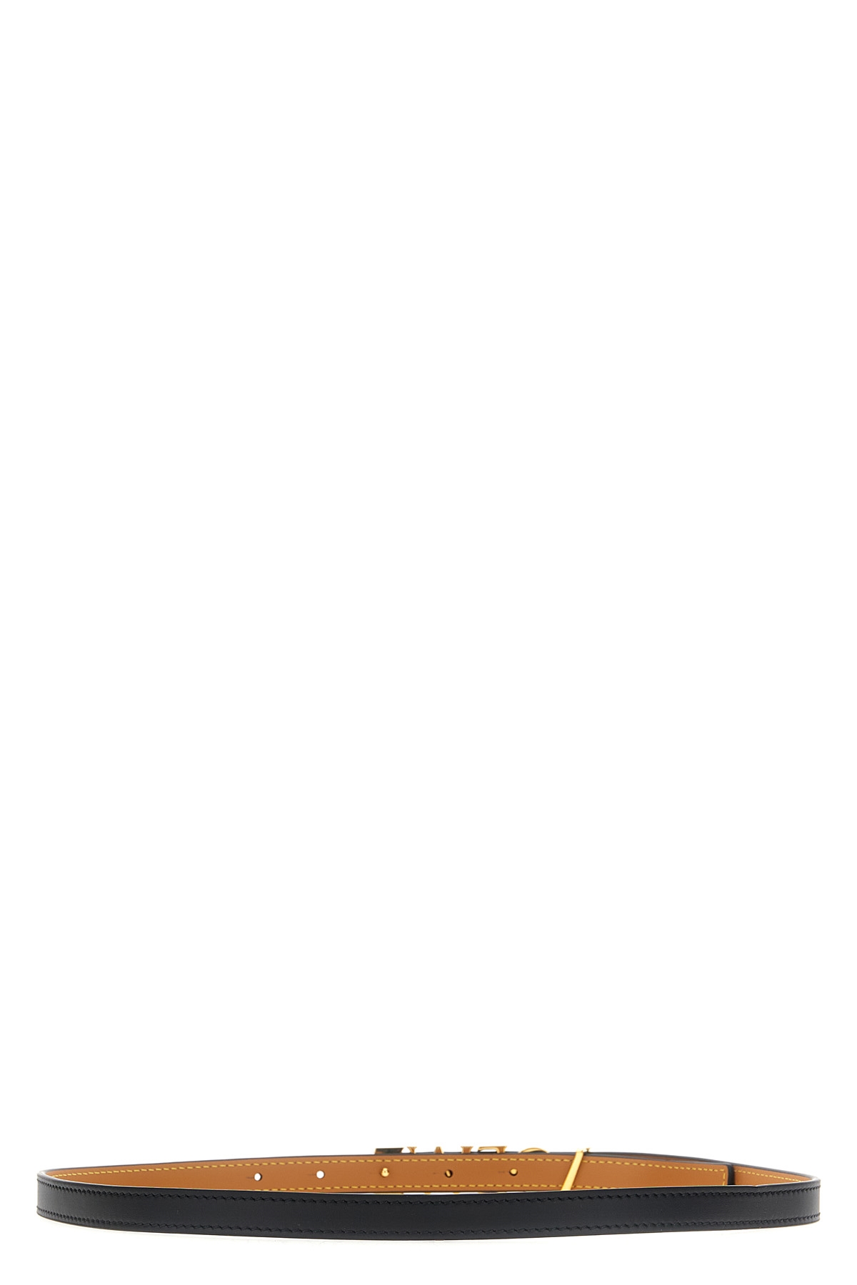 Leather belt with gold metal 'lettering' logo.