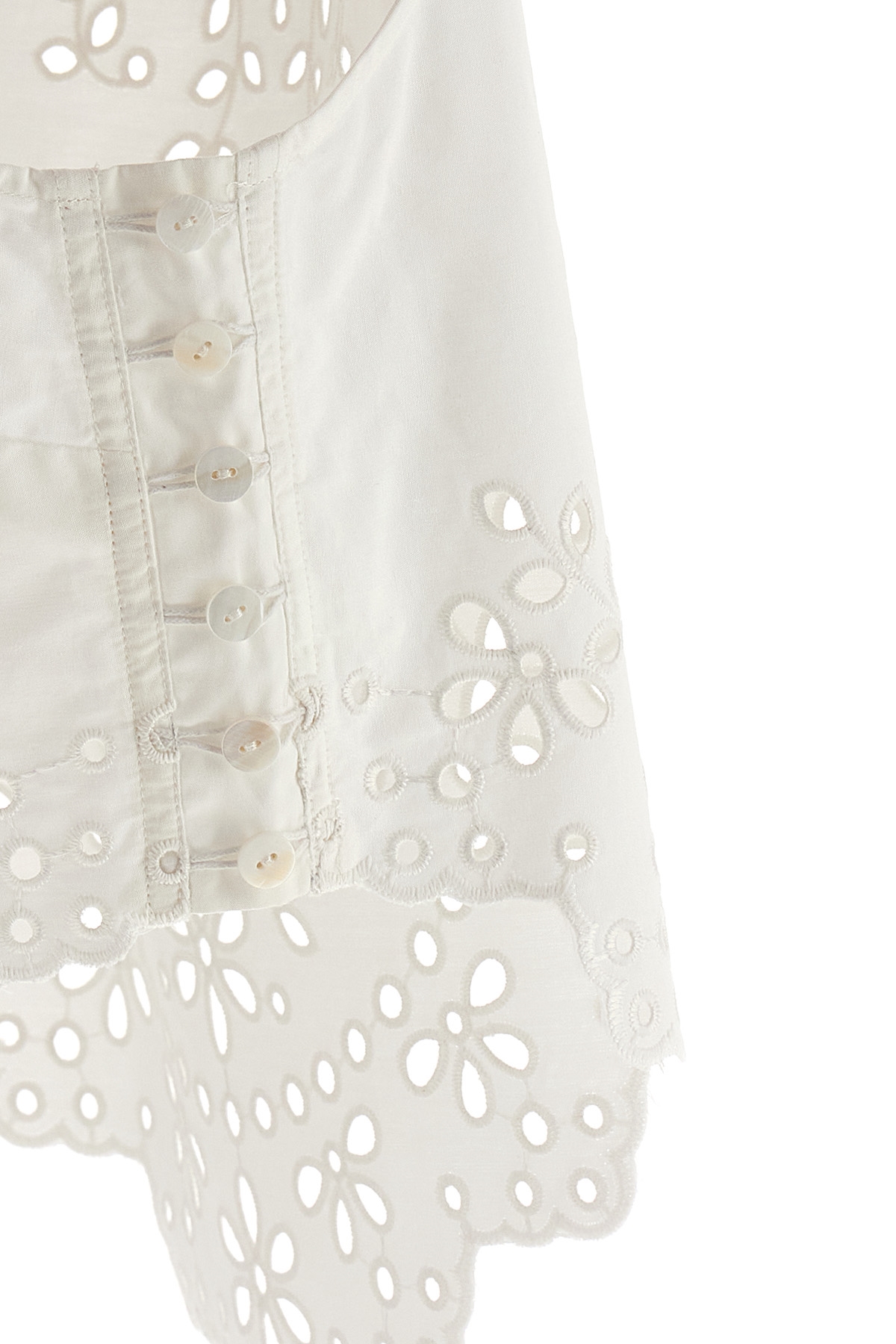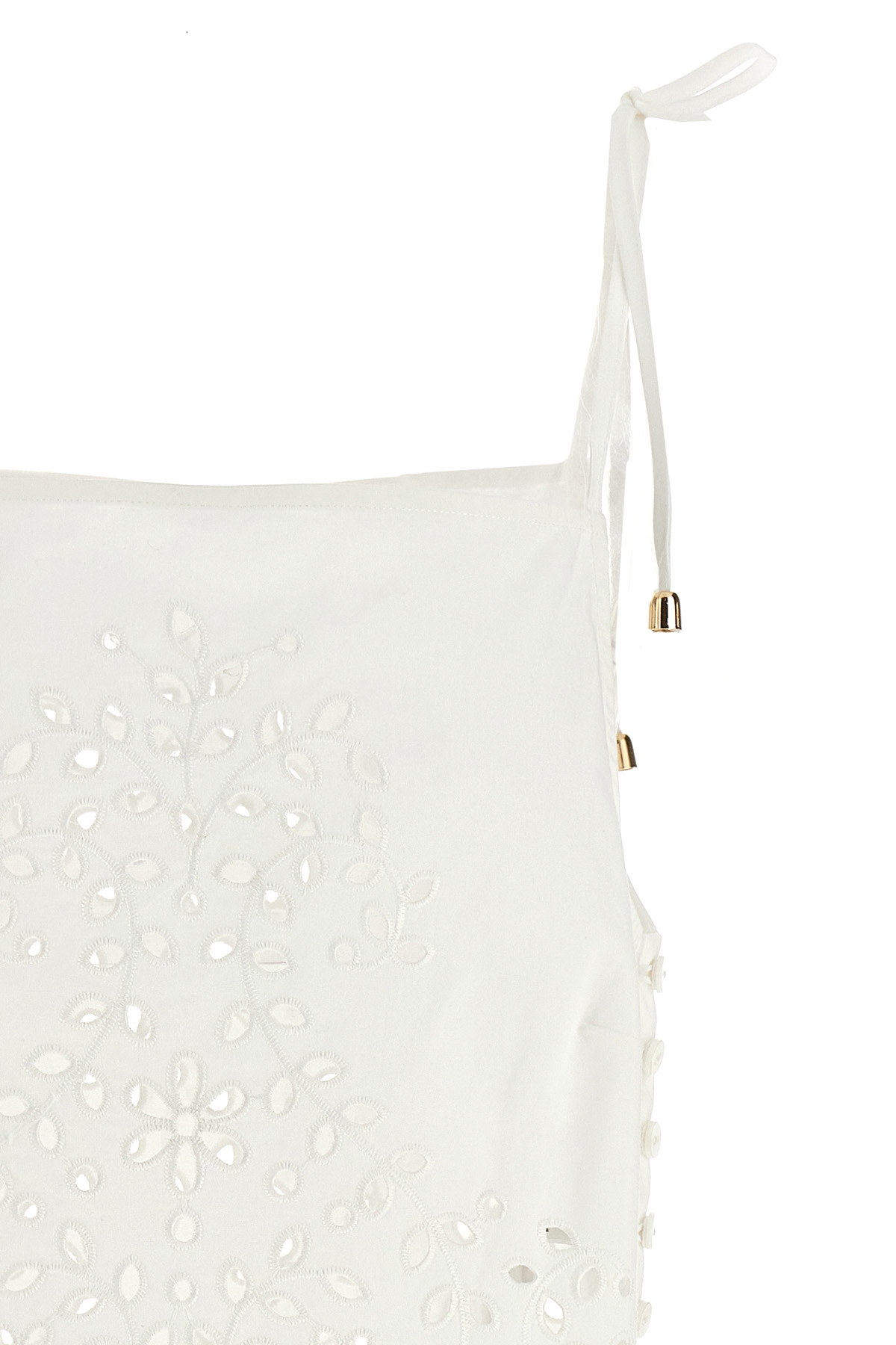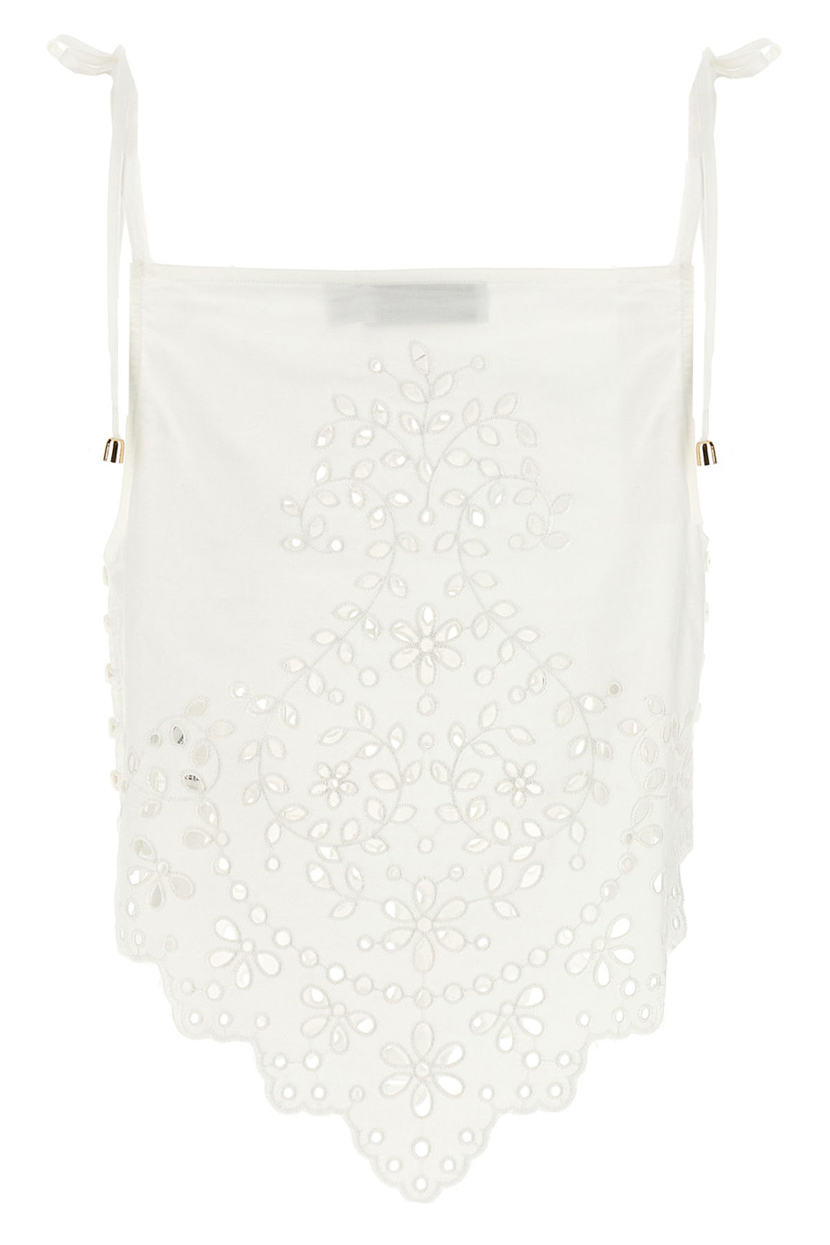 'White Cotton Embroidered' cotton top embroidered with sangallo, unlined, drawstring straps to tie up.