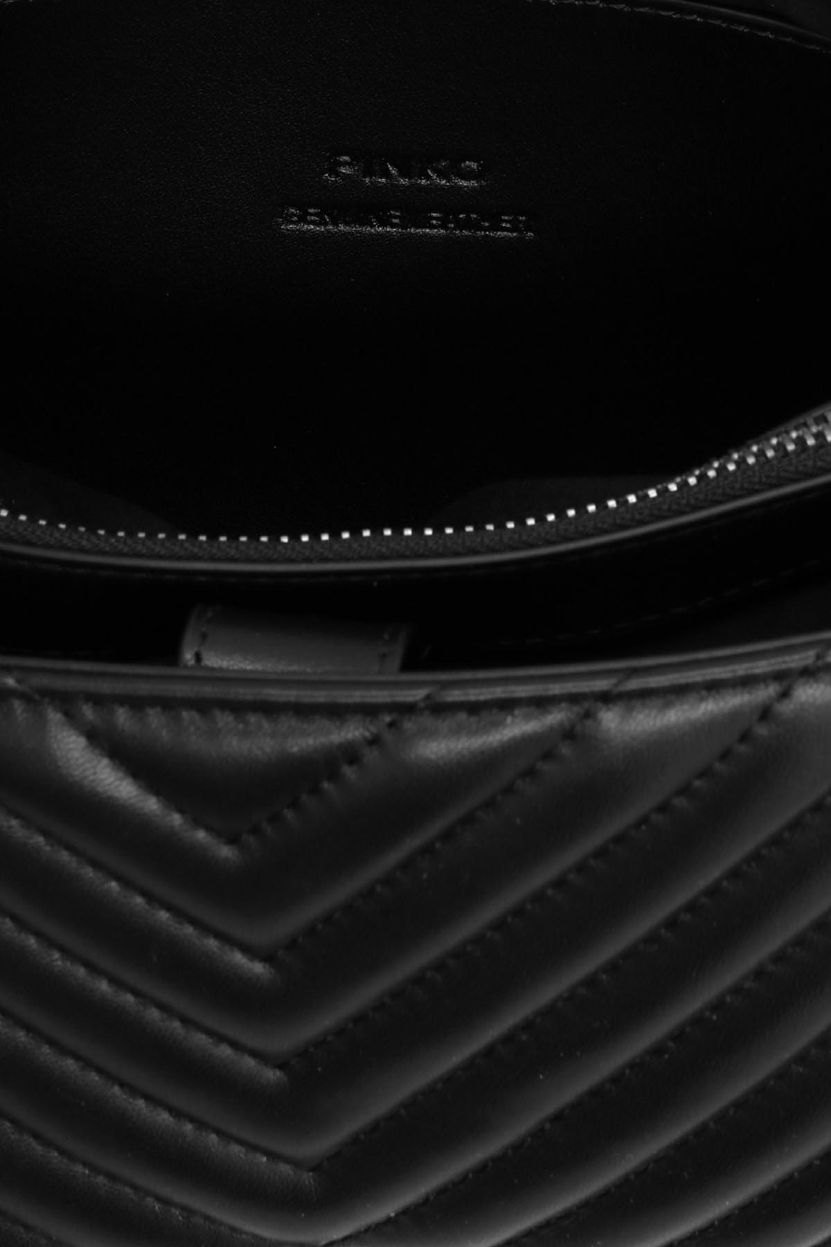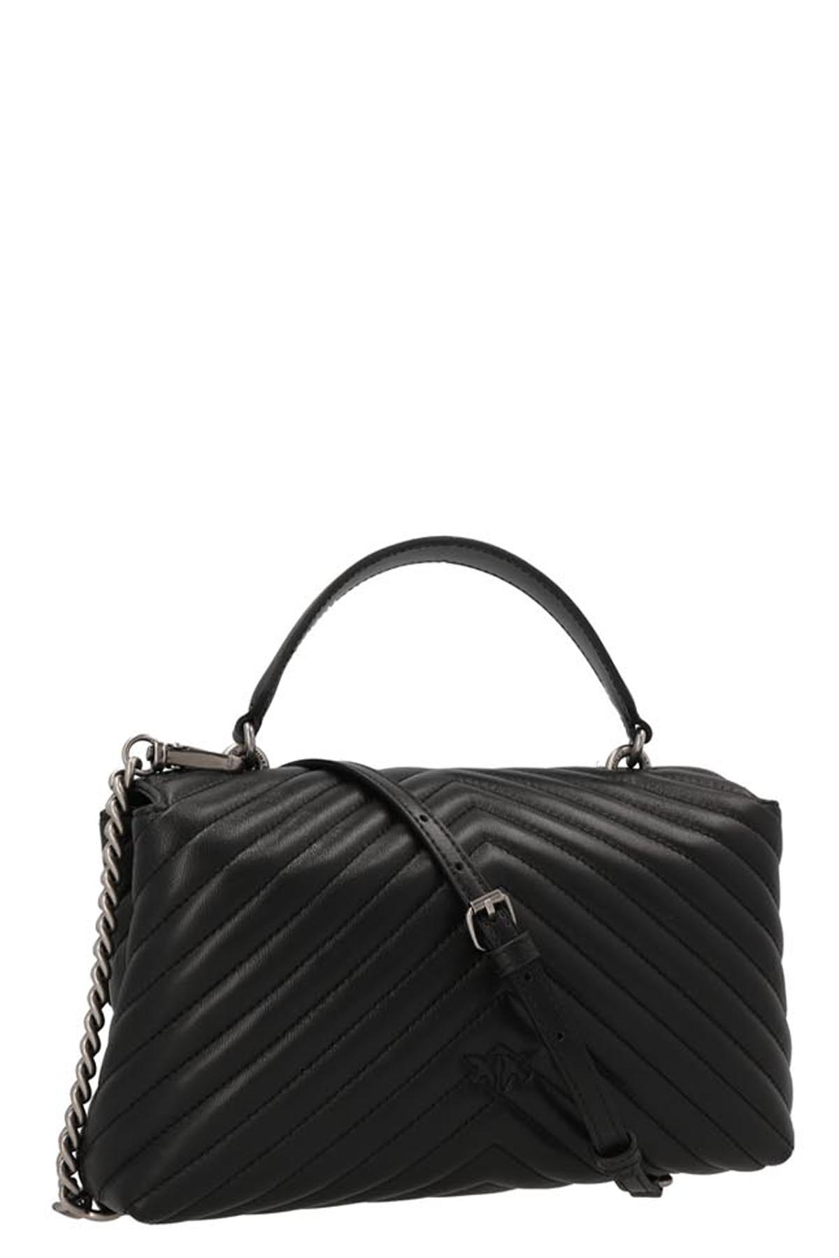 'Love Lady Puff Classic' leather chevron pattern handbag, fixed handle, magnetic flap closure, front metal logo applique, adjustable and removable leather guard chain strap.