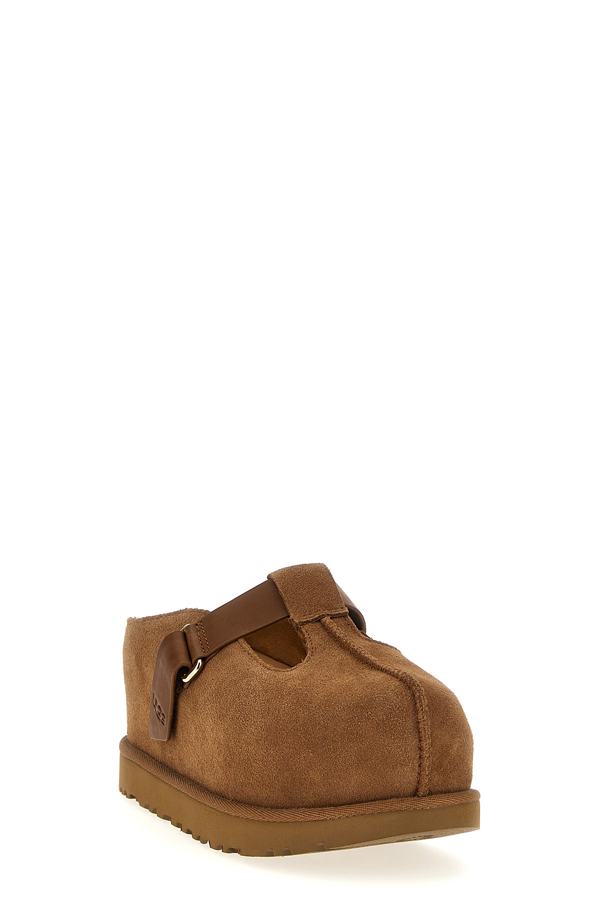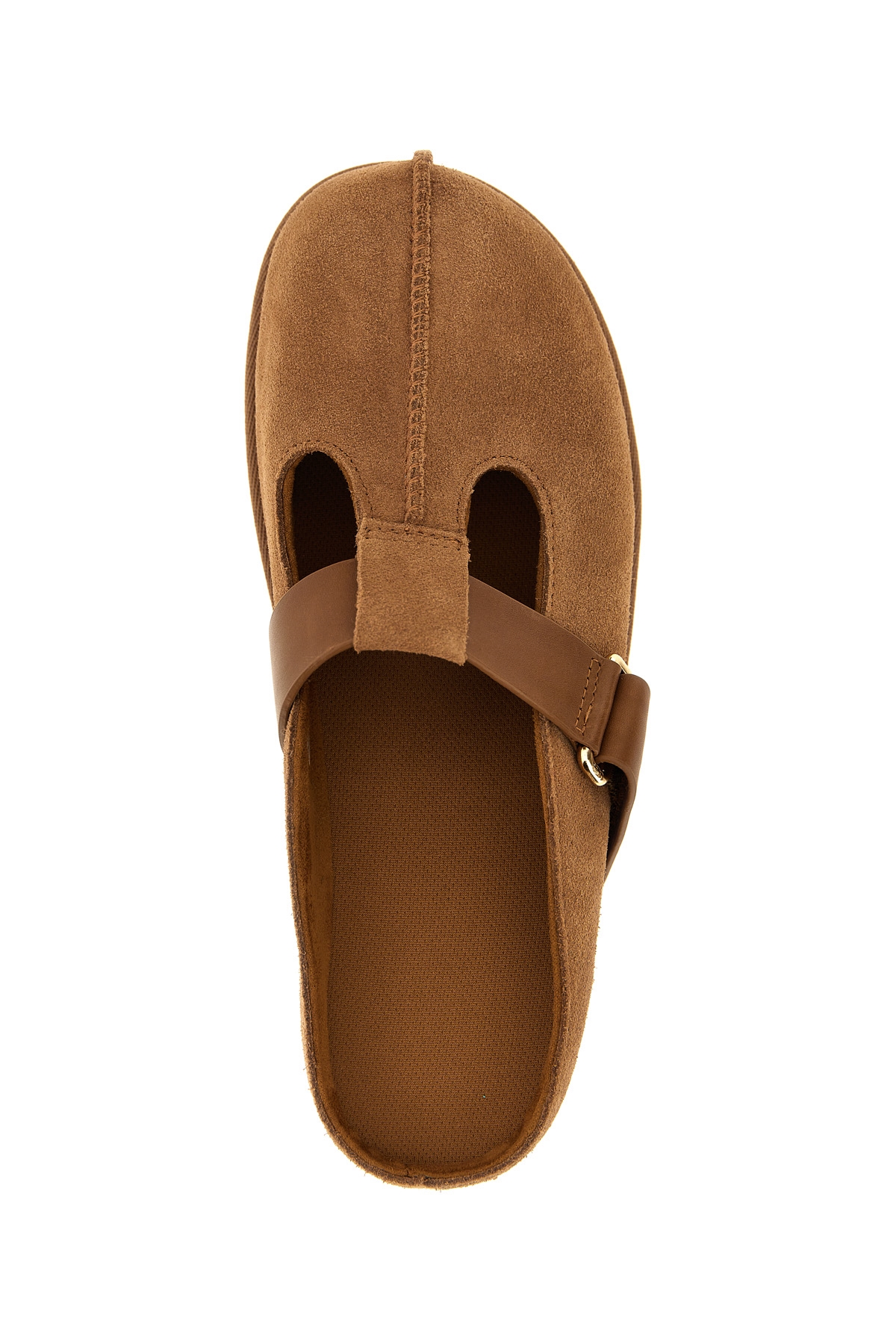 Goldenstar Hi' suede sabots with adjustable leather strap, contoured EVA inner sole, midsole and platform sole made of EVA sugar cane.