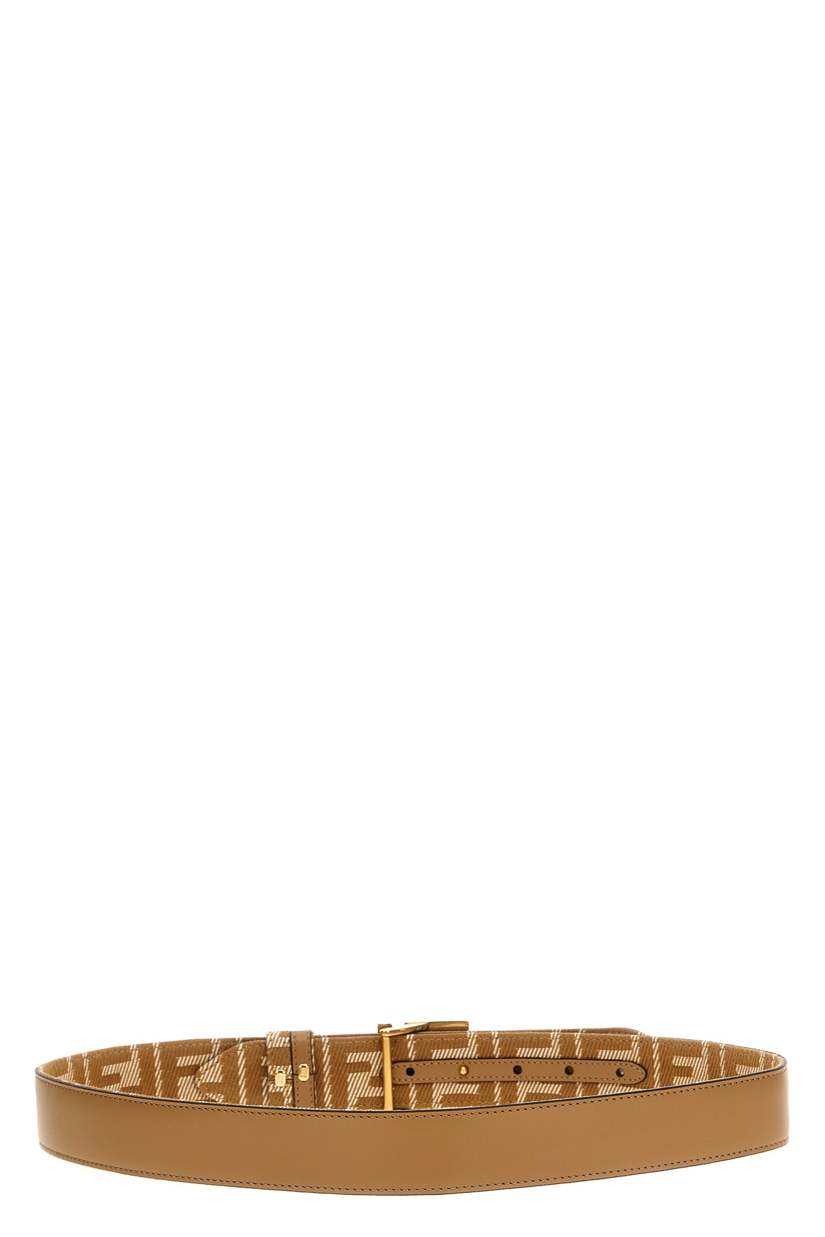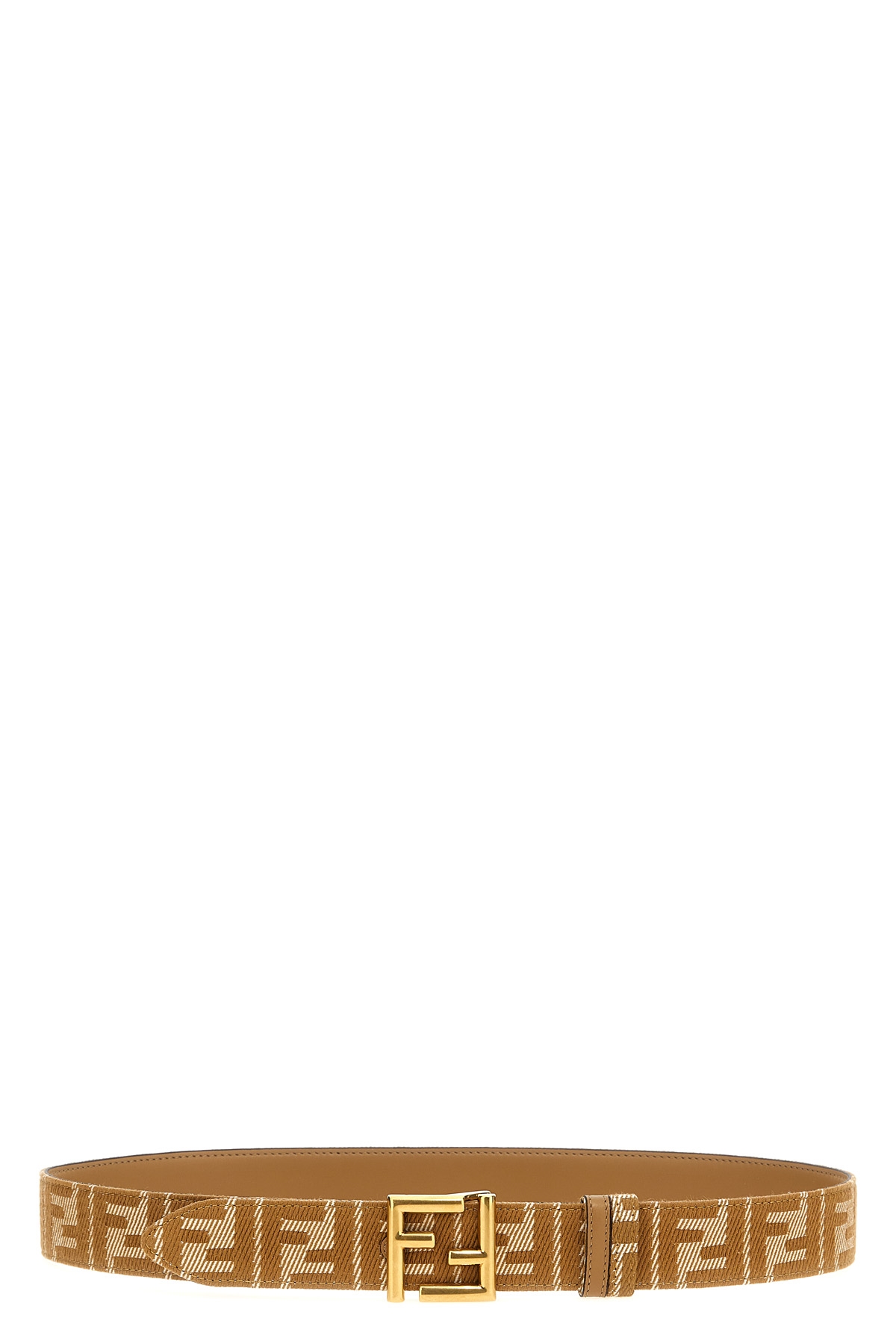 Reversible belt in smooth plain leather and FF jacquard denim effect, metal FF cufflink closure.
