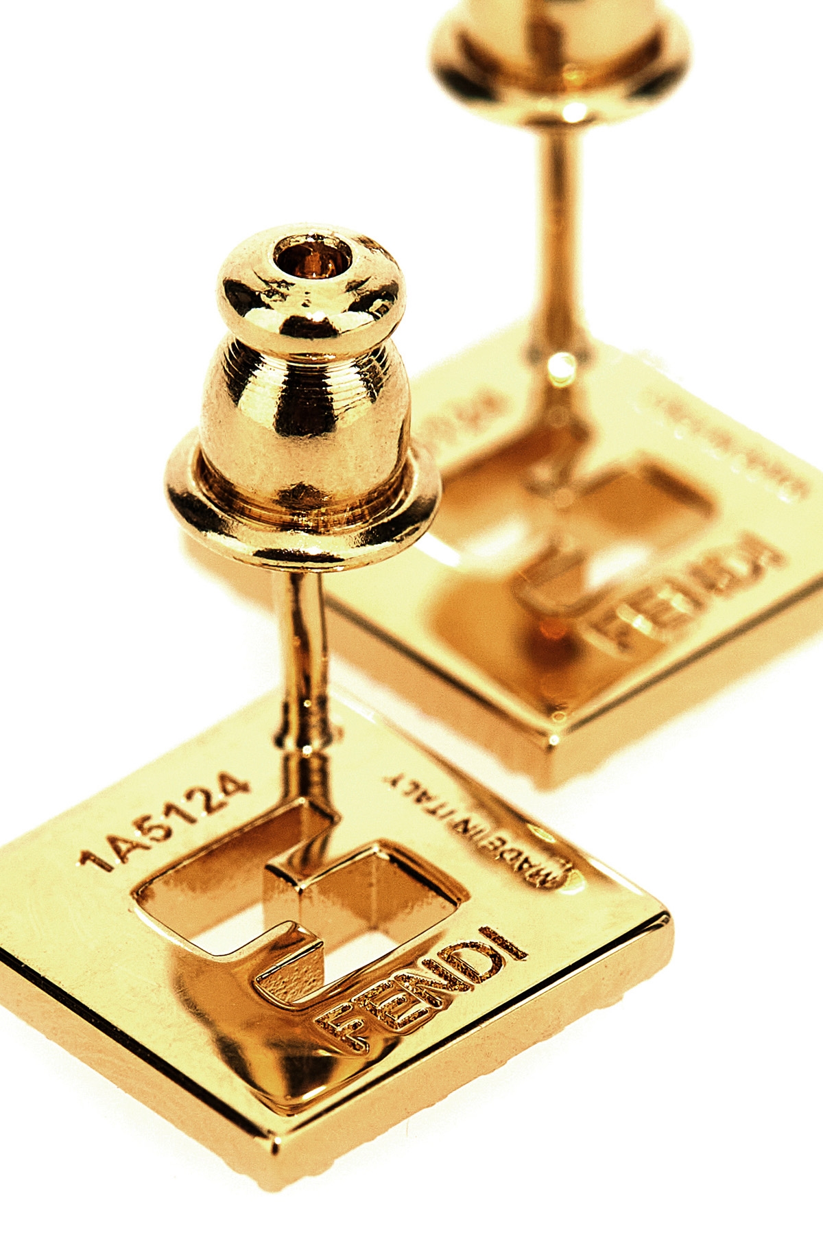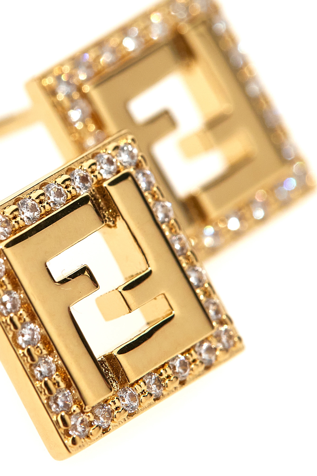 Forever Fendi' metal earrings with gold finish and crystals. ITEM CANNOT BE RETURNED
