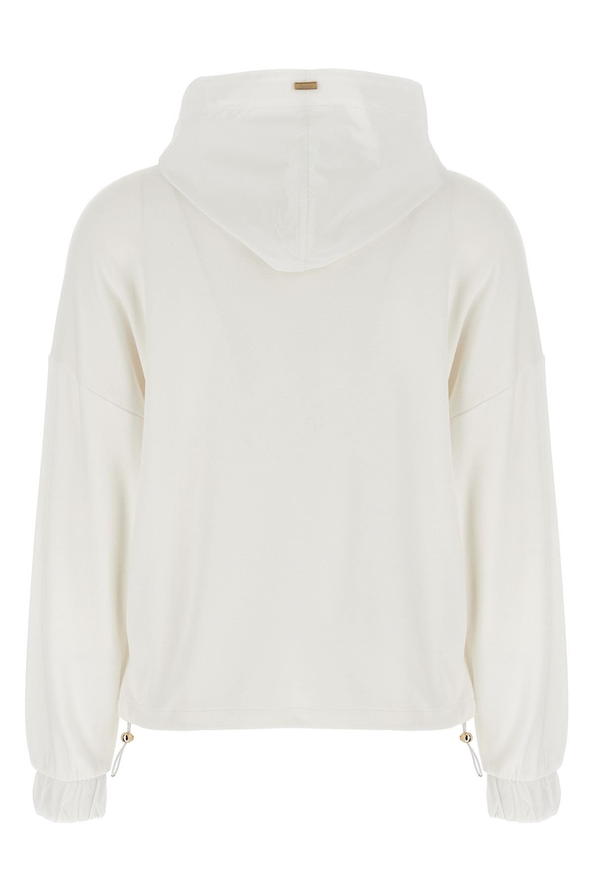 Viscose hoodie in technical fabric, front zip closure, pockets, long sleeves with elastic cuffs and dropped shoulders, drawstring on the hem.