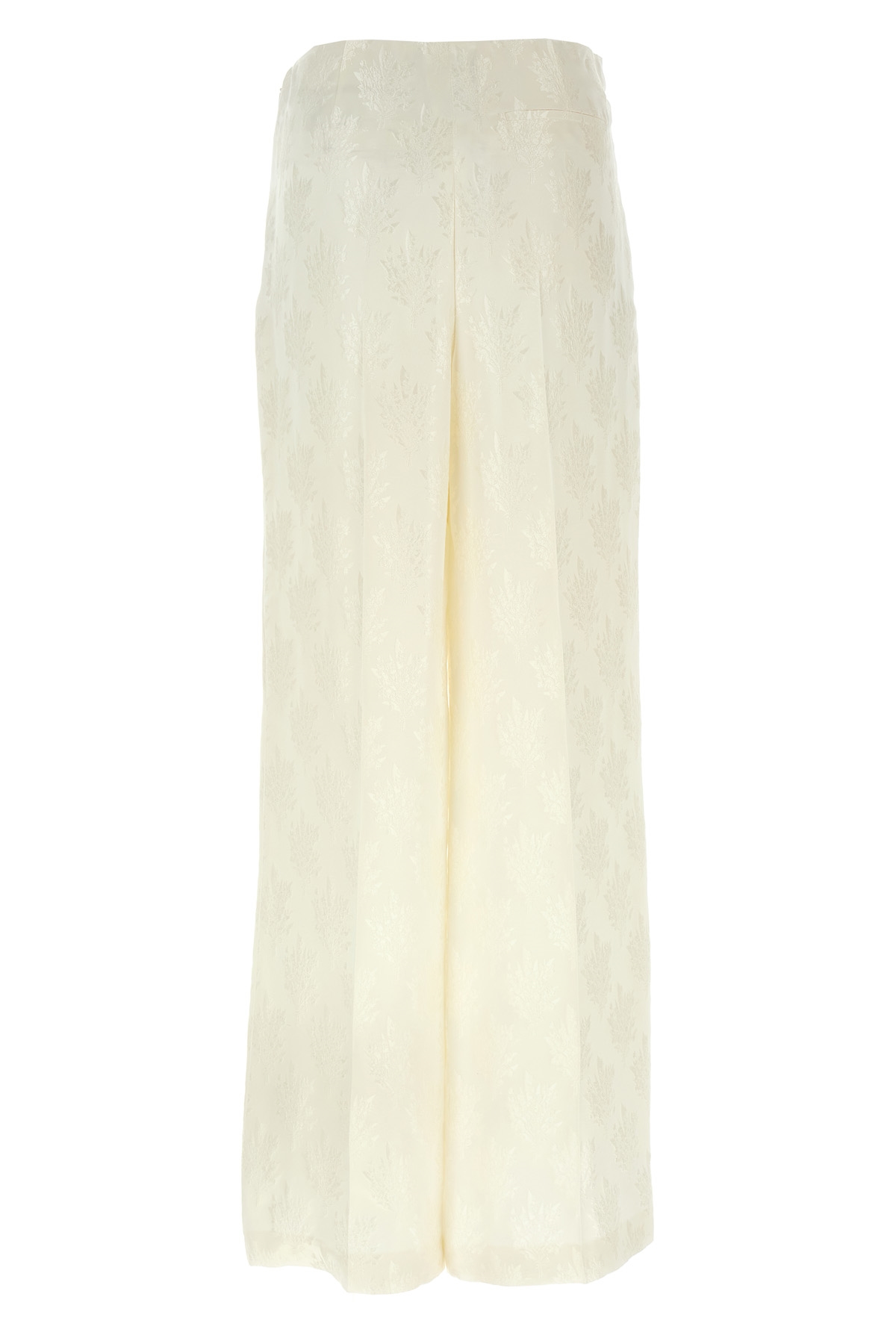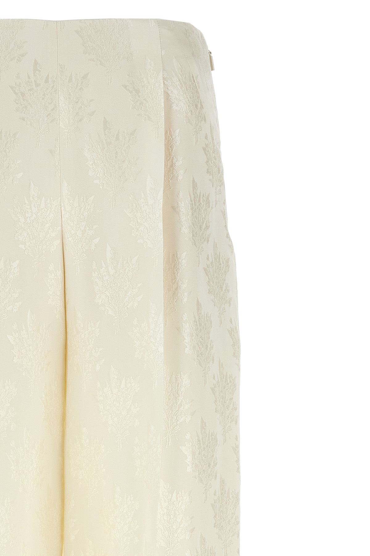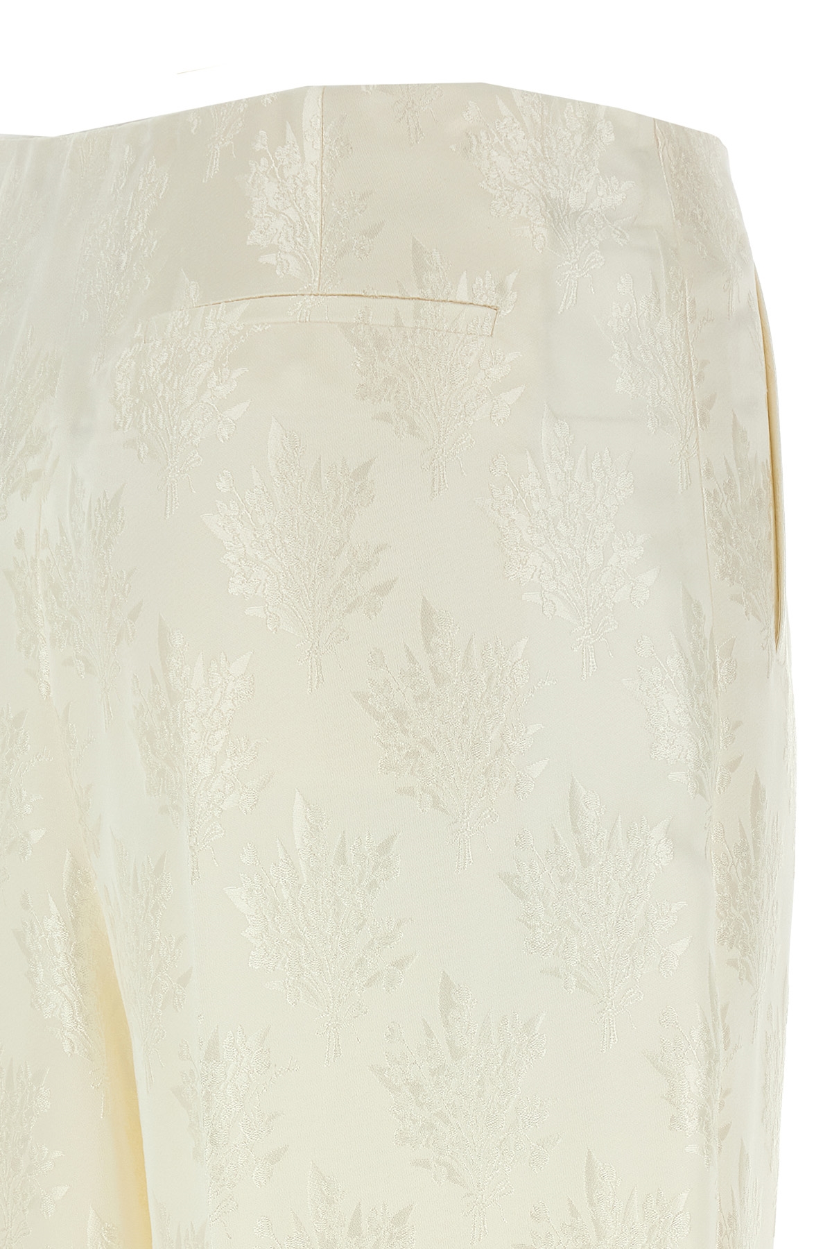 Jacquard silk pants with floral bouquet pattern, pajama model, pleats and stretched pleat, straight leg, pockets, side zip closure.