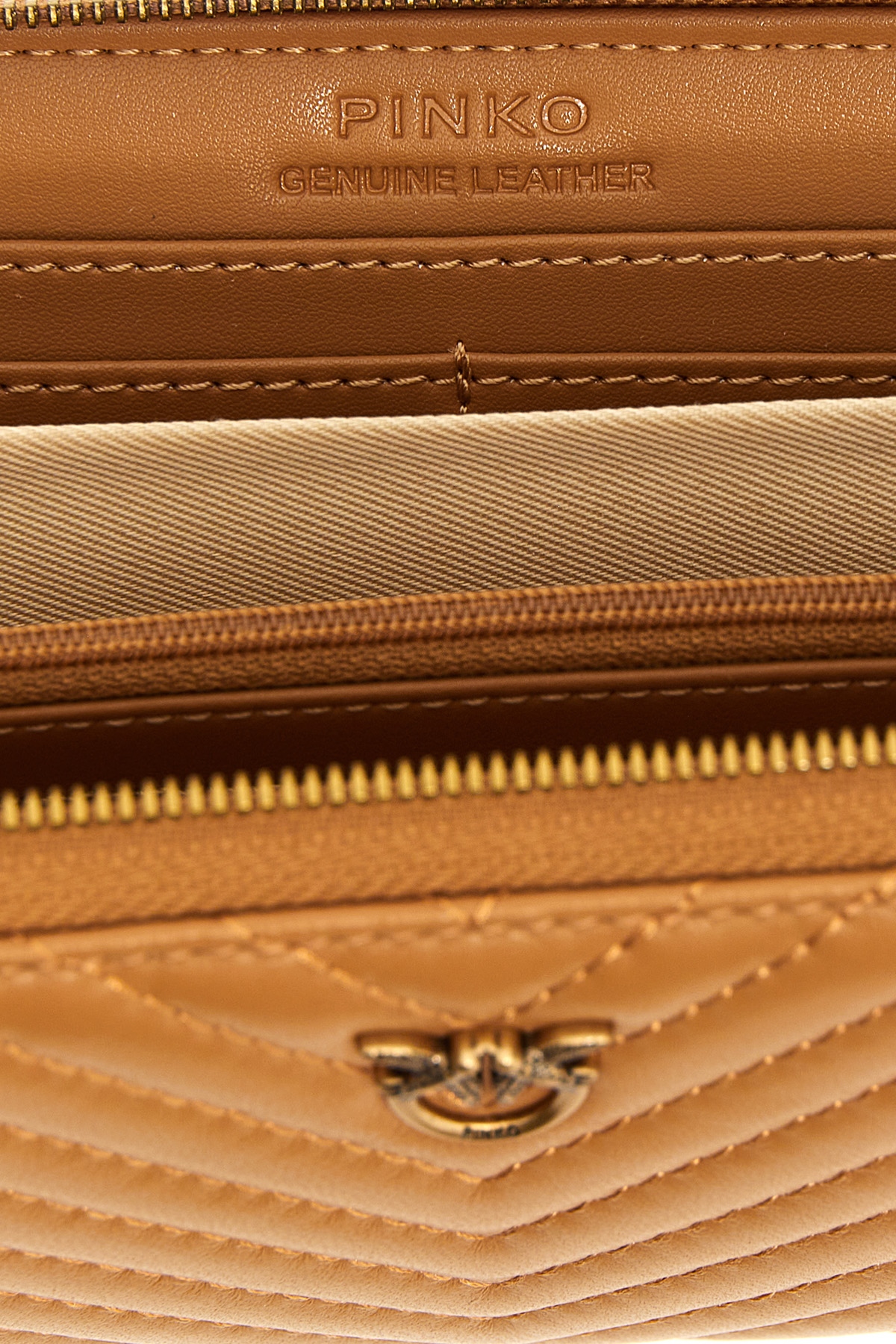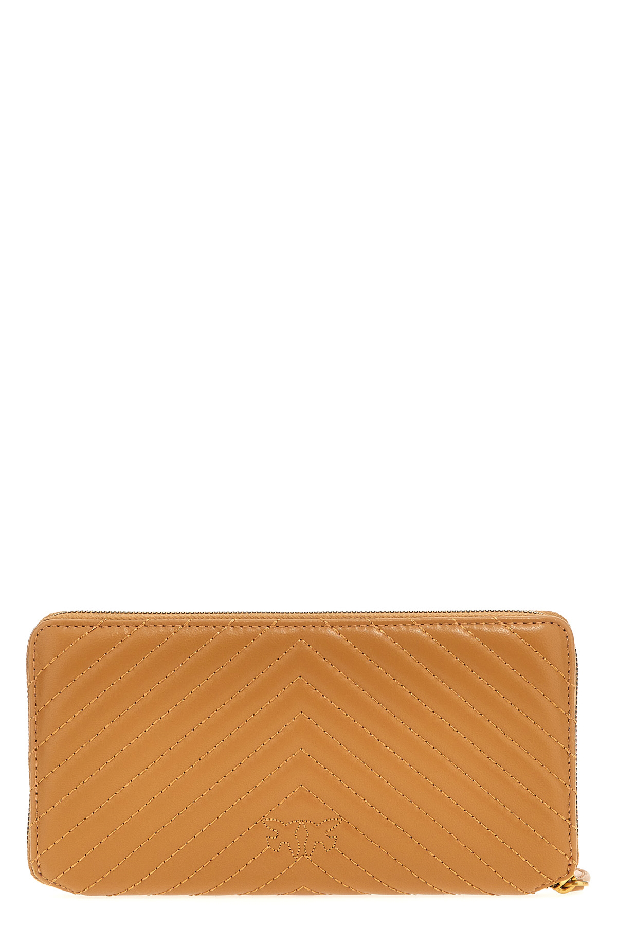 'Ryder' wallet in chevron nappa leather, metal front logo, zip closure.