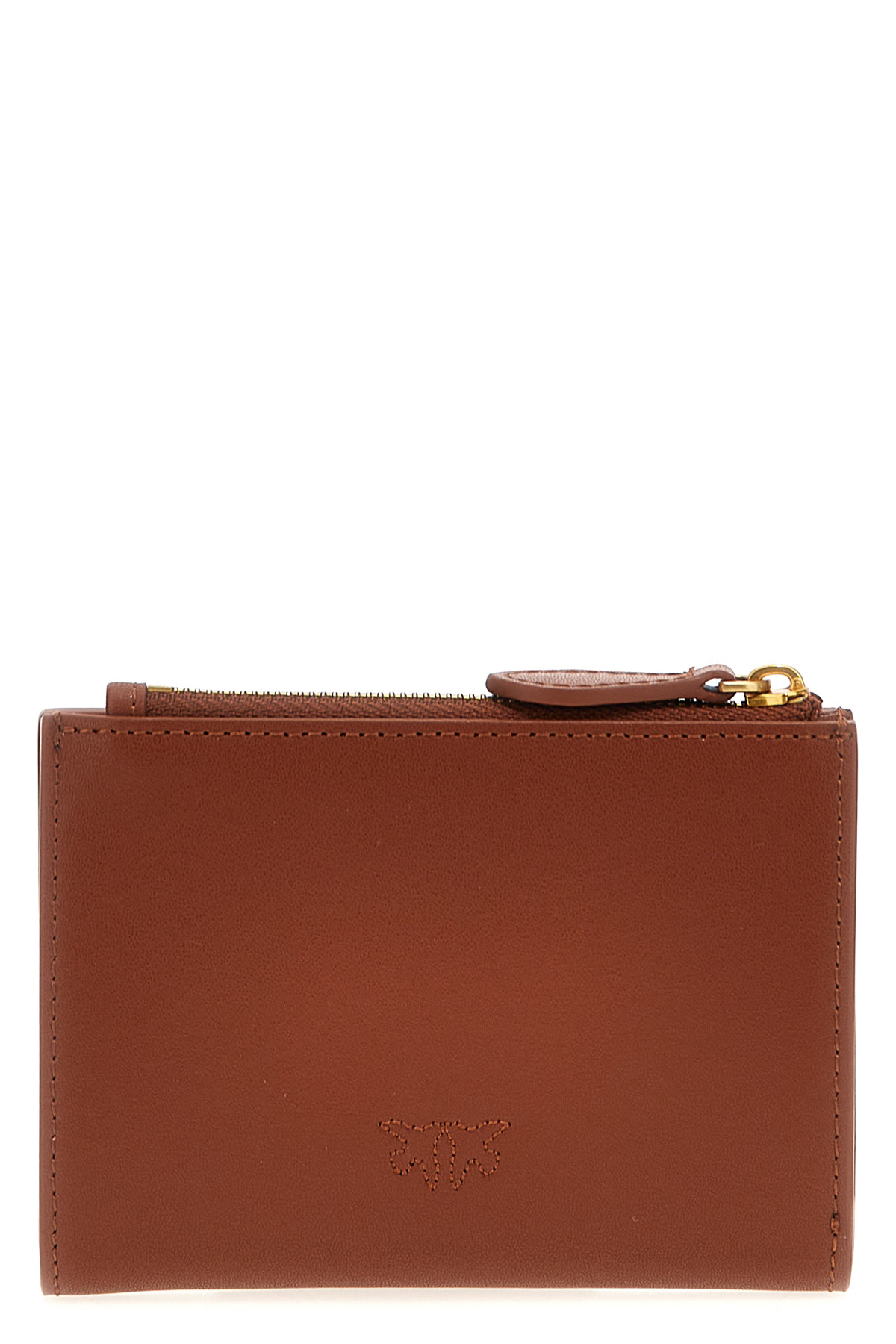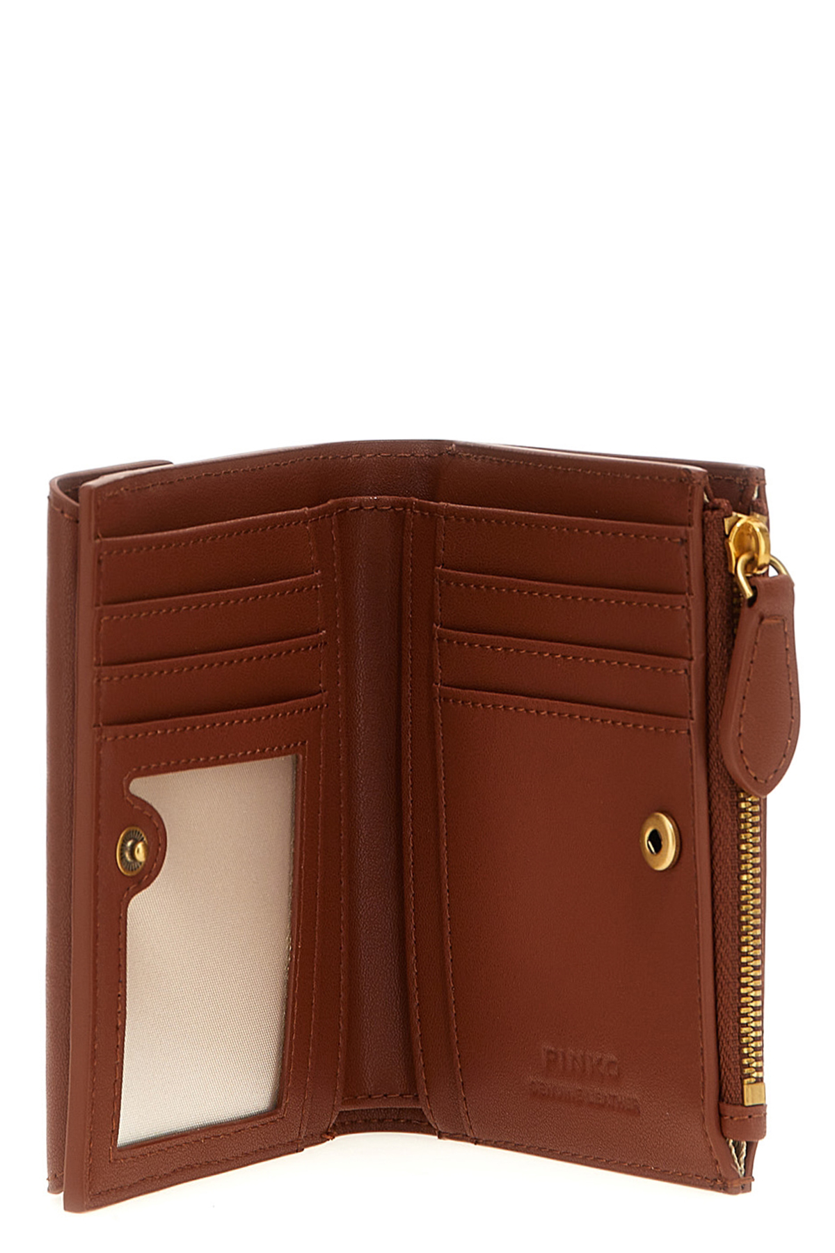 'Compact' silk leather wallet with snap button closure, back coin wallet with zip closure, front pocket with flap closure with snap button and metal logo.