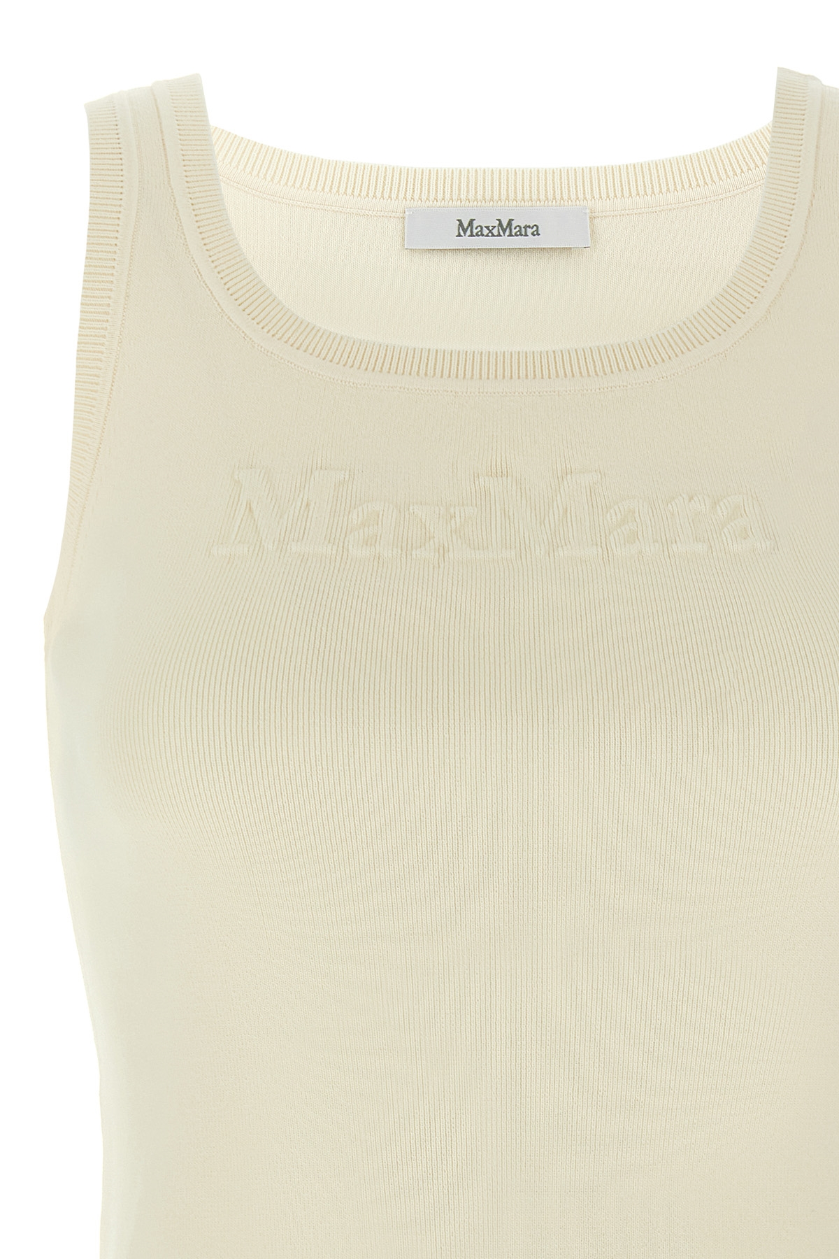 'Pentola' top in crepe viscose yarn with embossed logo print on the front, wide round neckline.