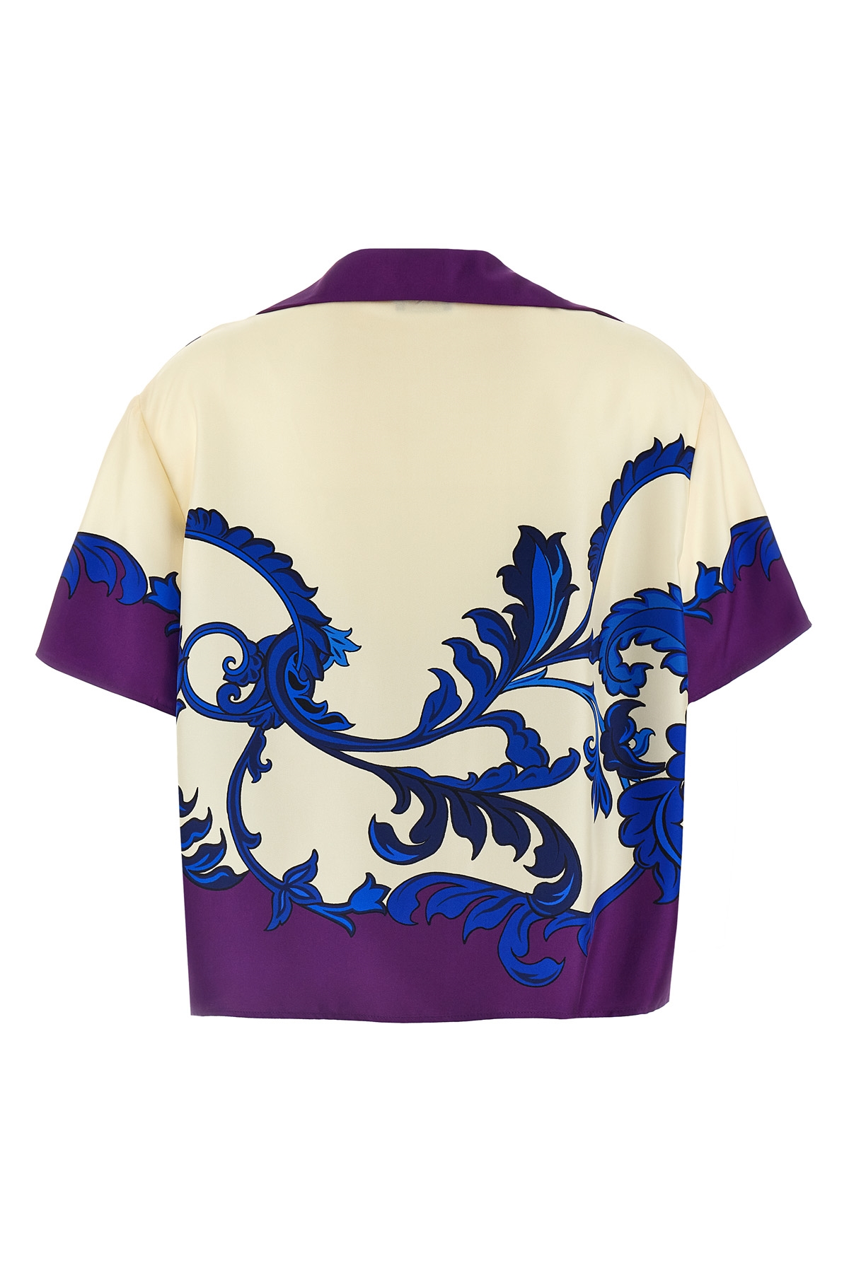 Paisley maxi print silk shirt, Crop model, front button closure, short sleeves.
