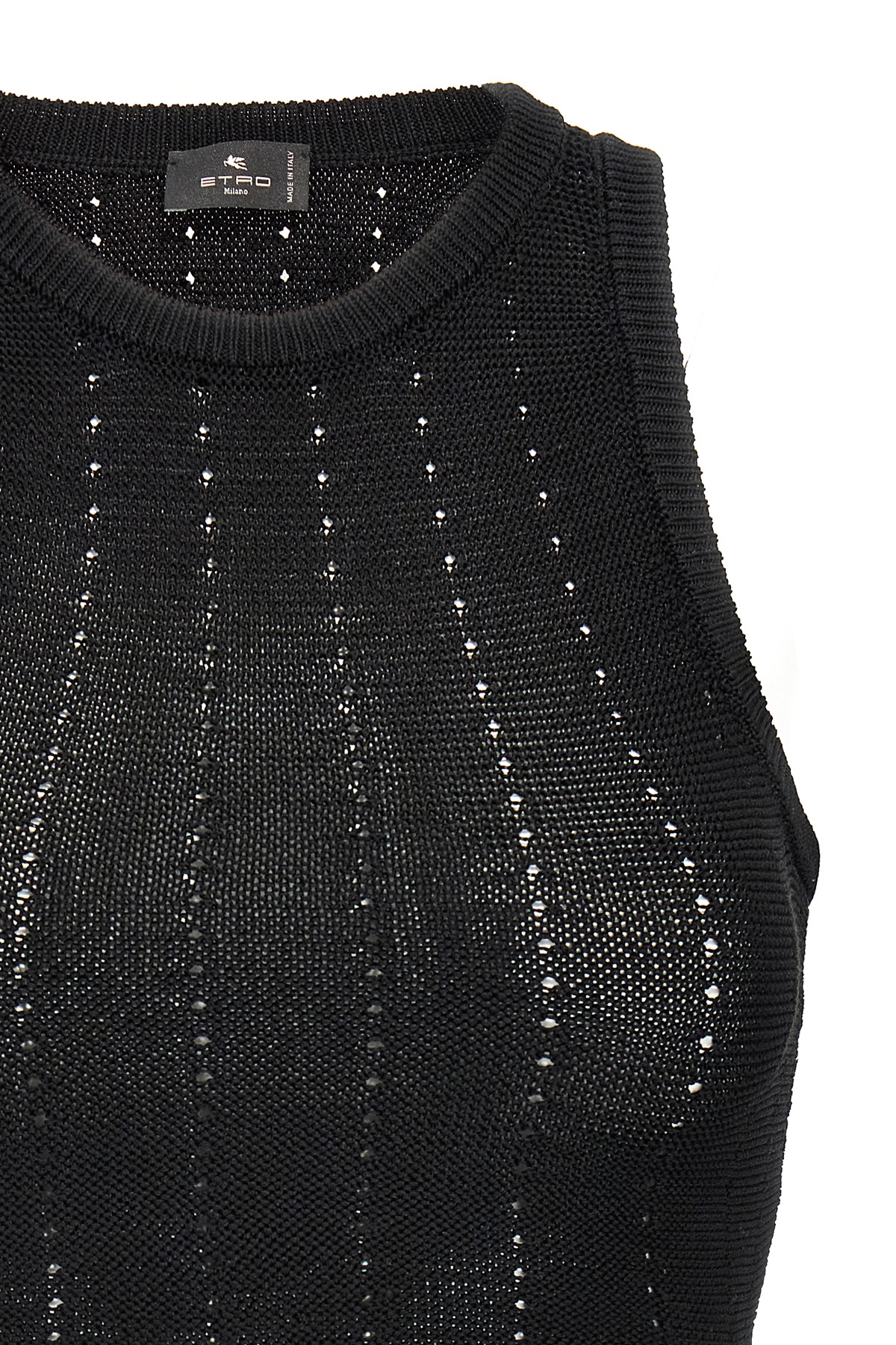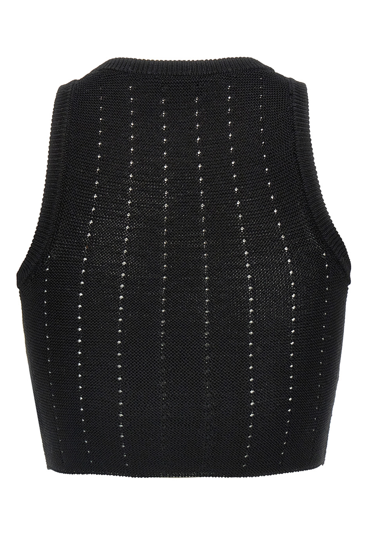 Top in cotton blend knit and viscose punched vertical pattern, crop model, round neckline.