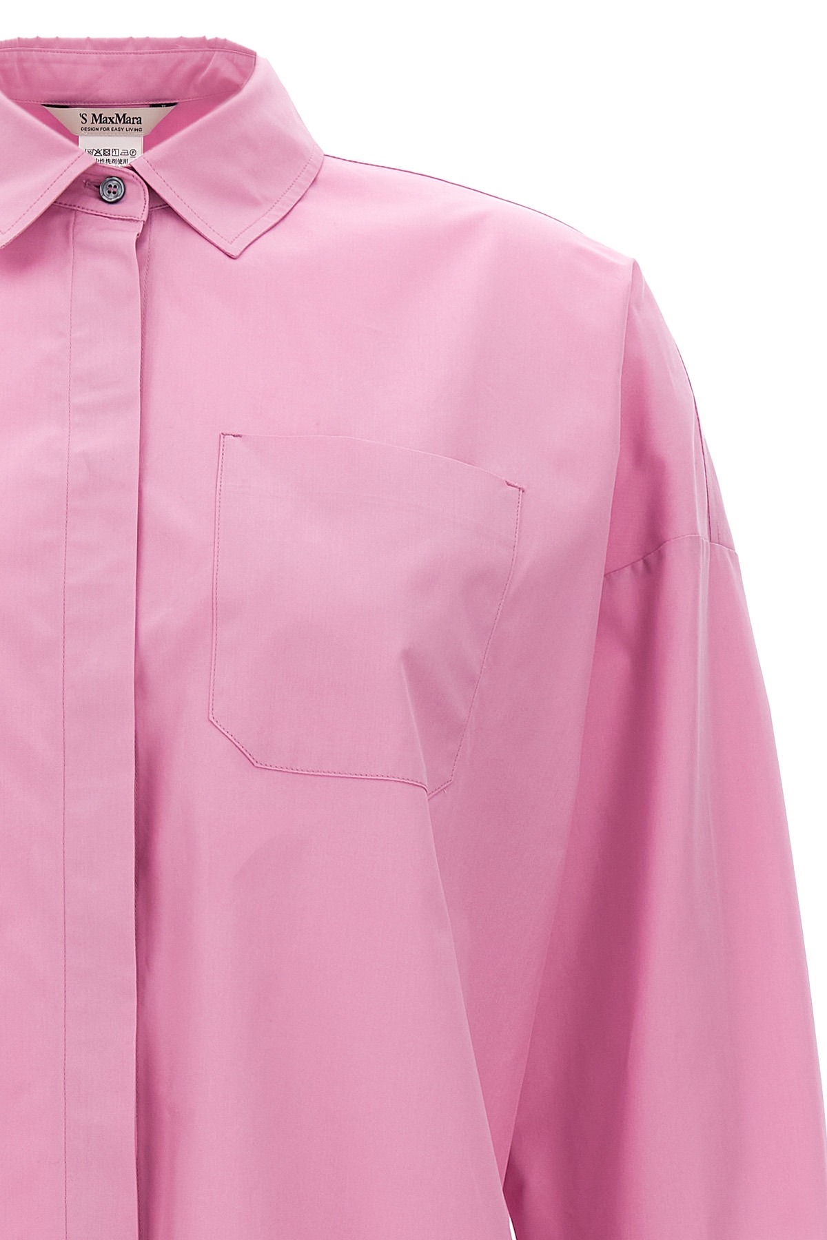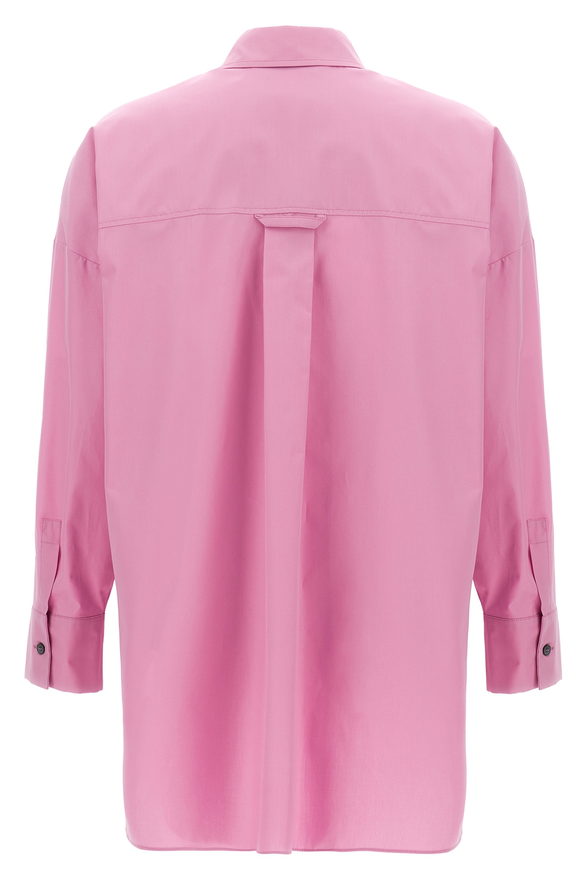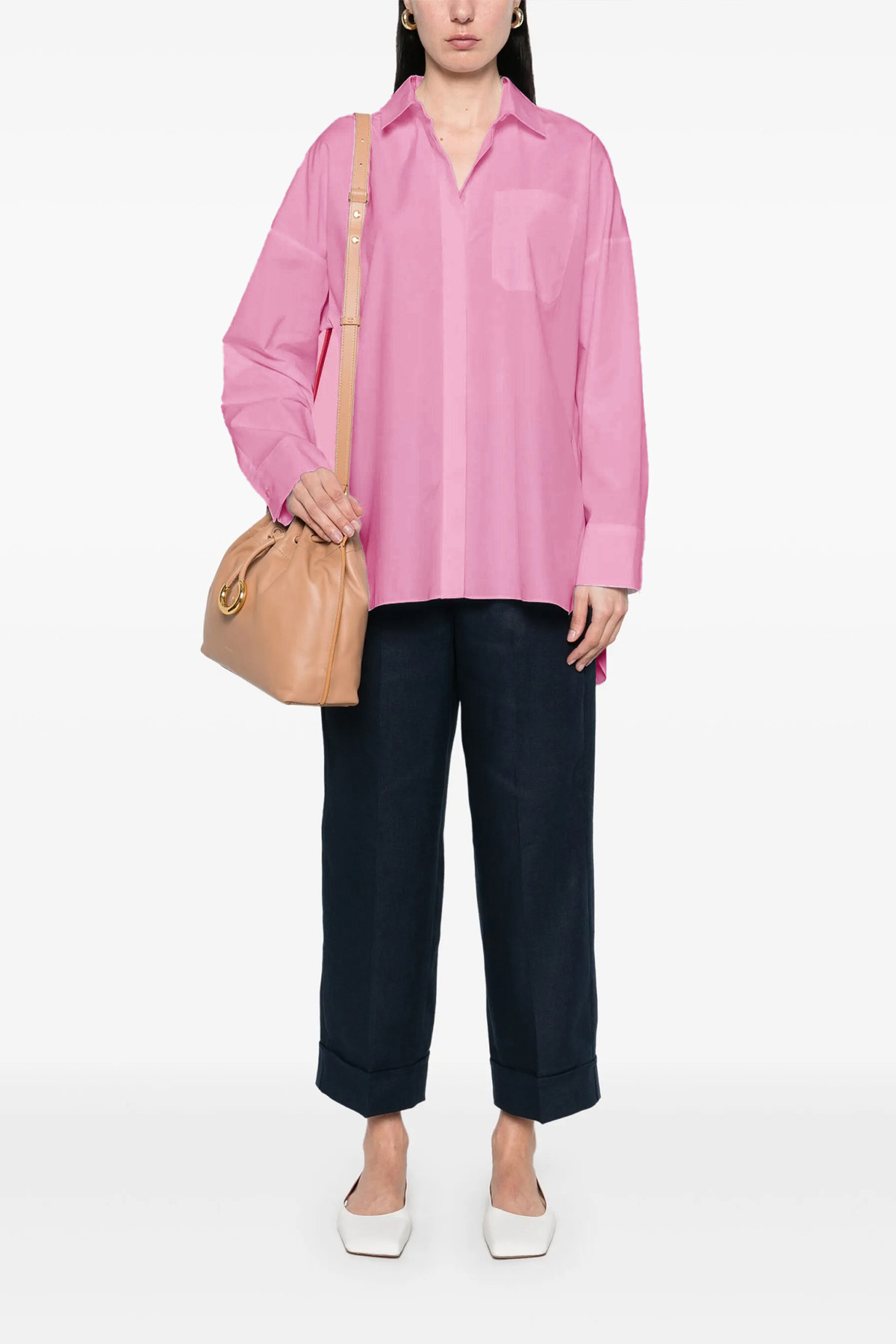 'Gerona' pure cotton poplin shirt, straight-line model, front button closure, breast pocket, long sleeves with cuffs and dropped shoulder, asymmetric hem, side slits.
