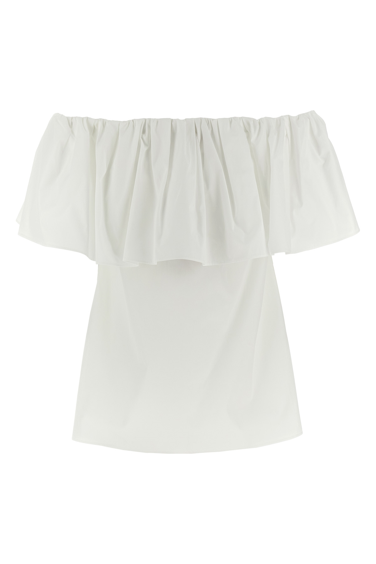 'Peccati' pure cotton poplin top, off-the-shoulder model with A-line silhouette with flounce, elastic top, pockets.