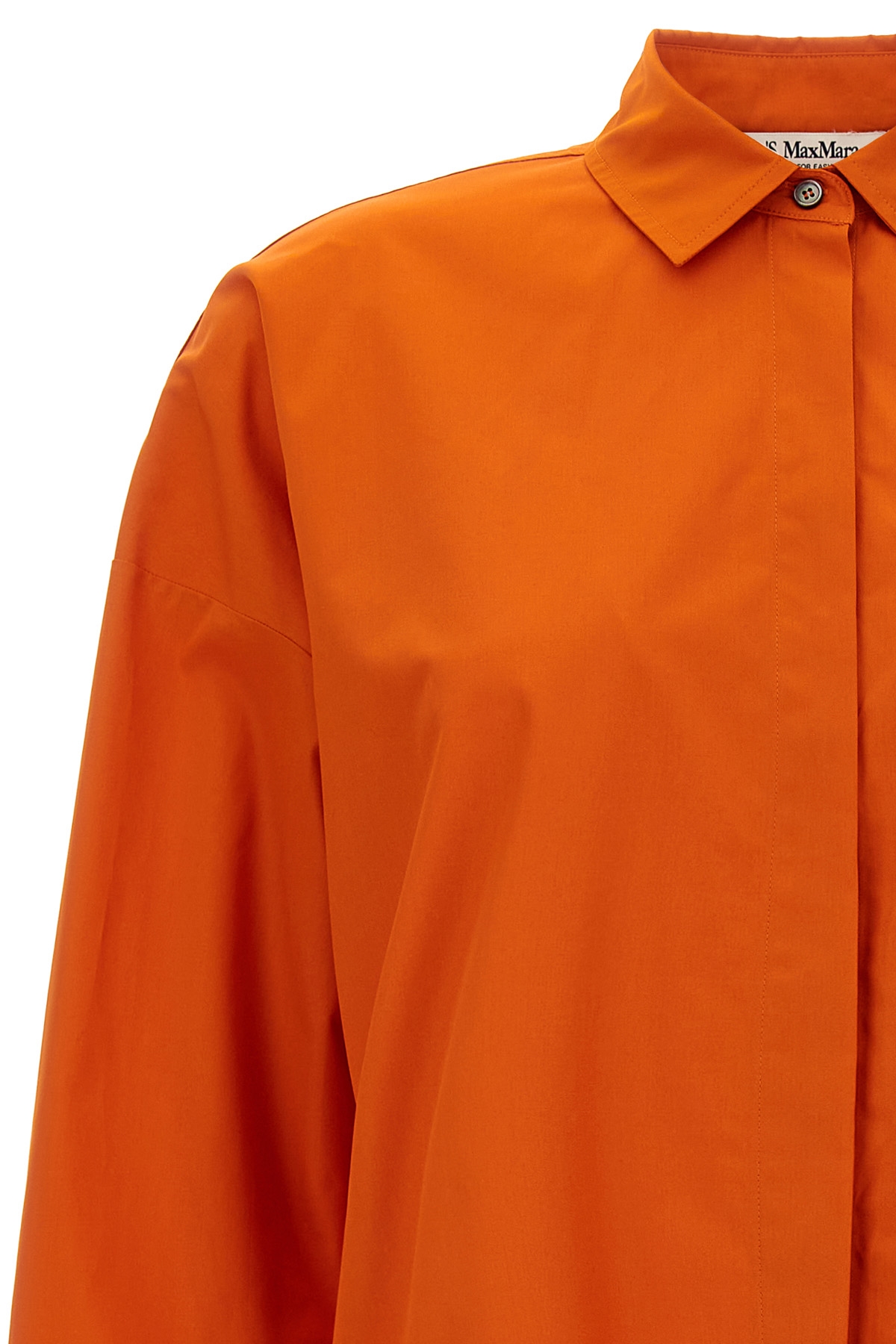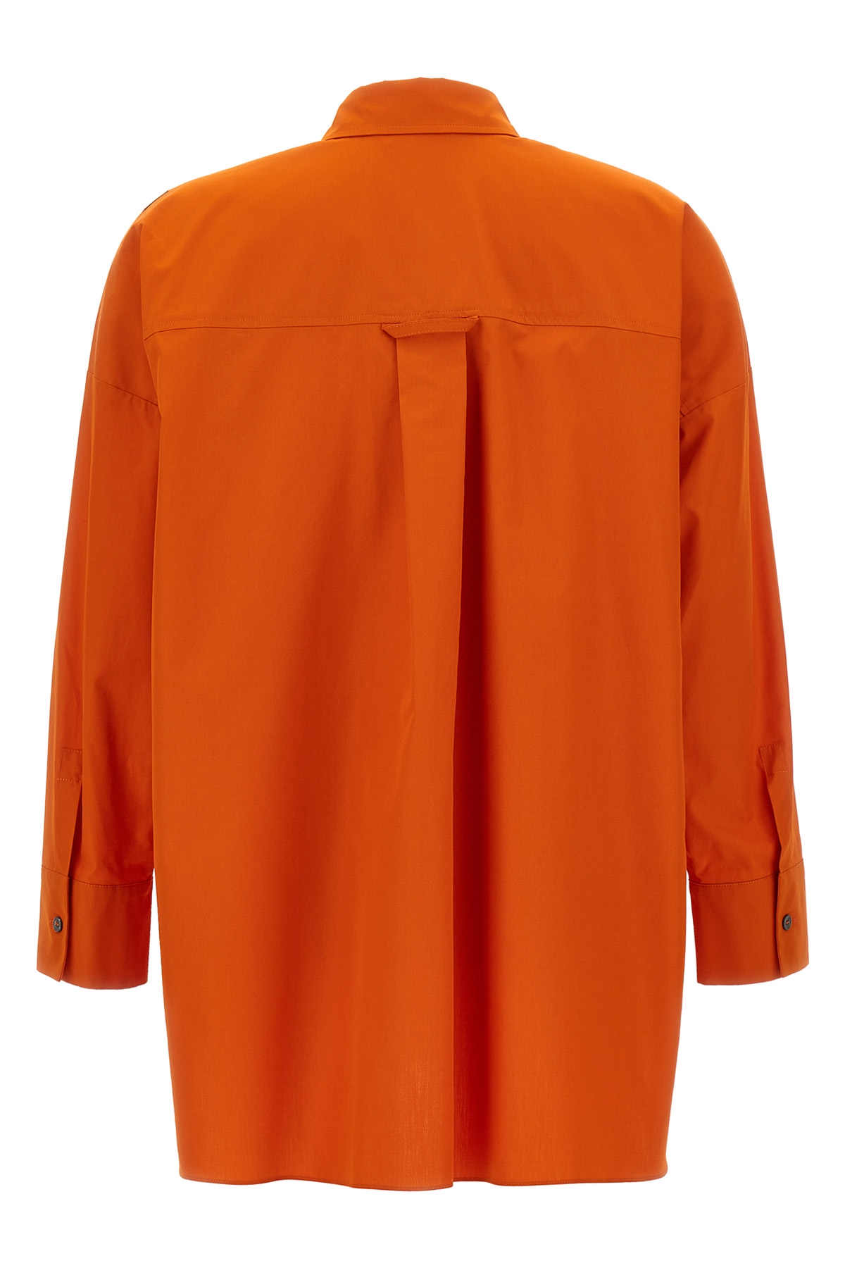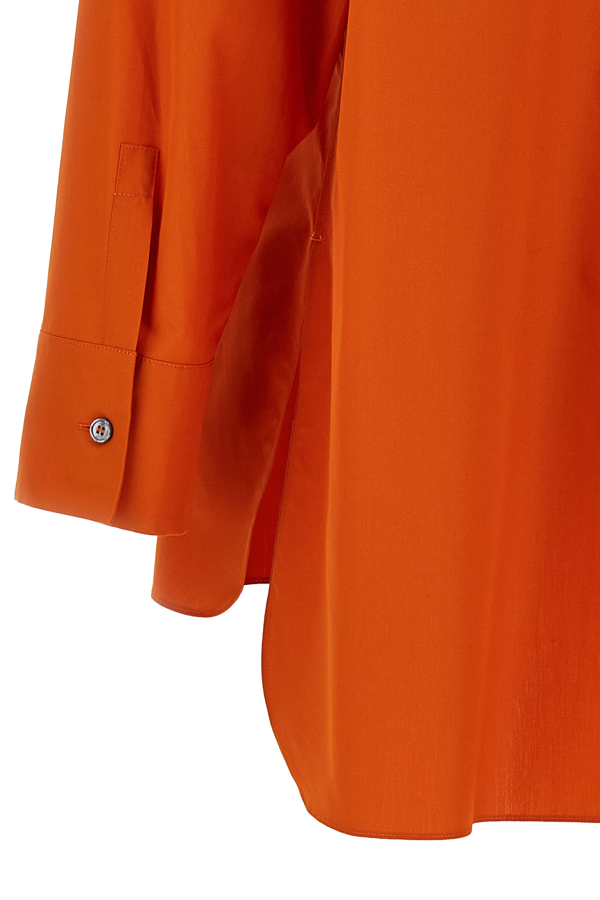 'Gerona' pure cotton poplin shirt, straight-line model, front button closure, breast pocket, long sleeves with cuffs and dropped shoulder, asymmetric hem, side slits.