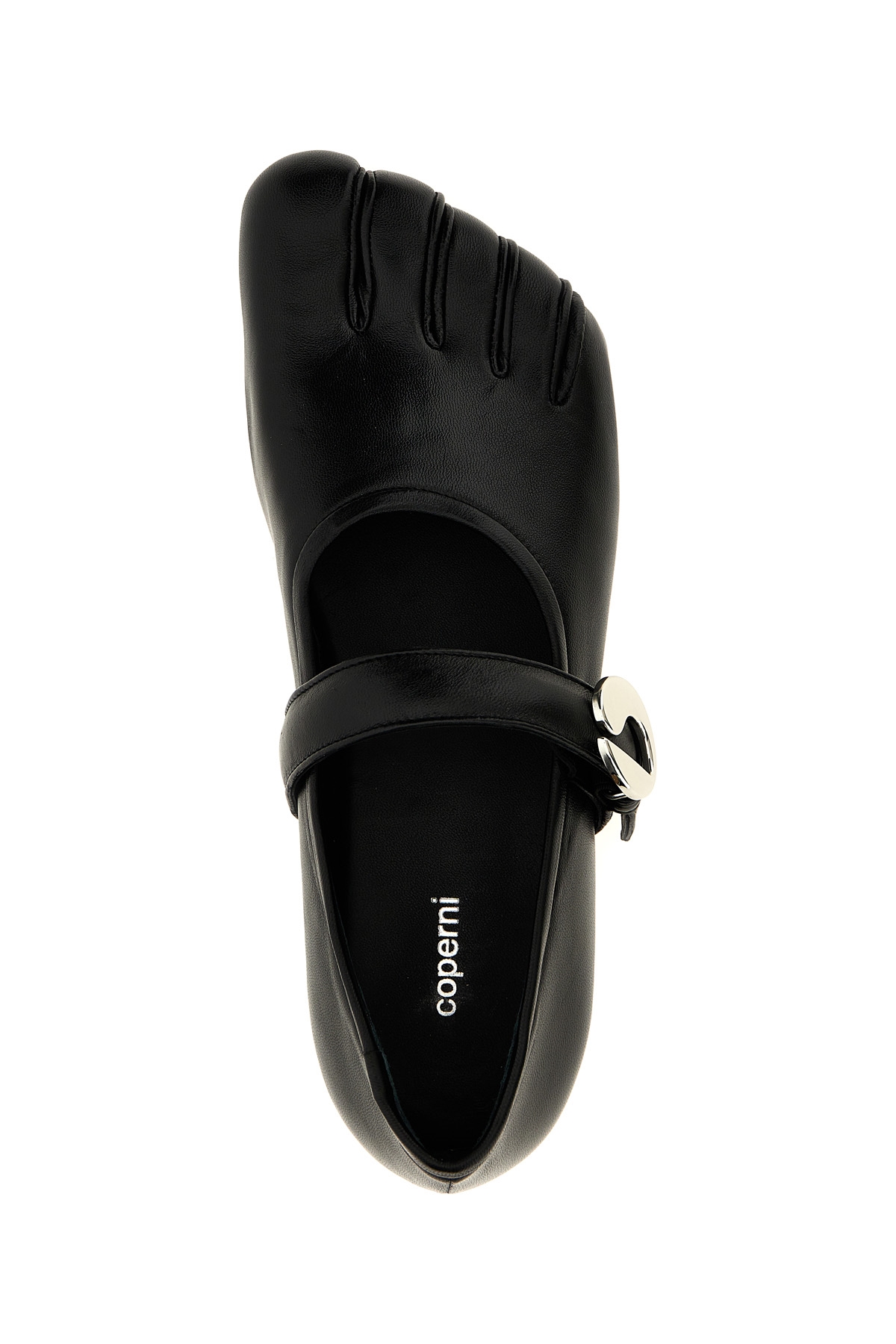 'Five-Toe' leather ballet flats with sculpted toe in the shape of a foot with separate toes inside, adjustable strap with metal logo buckle, leather sole.
