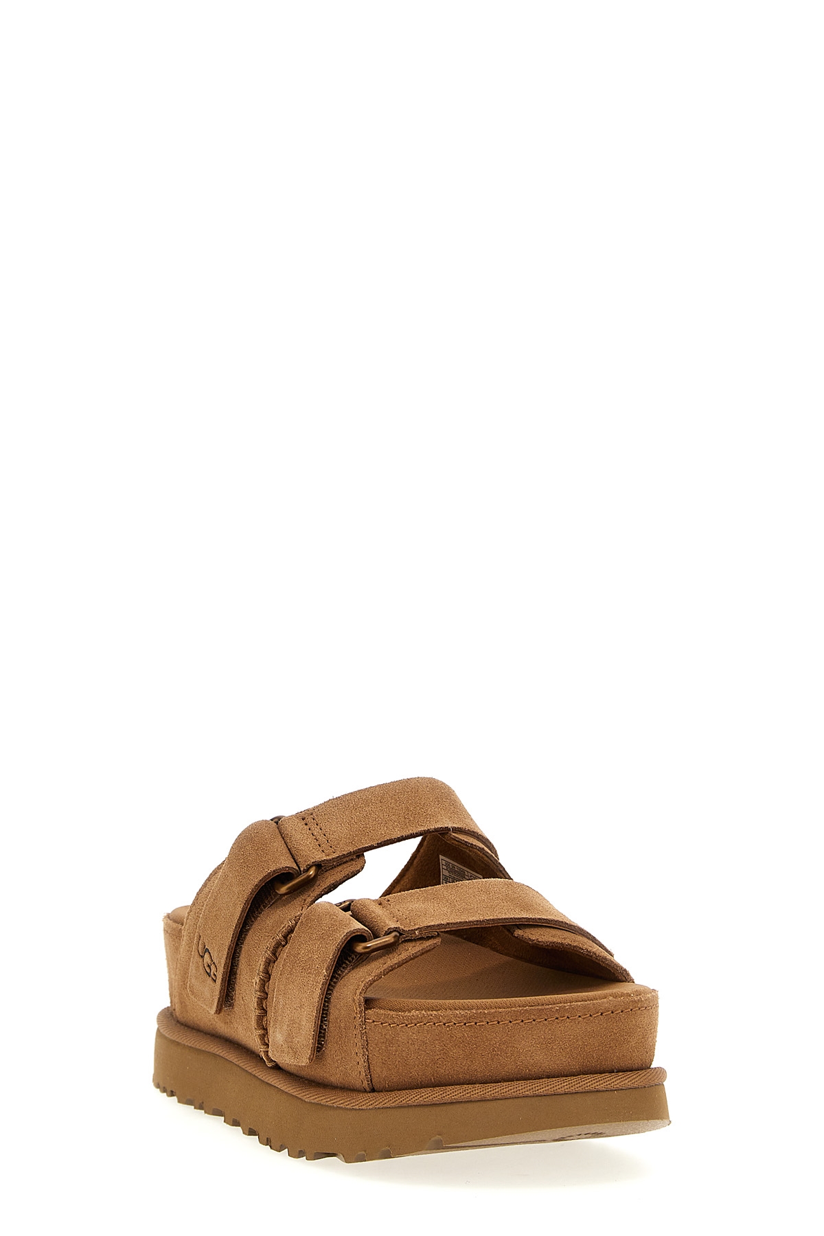 'Goldenstar Hi' leather slides, adjustable straps, contoured EVA inner sole, midsole and platform sole in EVA sugar cane.