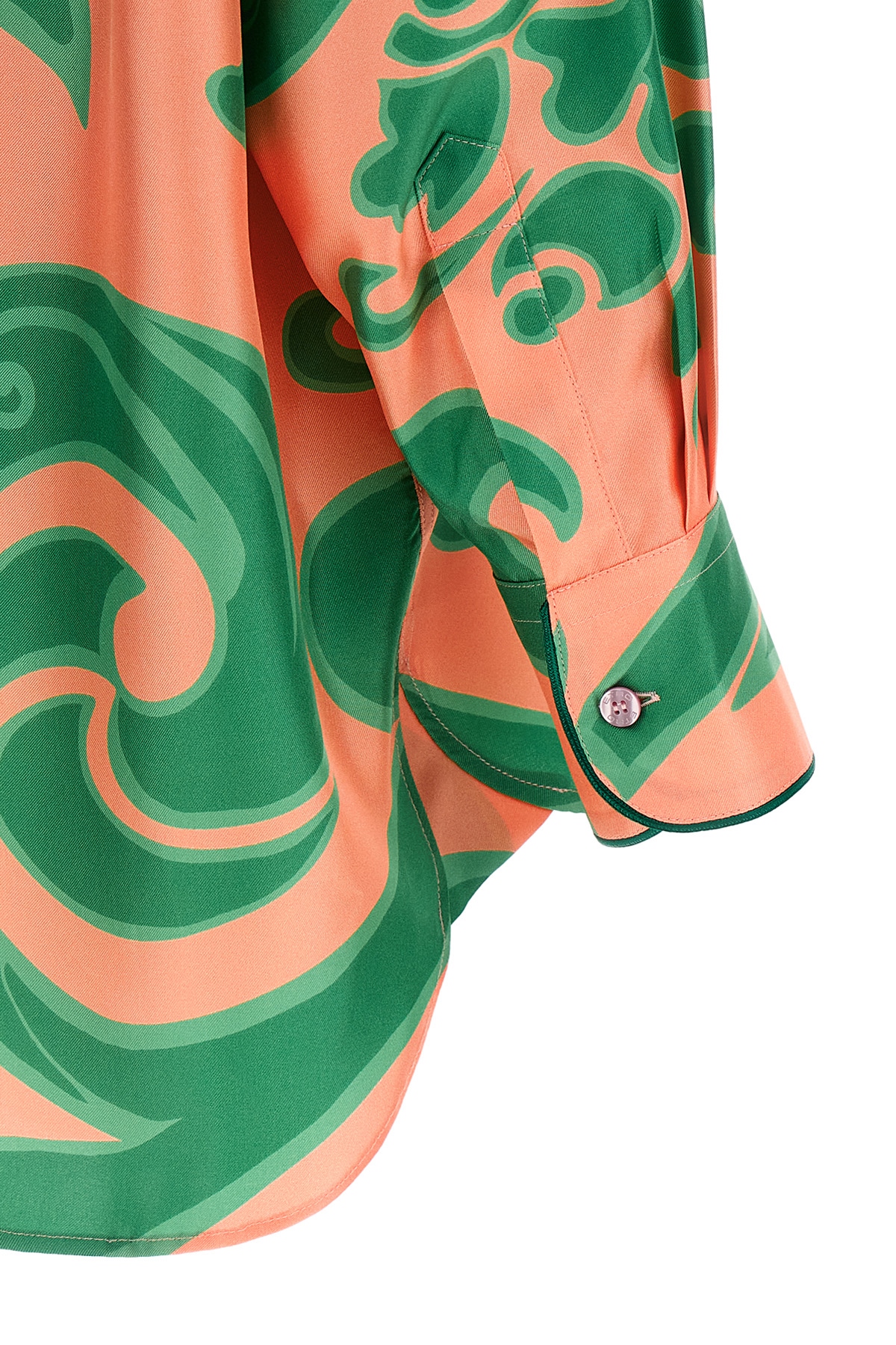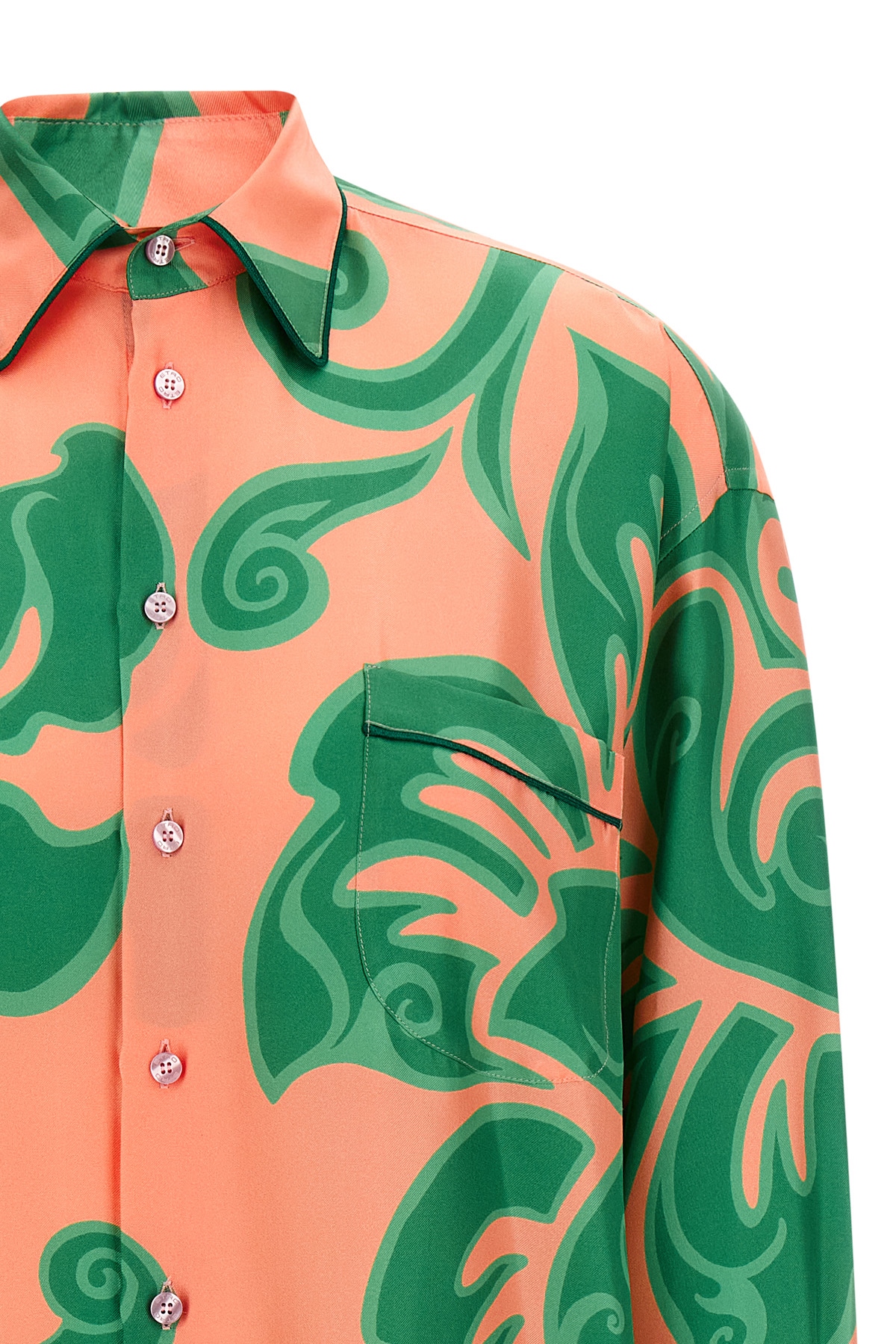Silk shirt with floral print, pajama model, pocket, button closure, long sleeves with cuffs and dropped shoulders.