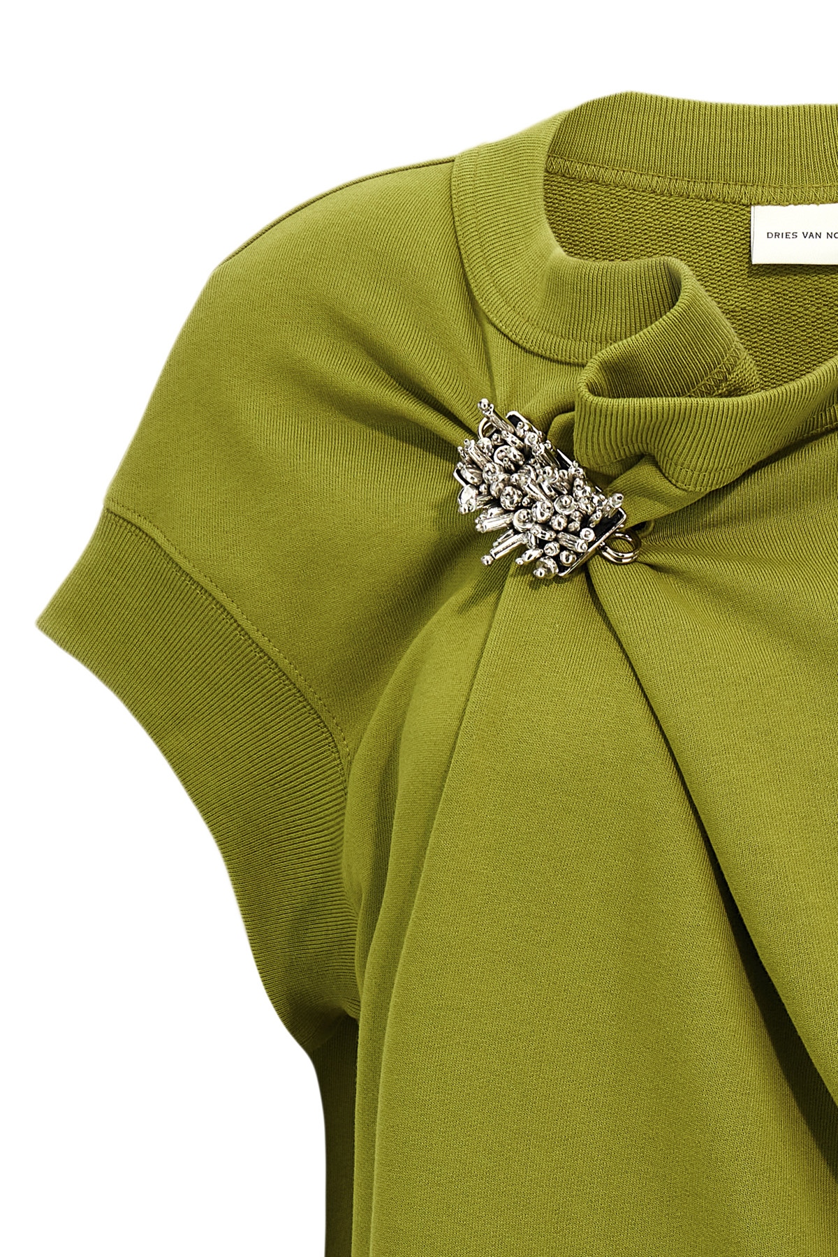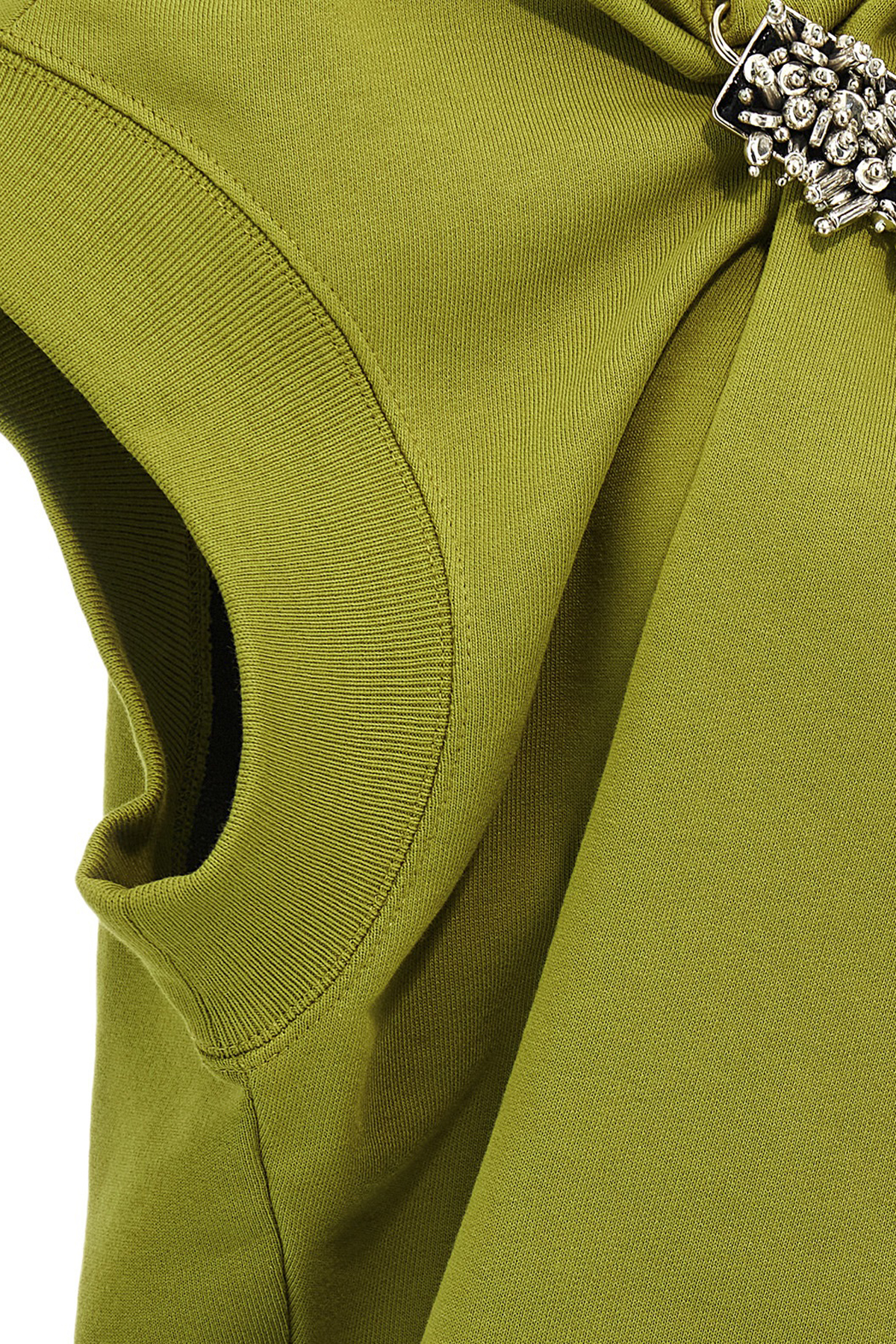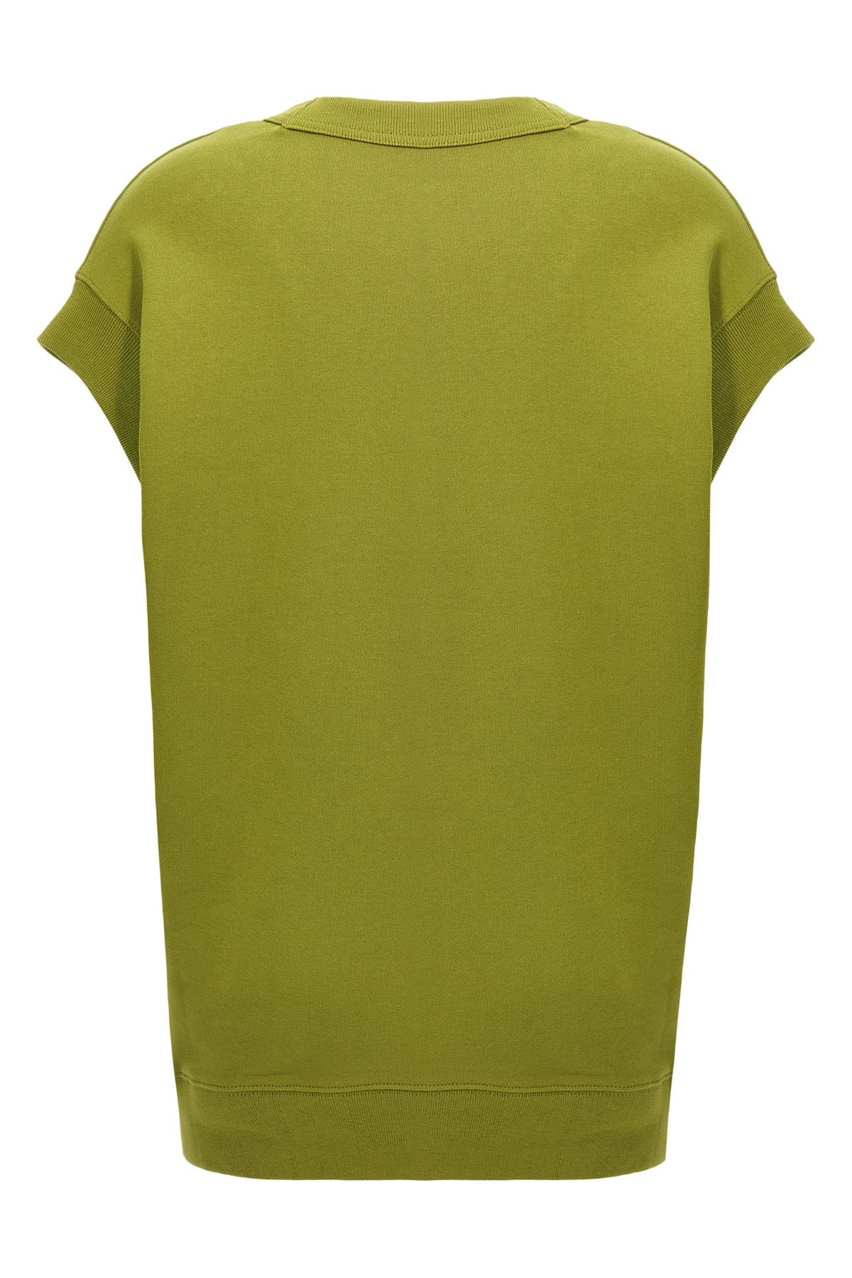 'Hatties Bis' sweatshirt in brushed cotton, front curled with removable pin, crewneck, sleeveless with dropped shoulders.