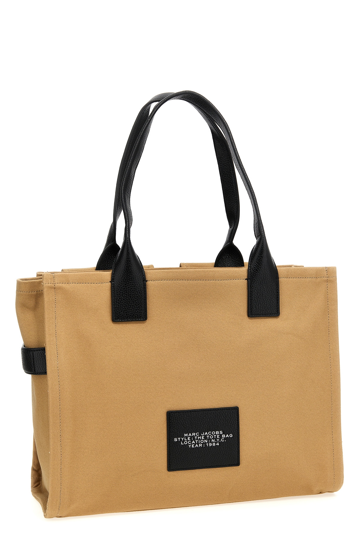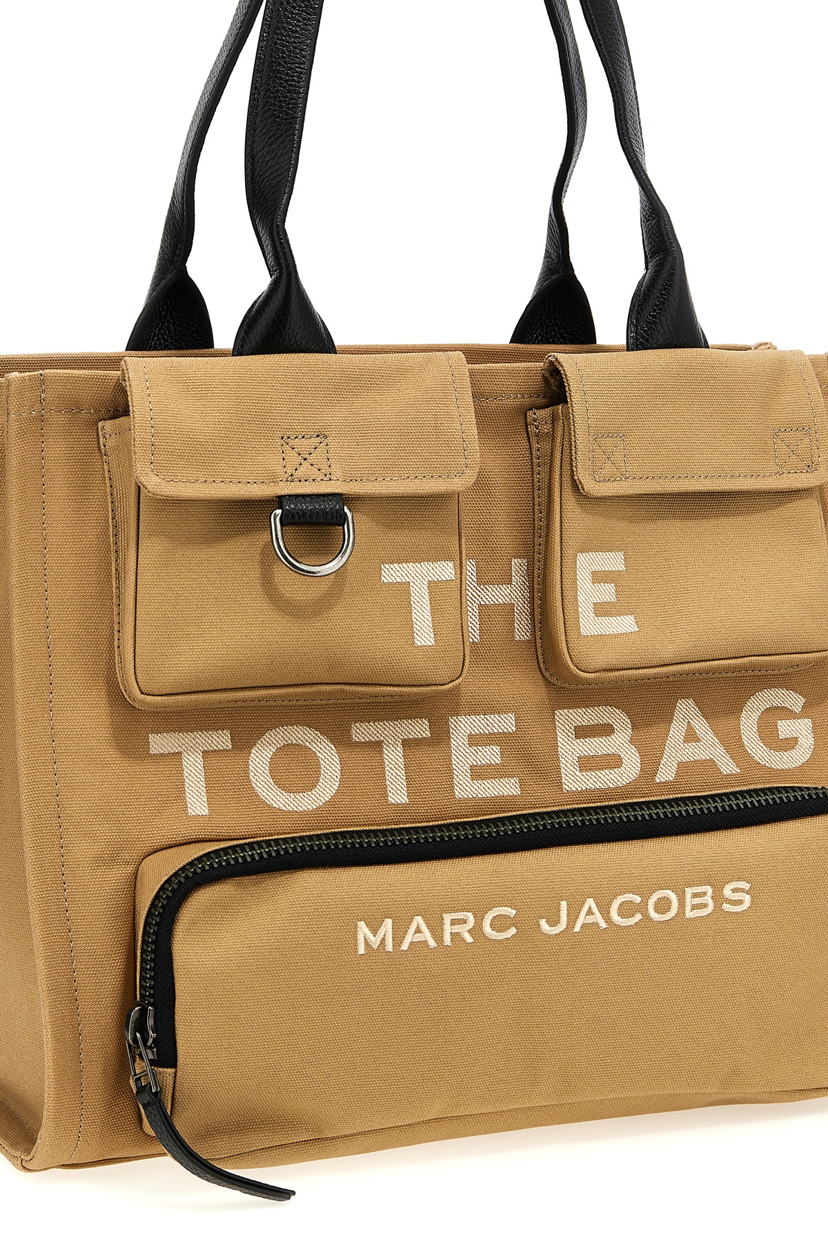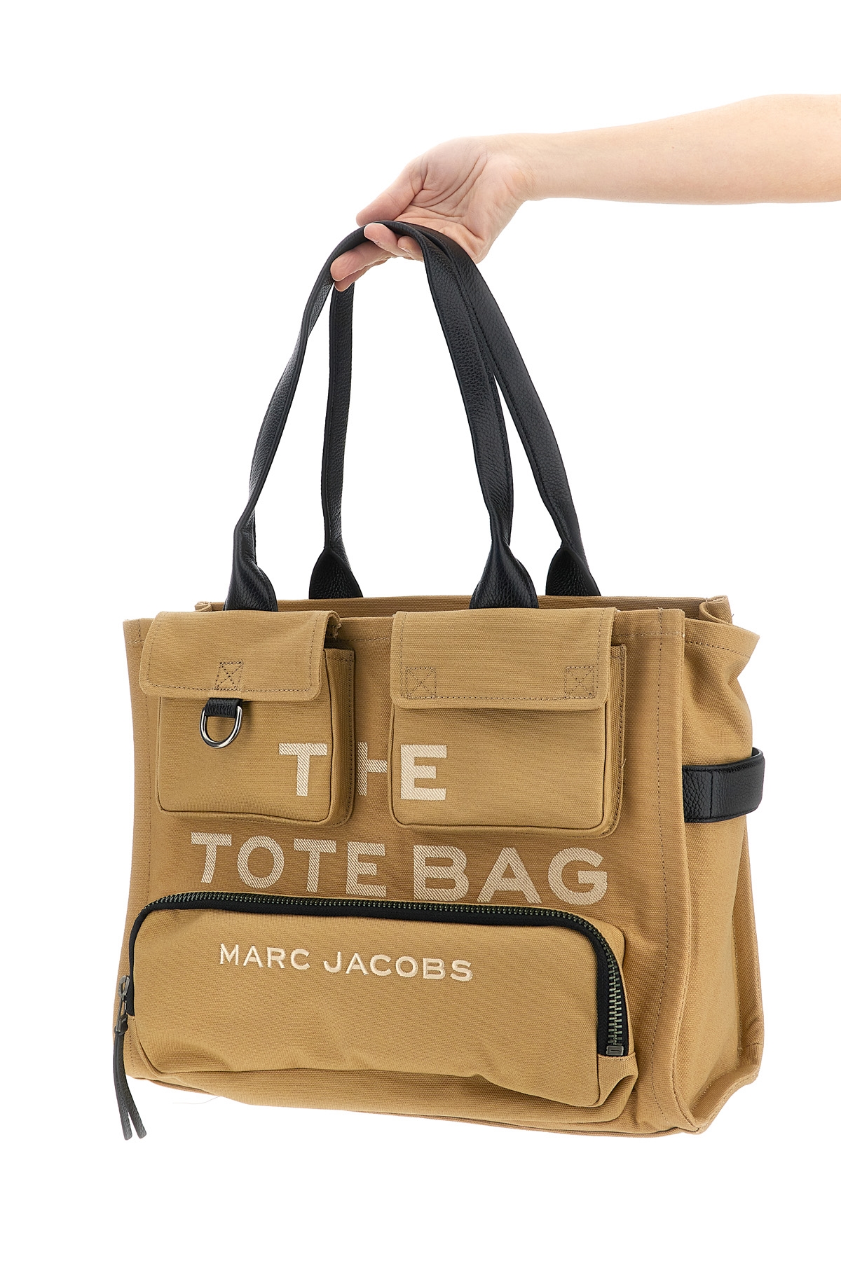 'The Cargo Canvas Large Tote' textured cotton canvas shopping bag with logo embroidery and front cargo pockets, double fixed handle, zip closure, 8oz canvas lining. The canvas canvas is bound to fade and relax over time.