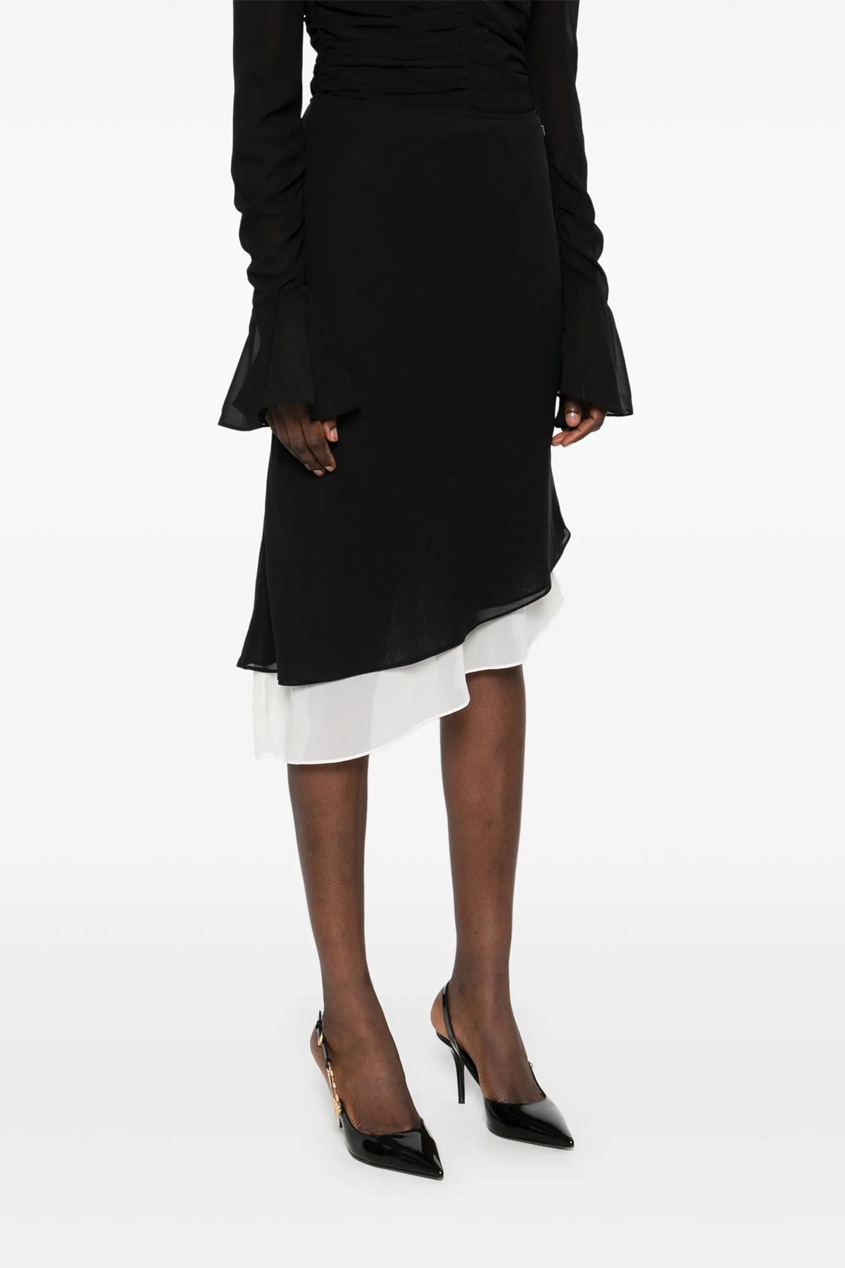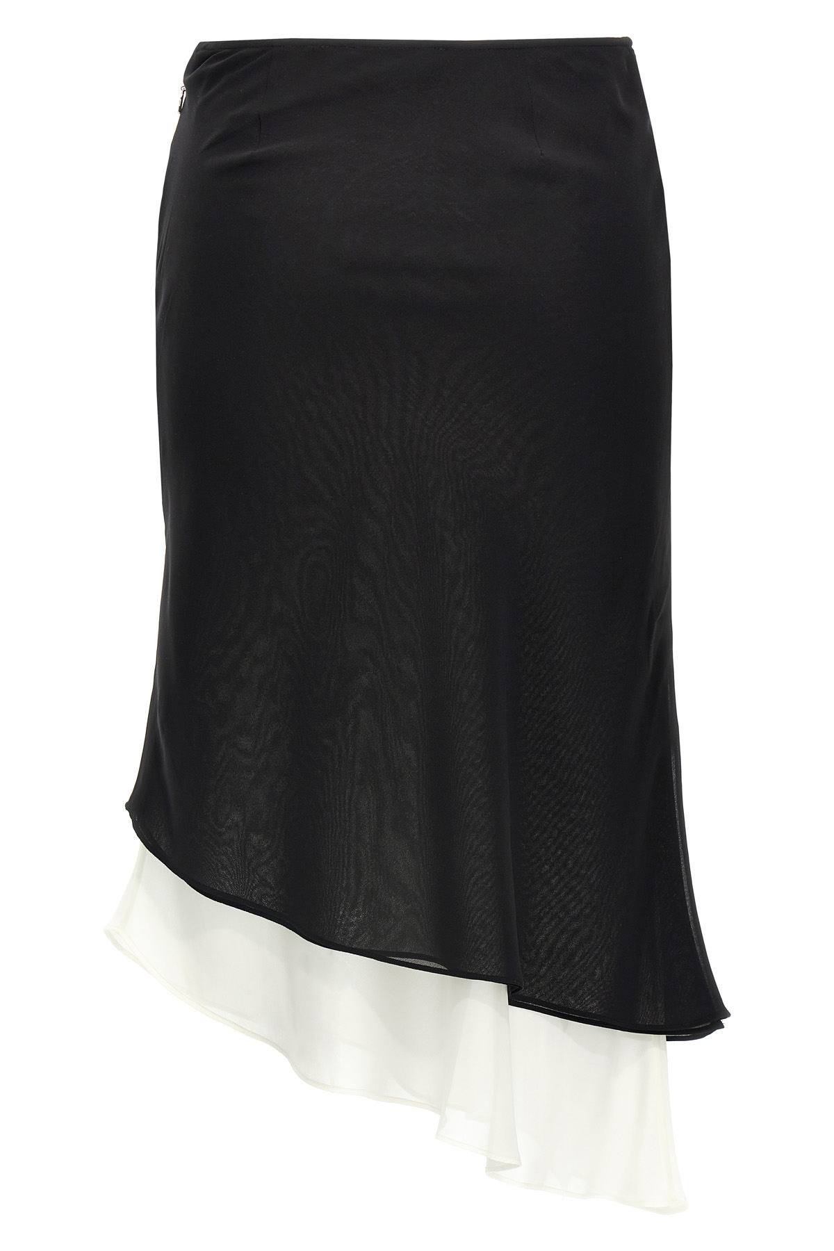 'Two Layer' skirt in chiffon with double layer overlapping, asymmetrical hem, side zip closure. SUSTAINABLE: Product made from recycled polyester.