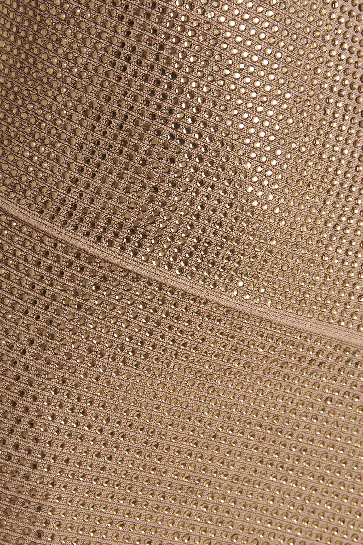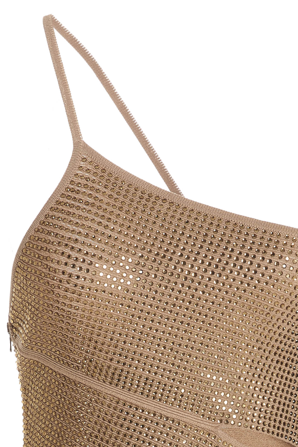 One shoulder knit dress withll-over sequin appliques, zip closure, cut-out detail and an asymmetric hem.ymmetrical hemline.