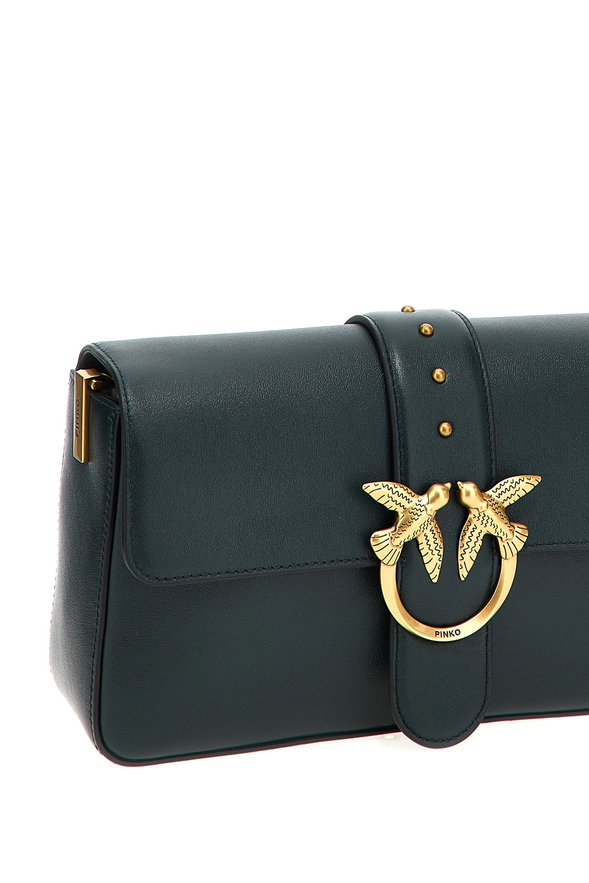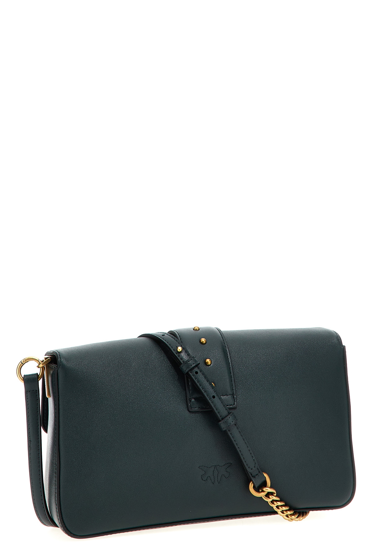 'Love One Classic' leather crossbody bag, magnetic flap closure with front metal logo applique, removable shoulder strap.