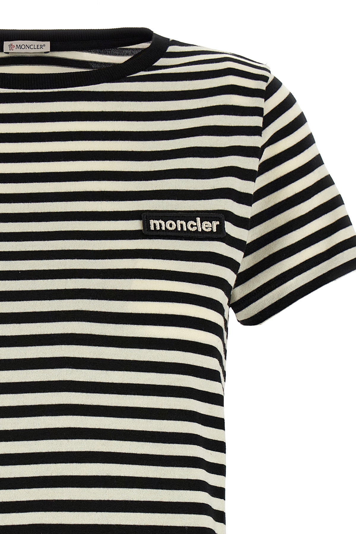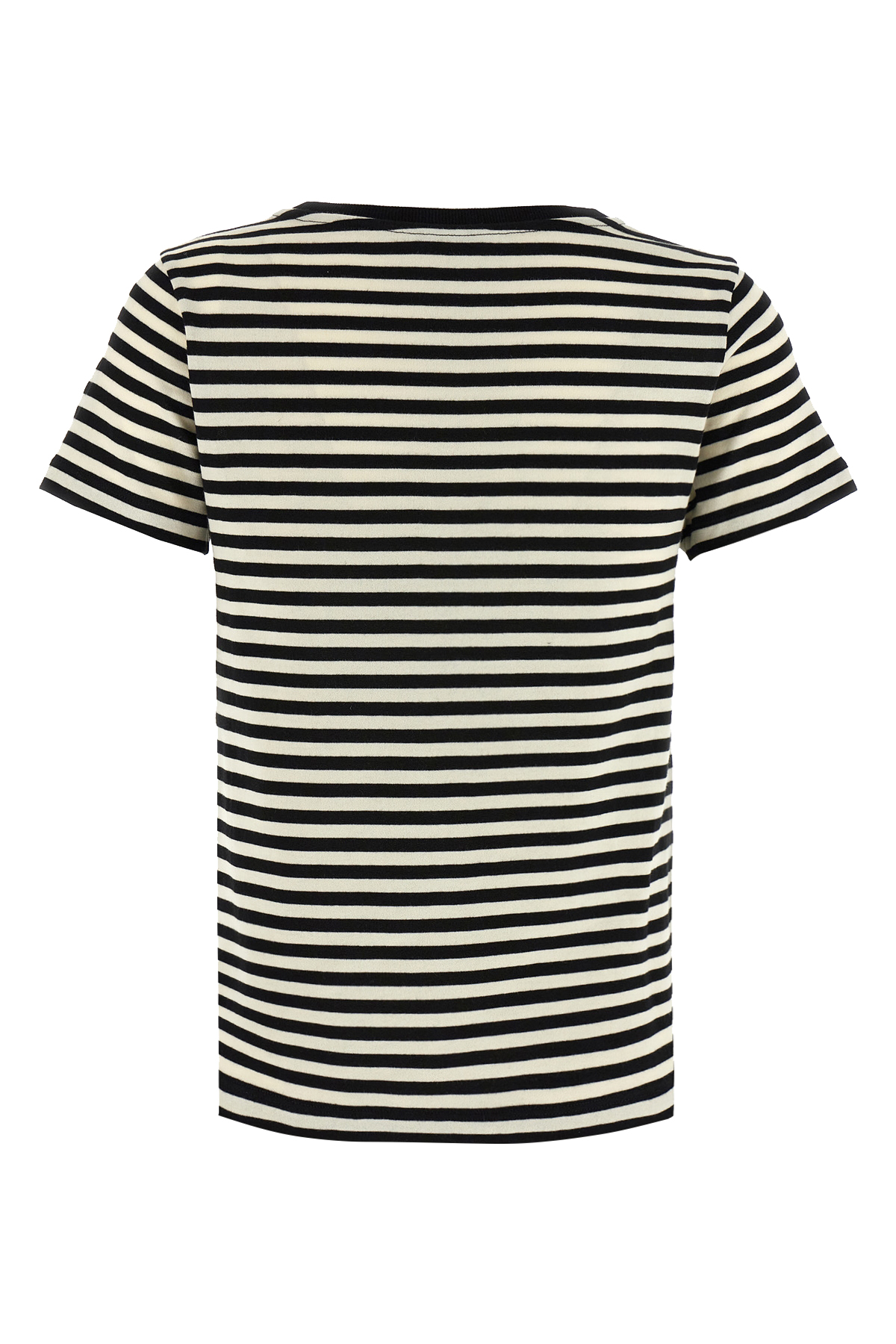 Striped cotton t-shirt, with front logo patch, crew neck, short sleeves.