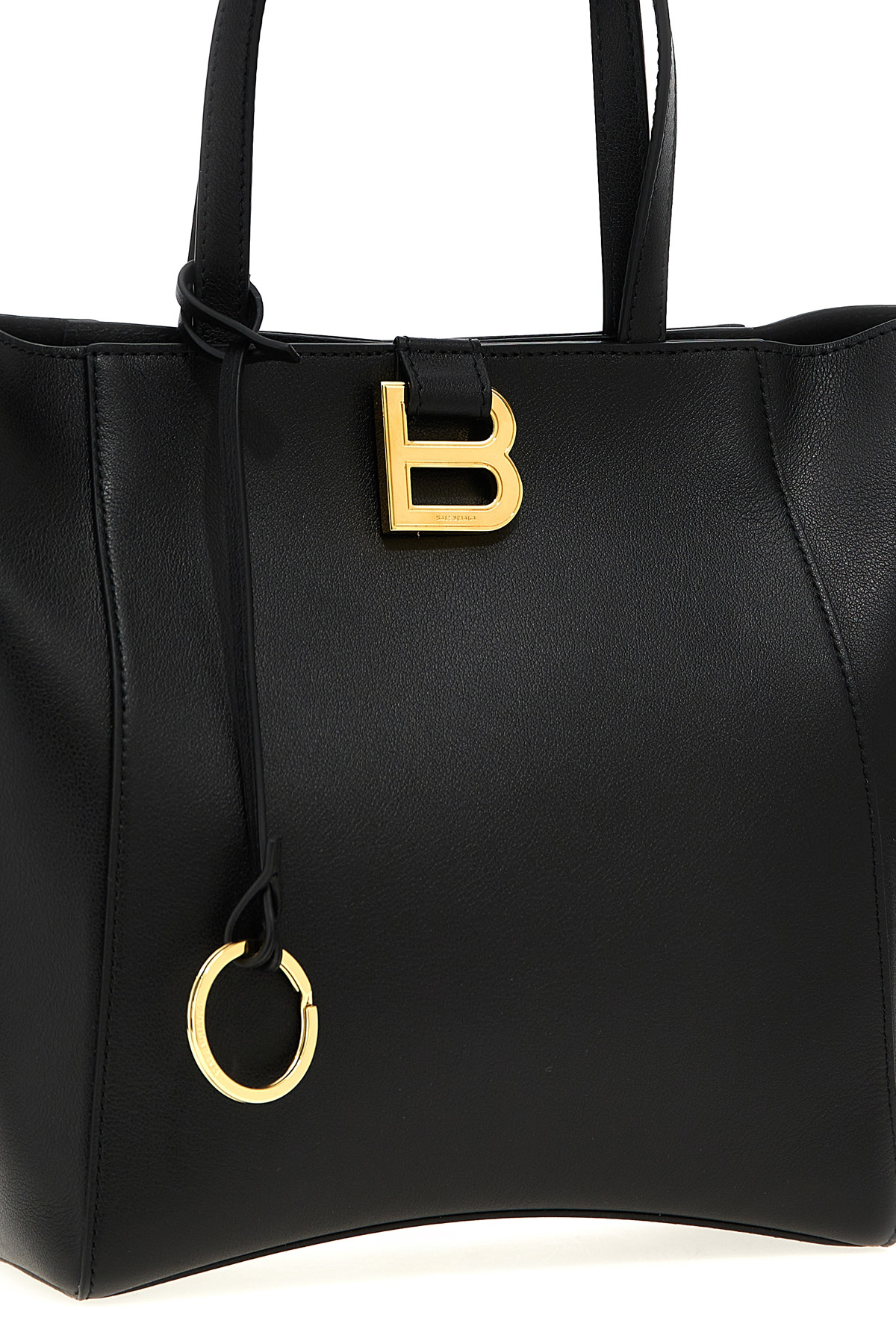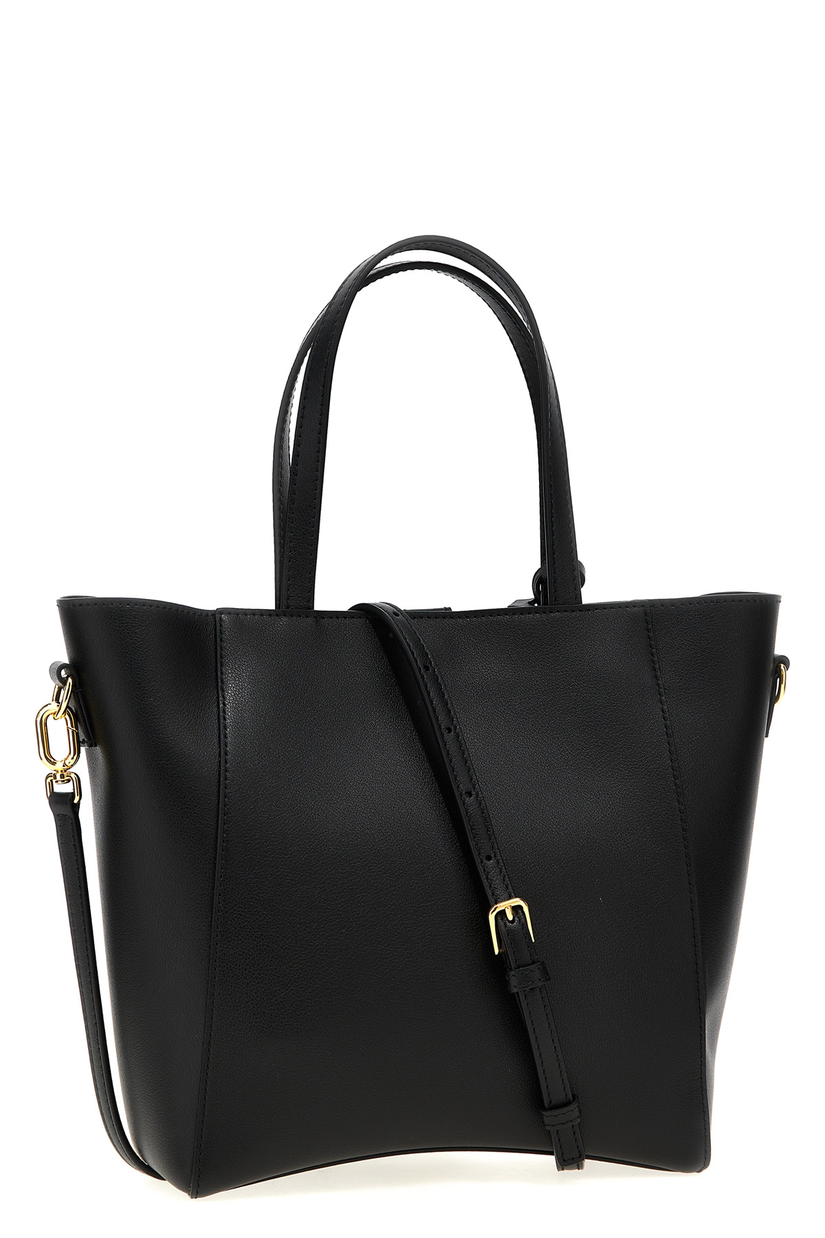 Small 'Tote Hourglass Soft' smooth calf leather handbag with metal details, double fixed handle, front logo, removable keyring, snap button closure, adjustable and removable shoulder strap.