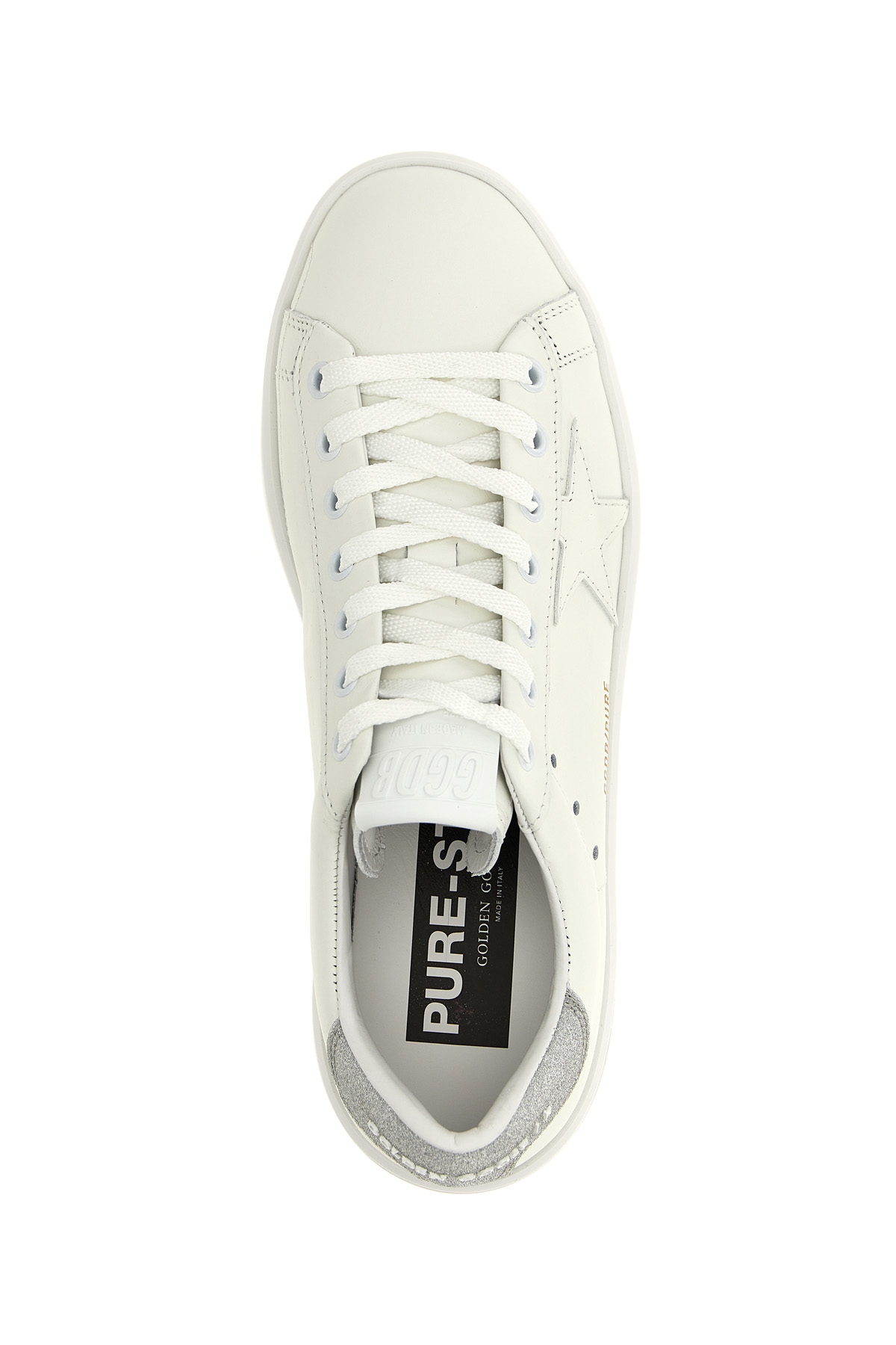 'Pure Star' leather sneakers with contrasting glitter heel tab, laces and a rubber sole.