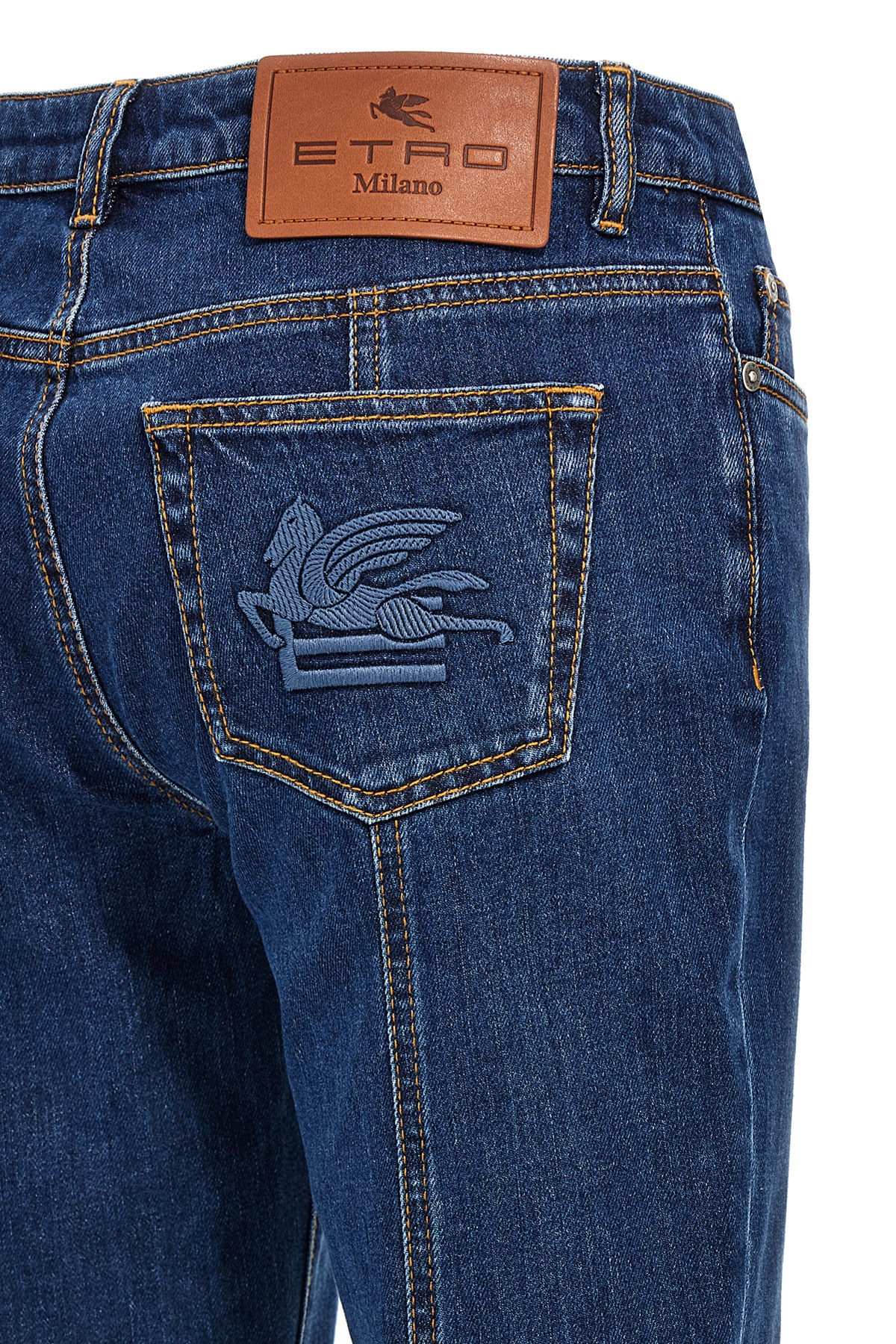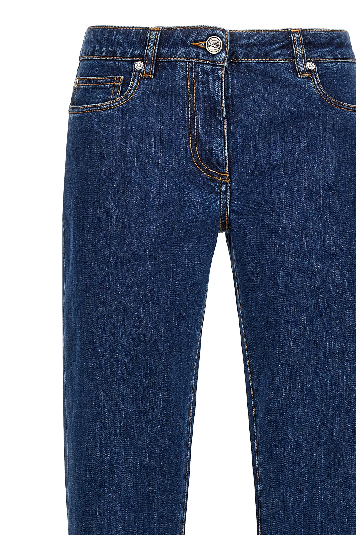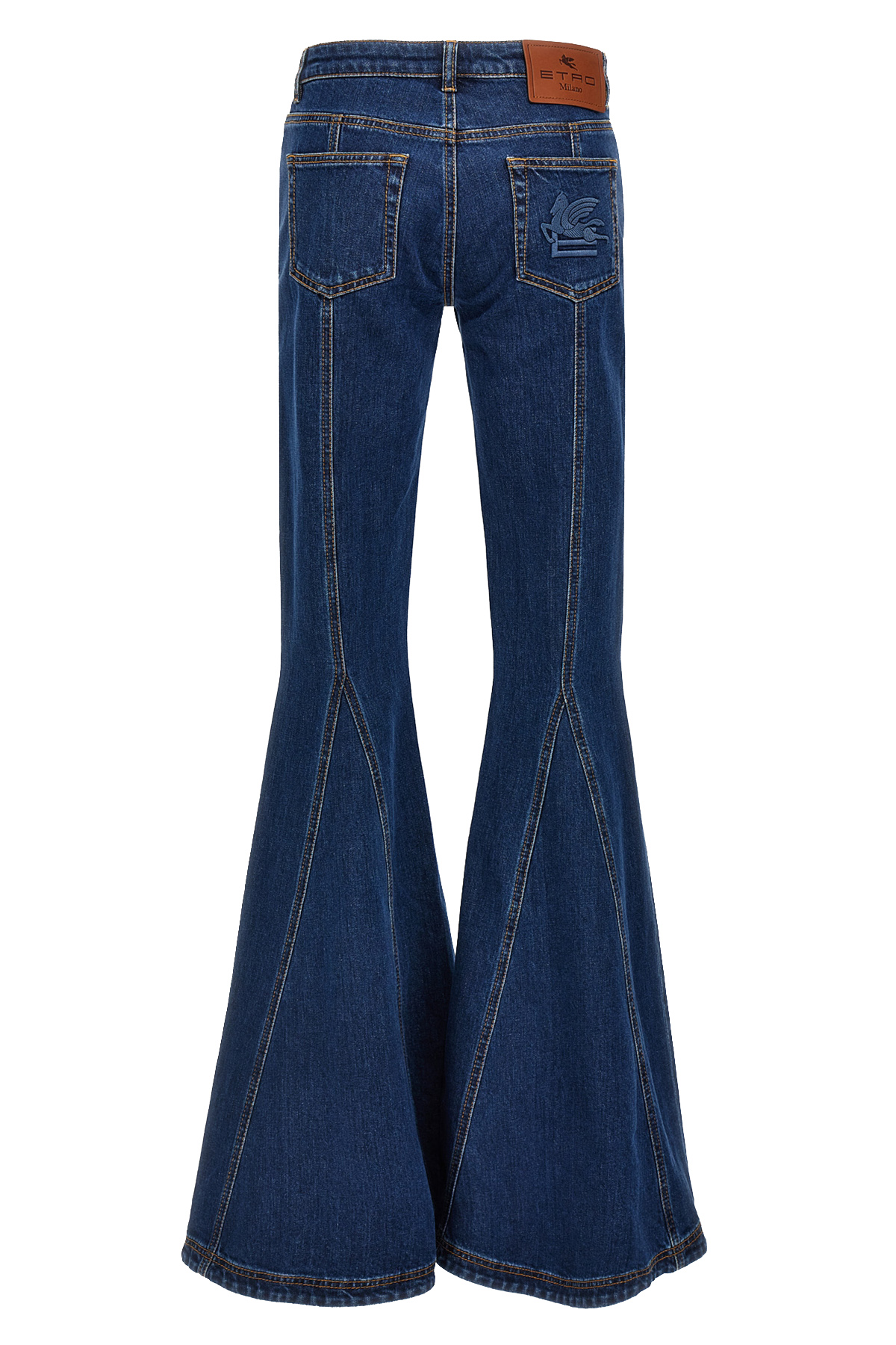 Slightly stretch cotton denim jeans with regular waist and flared wide leg, logo embroidery and back logo tag, five pockets, zip and front button closure.